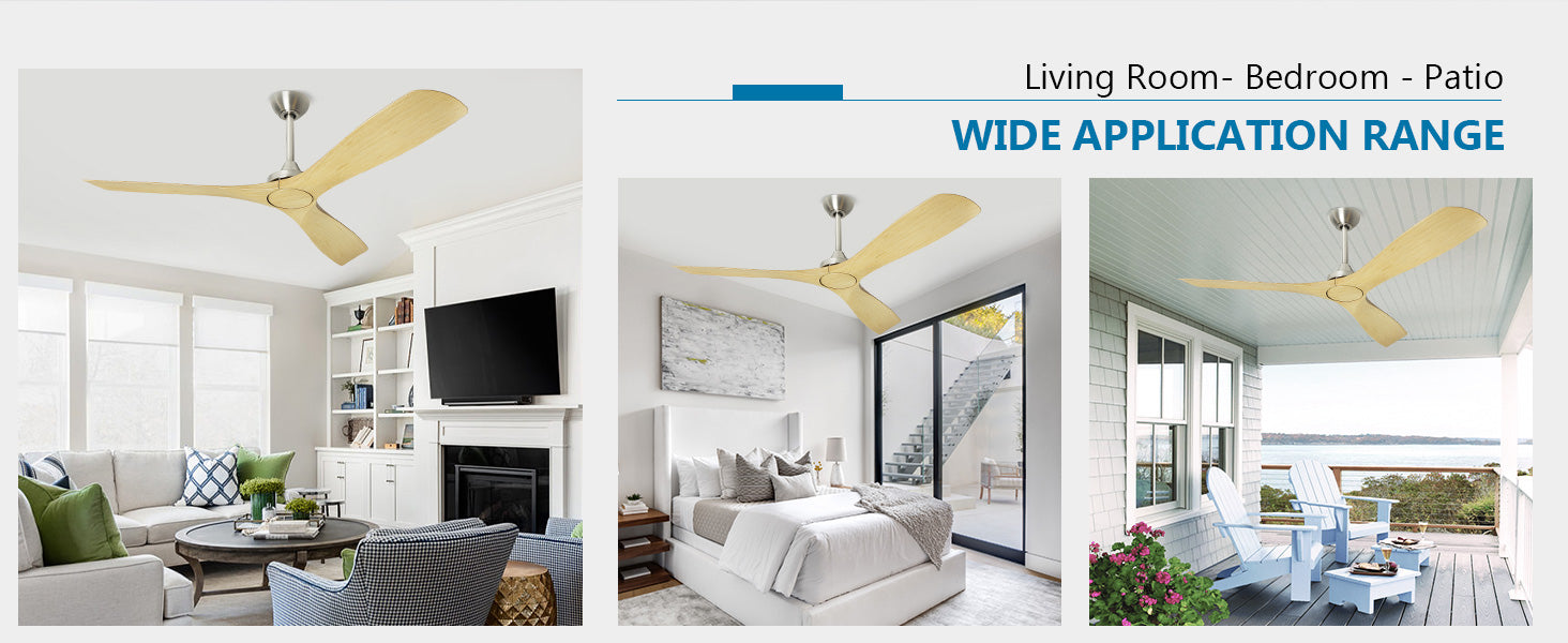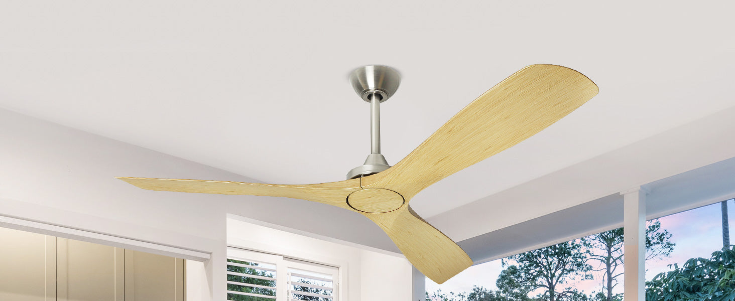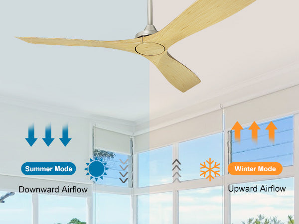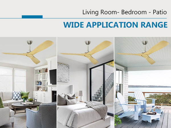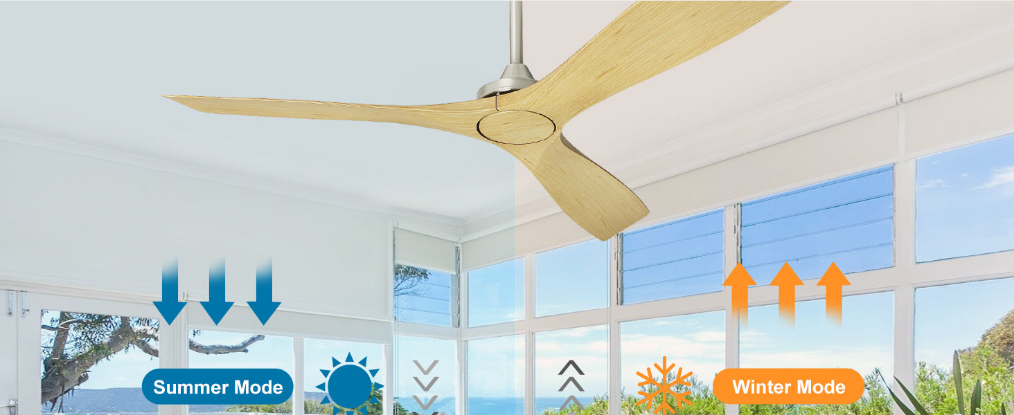 - 【Reversible and Quiet DC Motor】Controlling the wood ceiling fan is made effortless with the remote, and installation is a breeze. The low profile ceiling fan, sans light, is fitted with a reversible pure copper motor. It has two rotation modes, forward and reverse, as well as a 3-speed adjustable wind speed, making it practical for year-round use. Additionally, the fan operates at a volume of less than 35dB.