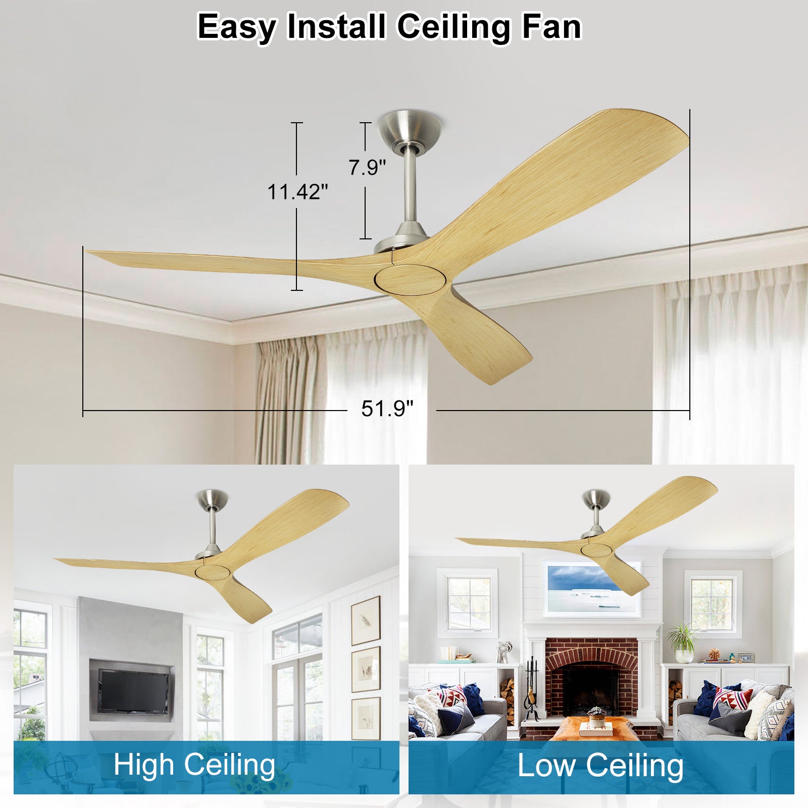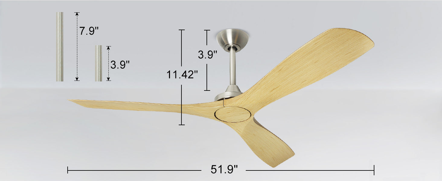 - 【Easy Installation & Clean】The fan has a diameter of 60 inches and comes with two down-rods, one measuring 3.9 inches and the other 7.9 inches, which are suitable for low and ceiling height. The hanging system ensures that the fan is well-balanced.