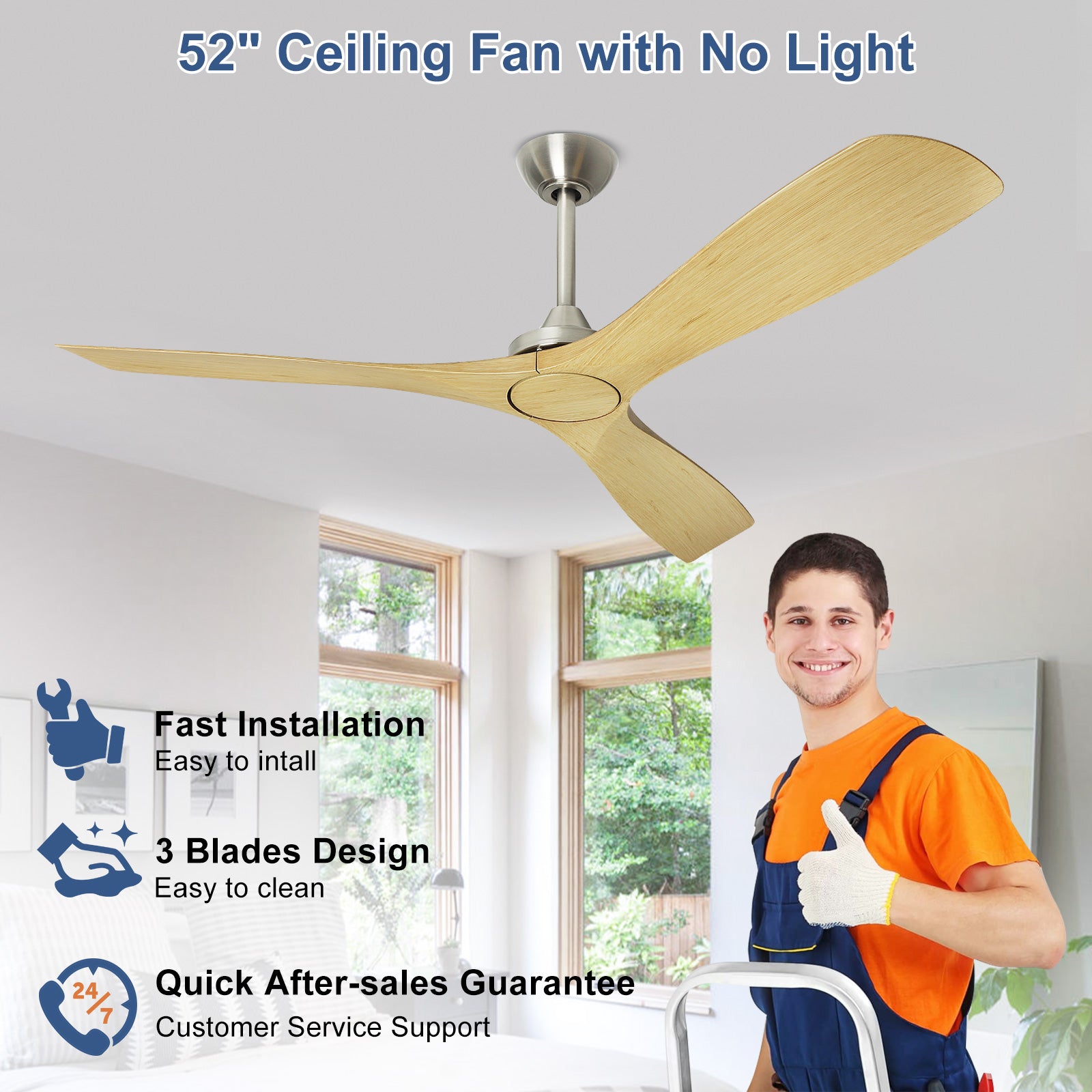 - 【Upgrade Your Space】Add rustic charm to your indoor rooms or outdoor covered patios with Depuley's 60" ceiling fan without light.