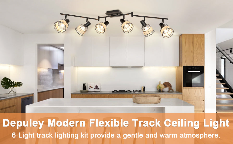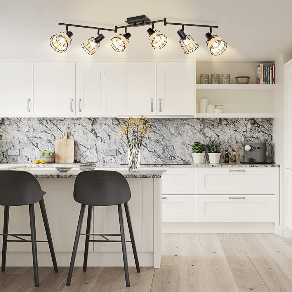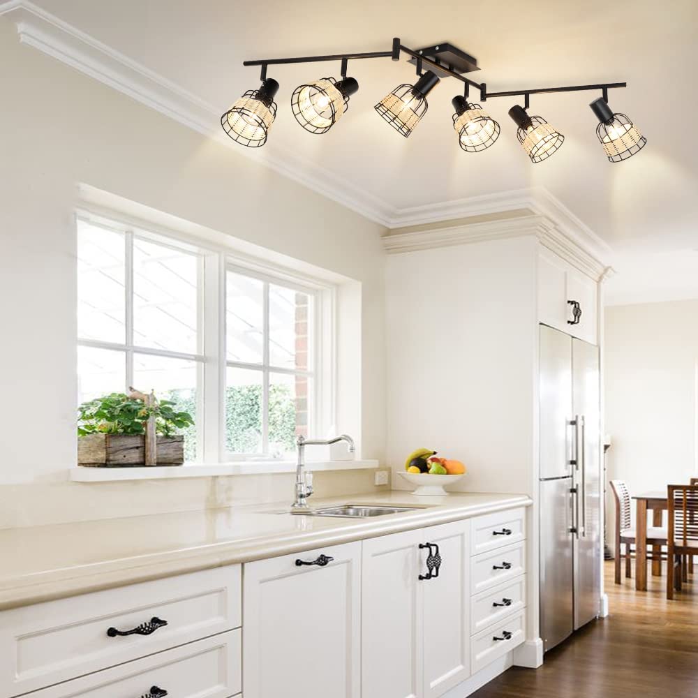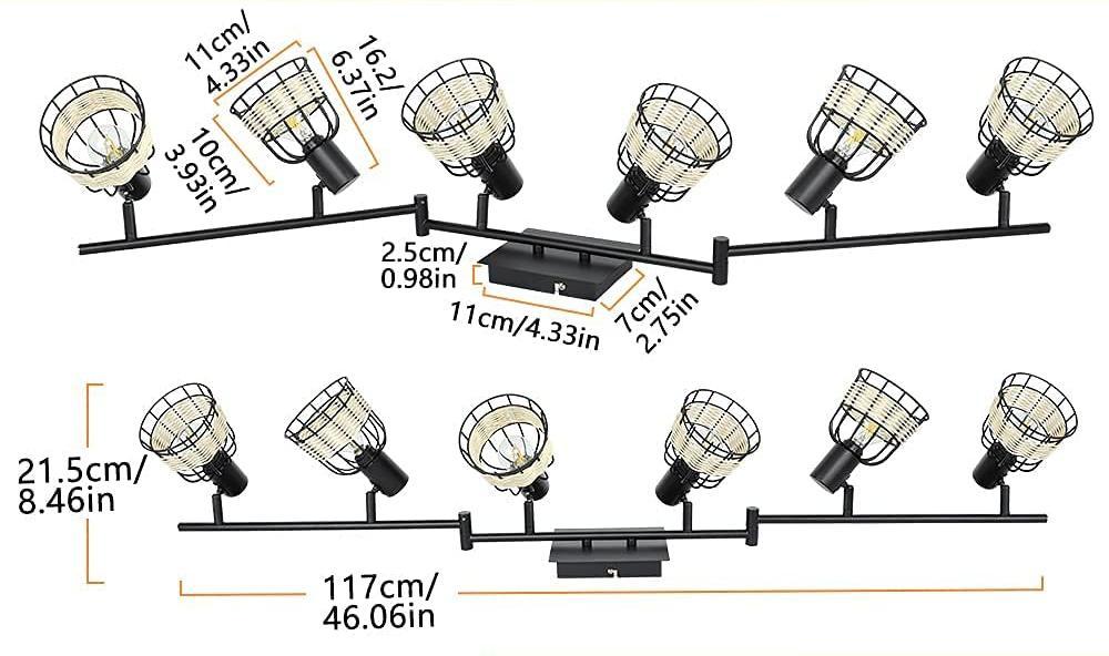 With the black color, unique cage design, and 6 handmade rattan lampshades, this track lighting fixture's ceiling ensures its exquisite appearance further. It suits industrial, farmhouse, rustic, and contemporary decoration, which is the perfect gift for your family and friends.