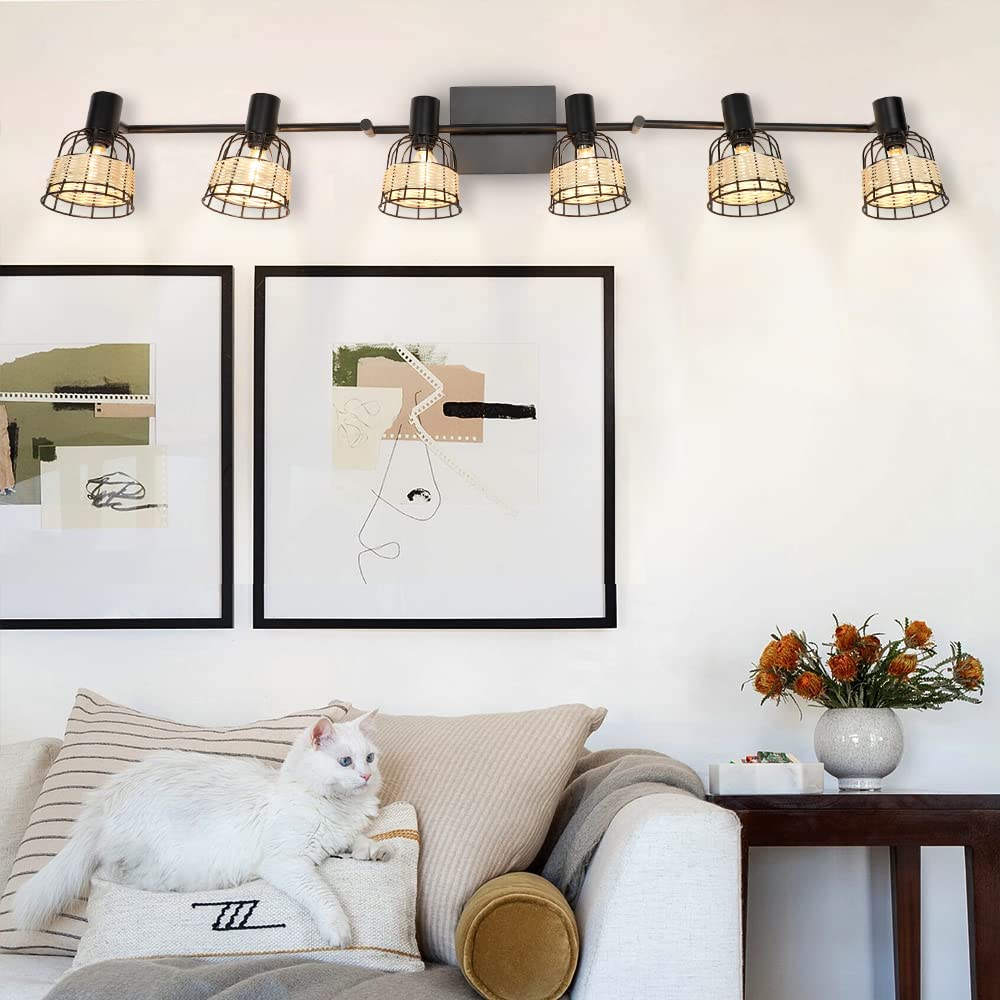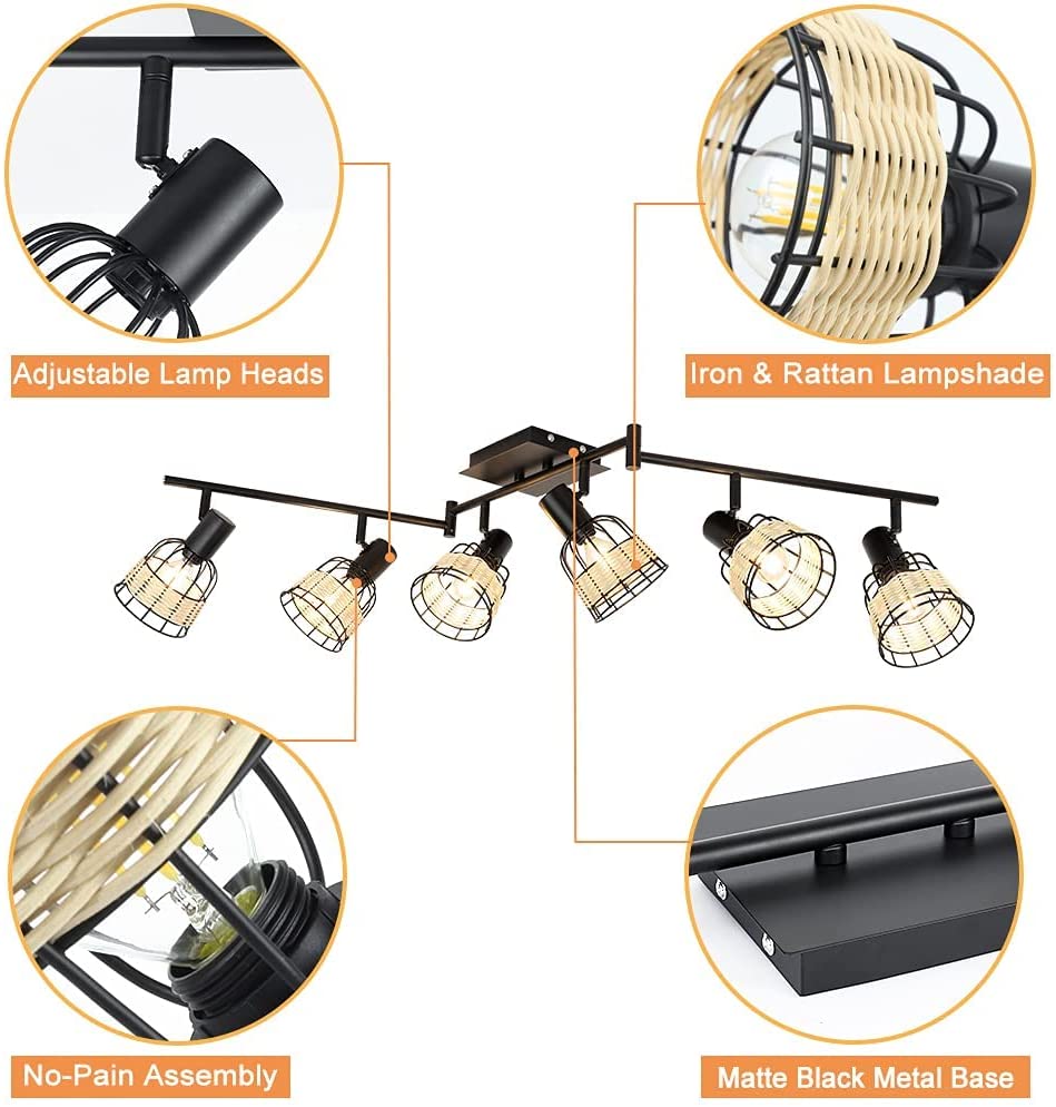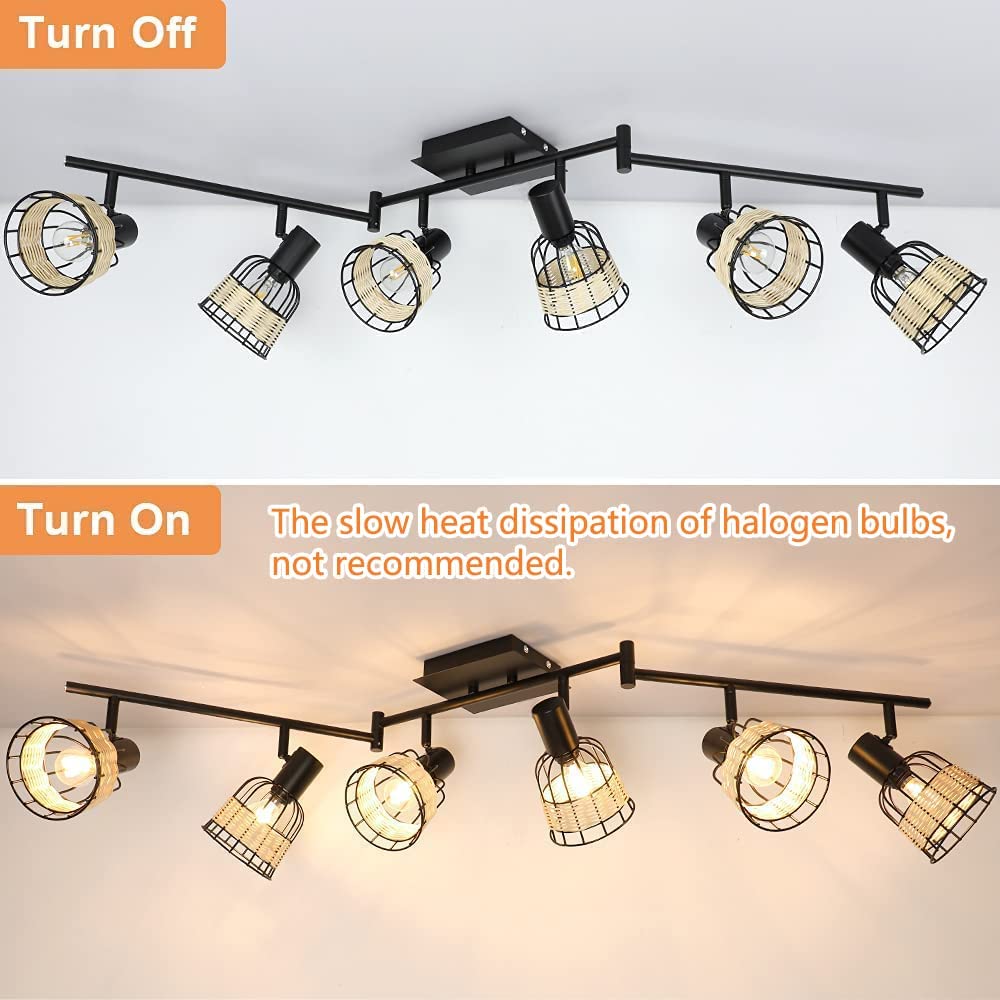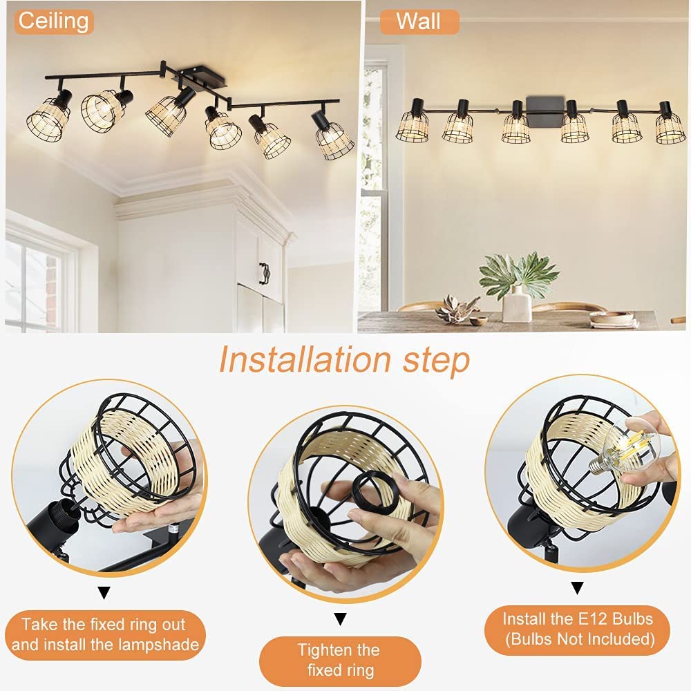 - 2. 【Unique Rattan】 The 6-light track lighting fixtures with metal & rattan cages are perfect for creating a romantic atmosphere, allowing you to enjoy a happy time with your family or friends. The wall spotlight combined with modern and pastoral style adds a touch of softness to your home.