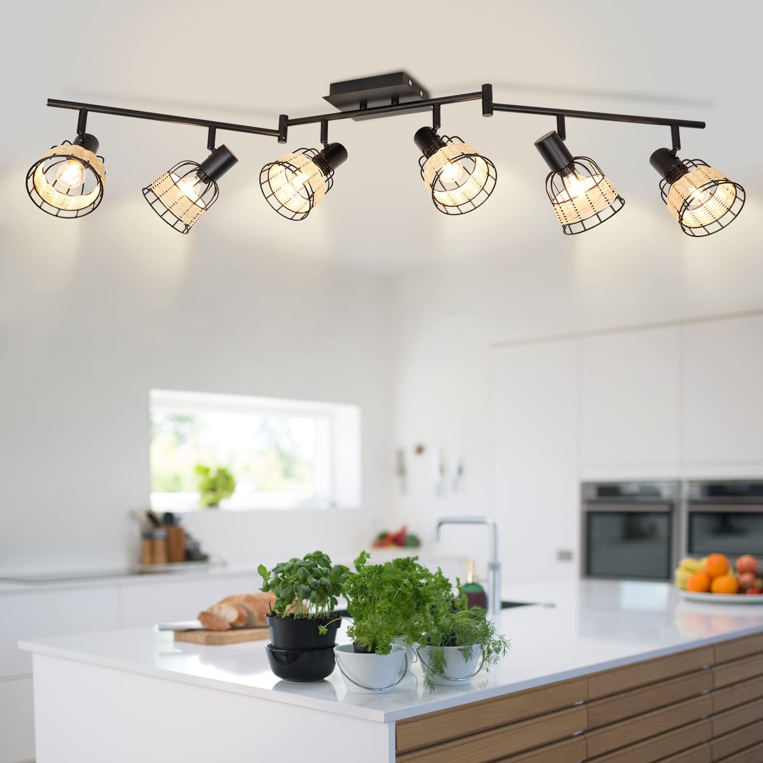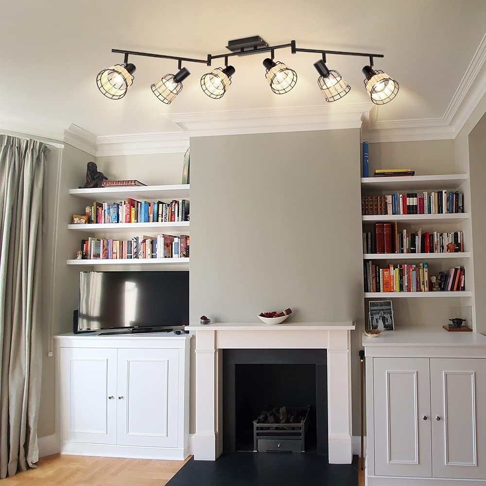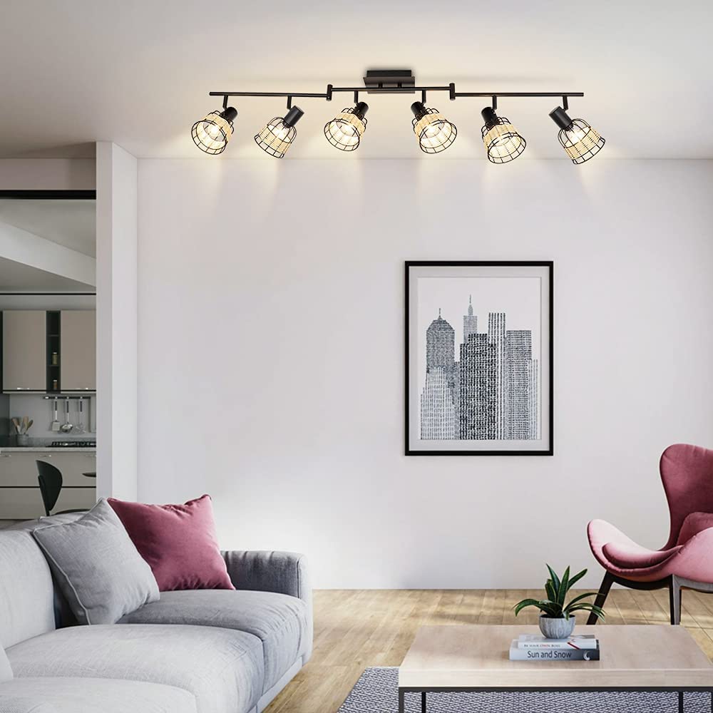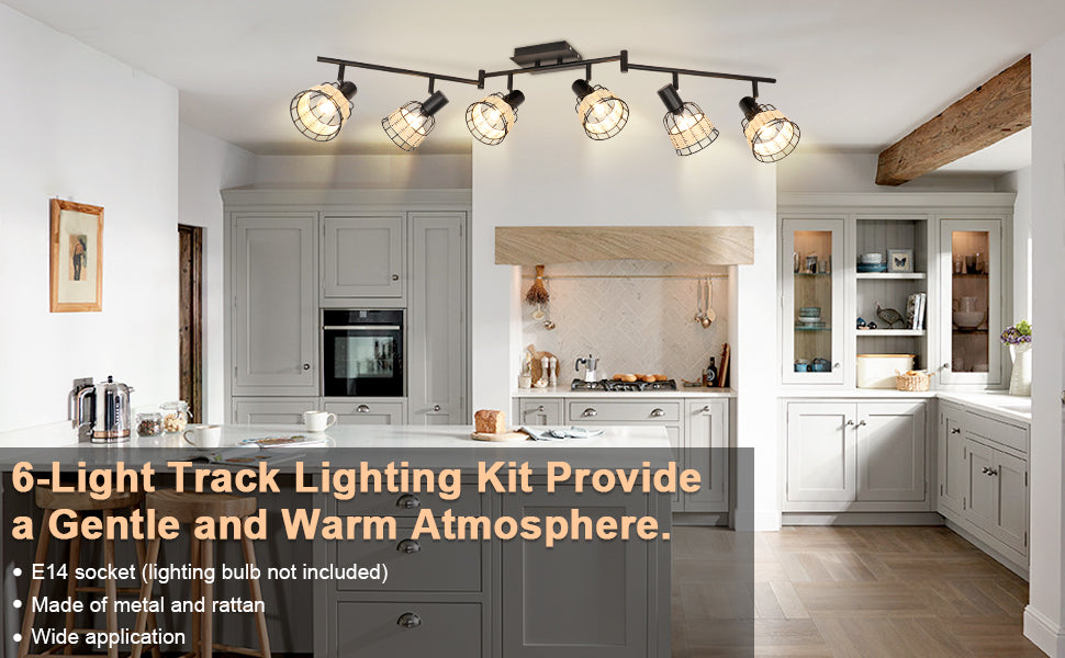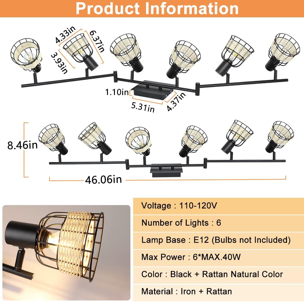 - 2. 【Unique Rattan】 The 6-light track lighting fixtures with metal & rattan cages are perfect for creating a romantic atmosphere, allowing you to enjoy a happy time with your family or friends. The wall spotlight combined with modern and pastoral style adds a touch of softness to your home.
