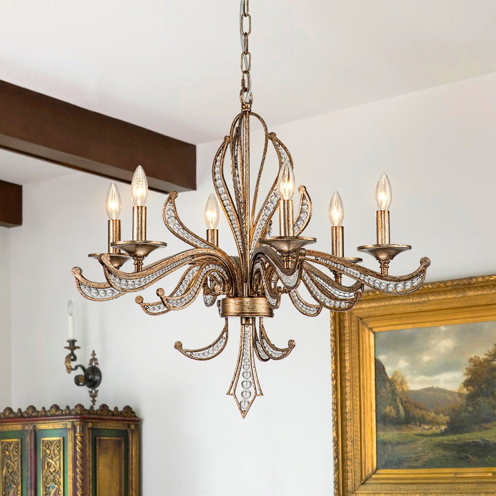6 Light Vintage kynttilätyylinen kattokruunu kristallihelmiä