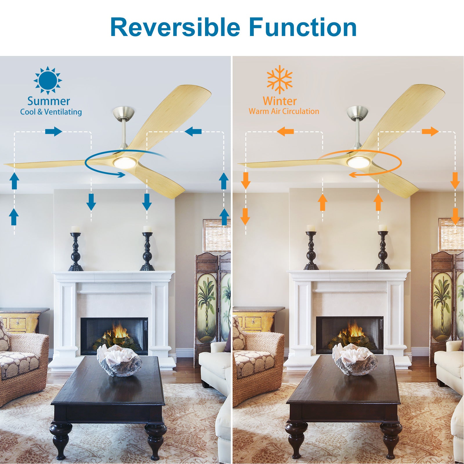 - 【Energian säästö】Kääntyvän ohjaustoiminnon avulla voit vaihtaa nykyaikaisen kattotuulettimen suunnan alaspäin suuntautuvasta ilmavirrasta kesällä ylöspäin kylmemmän talvikauden aikana, jolloin katosta katoava lämpö saadaan talteen ja energiakustannukset pienenevät.