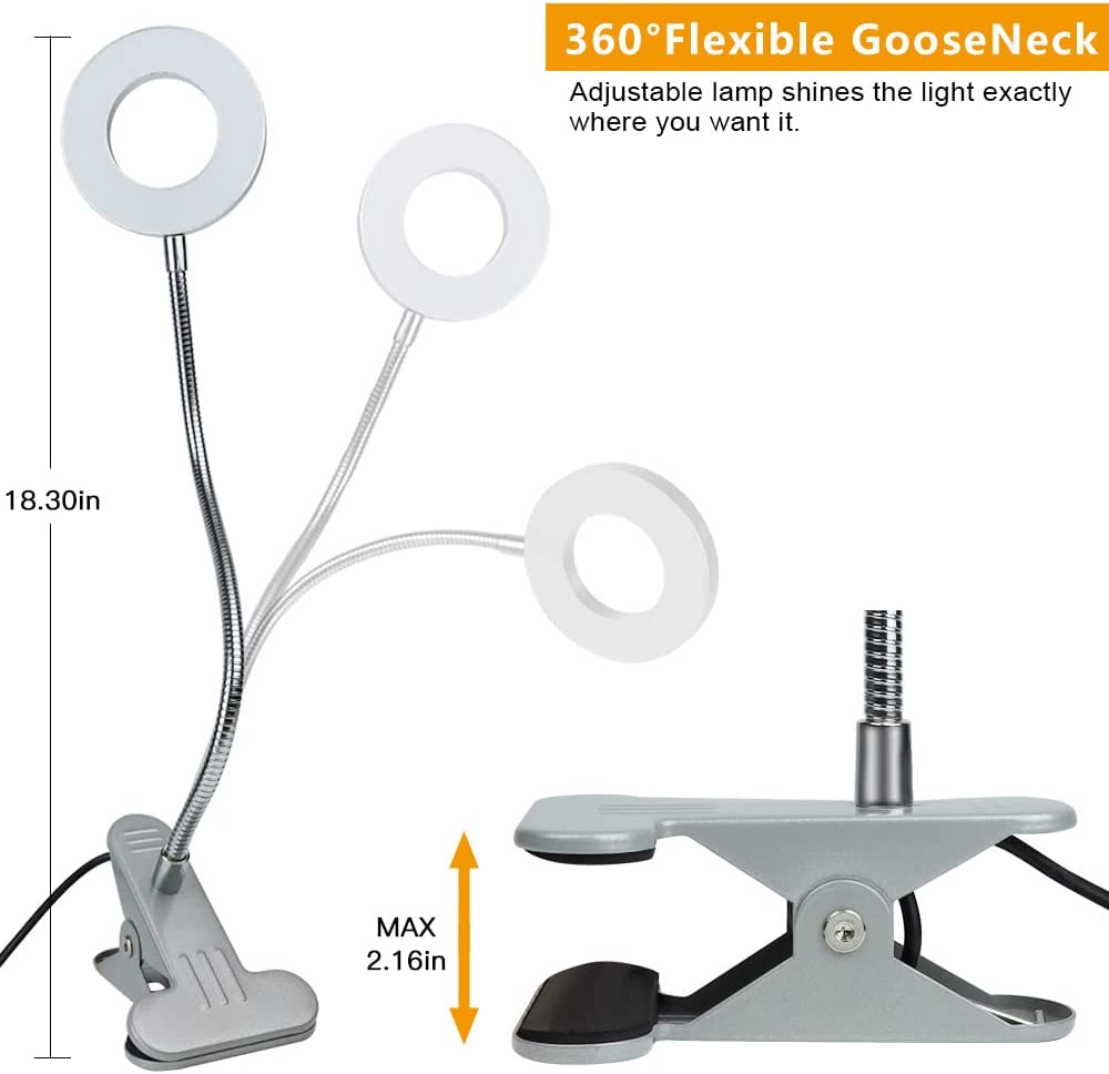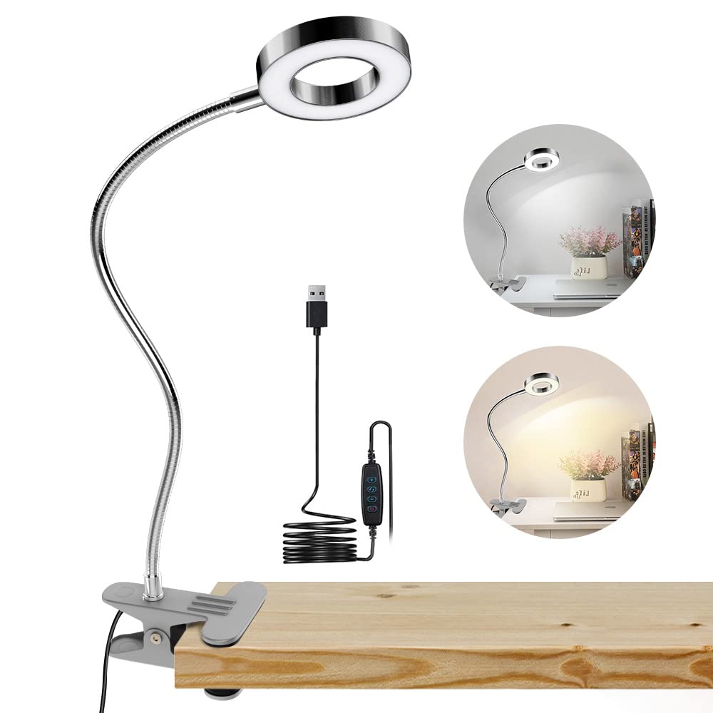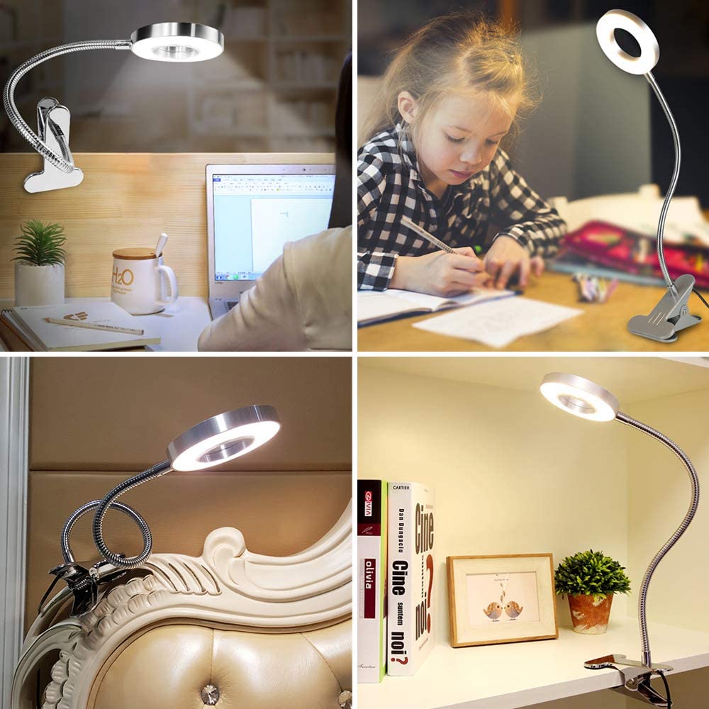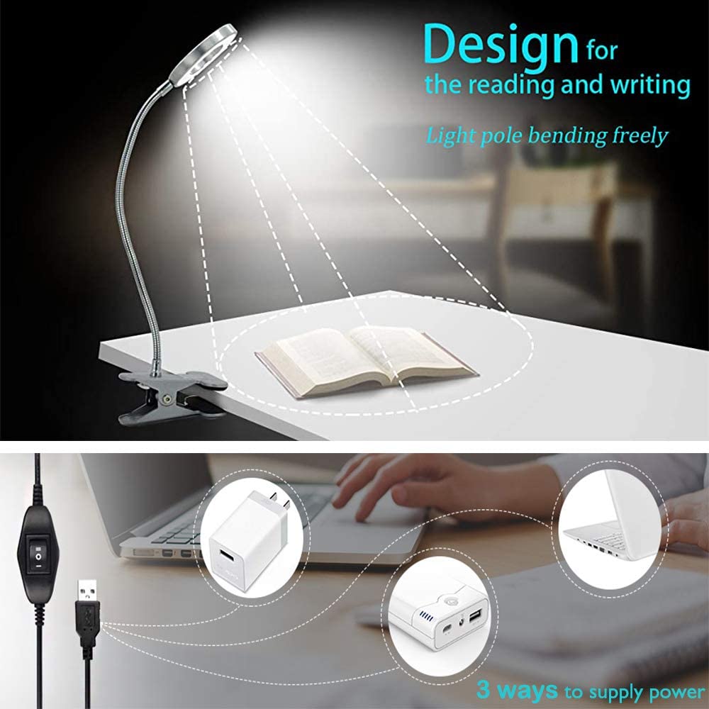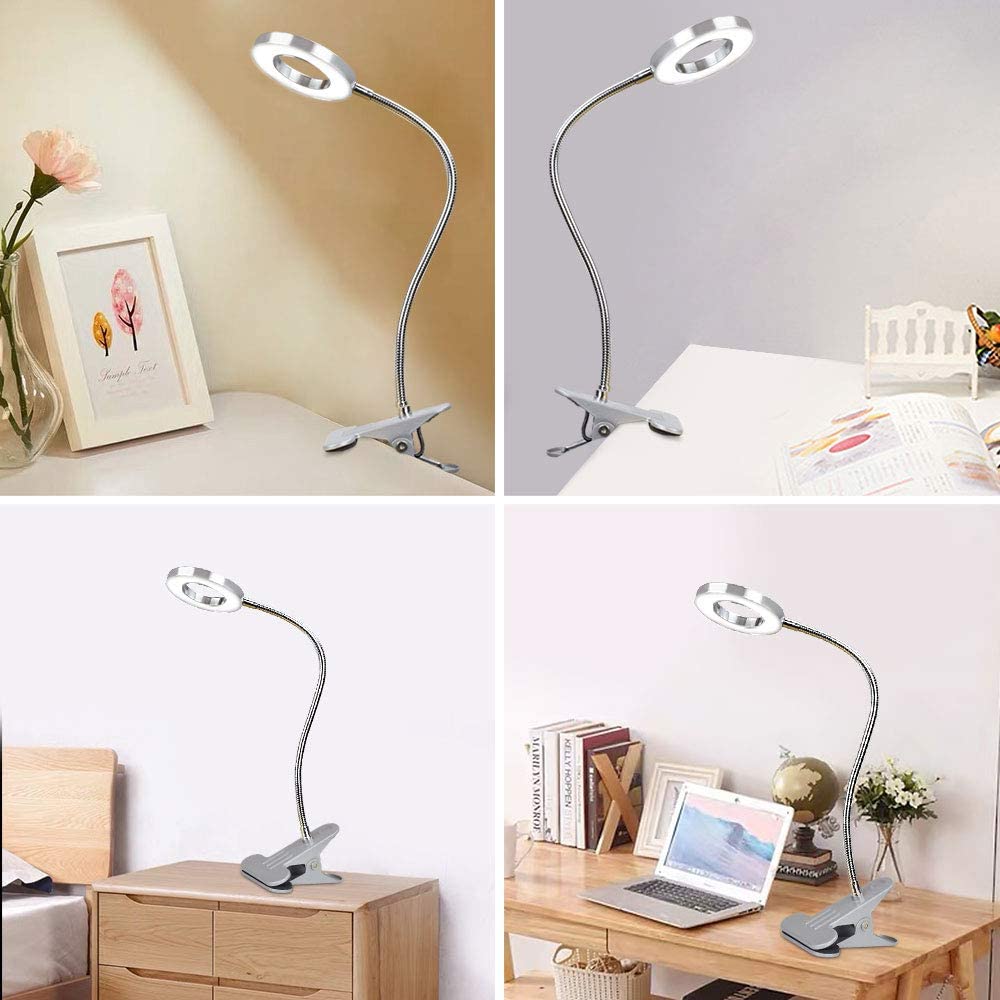 Depuley W-LITE 6W LED USB Clip -lukuvalo makuuhuoneeseen, hopea/musta pöytälamppu kiinnikkeellä, kirjavalo lapsille, jotka lukevat sängyssä, lämmin ja viileä valo silmien suojaukseen