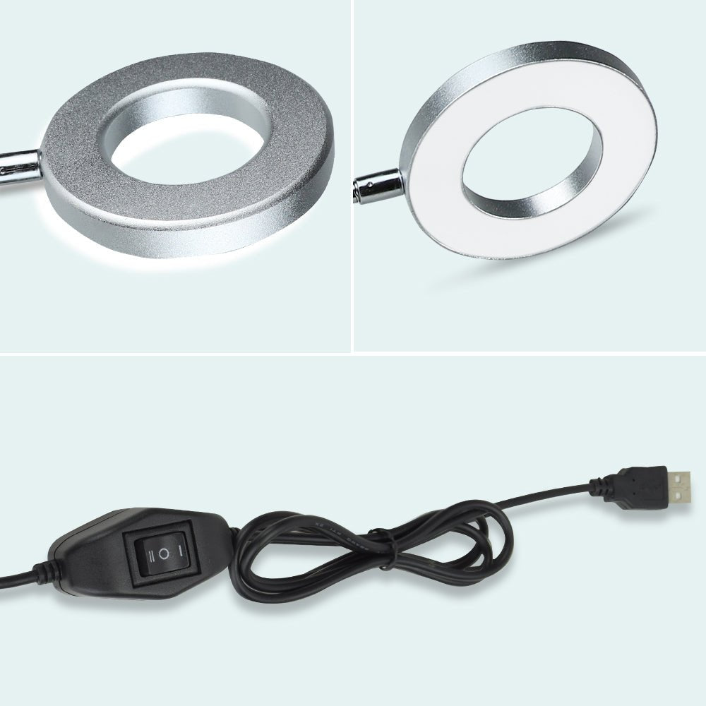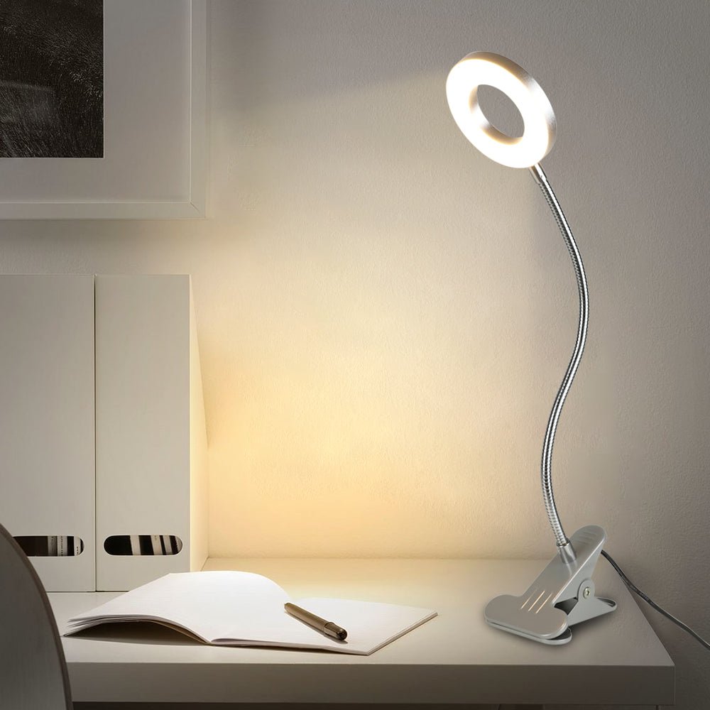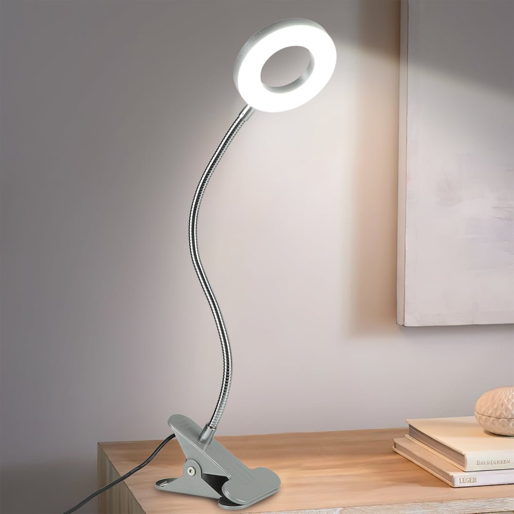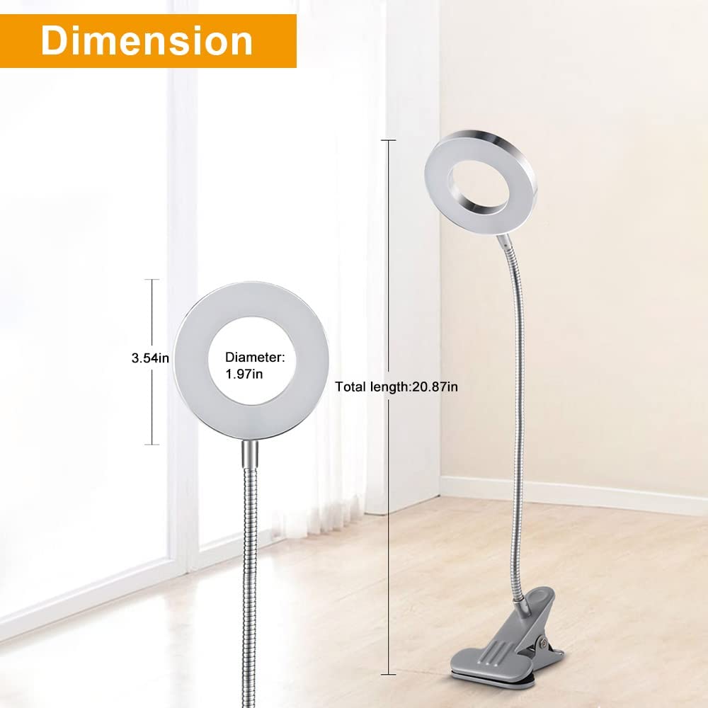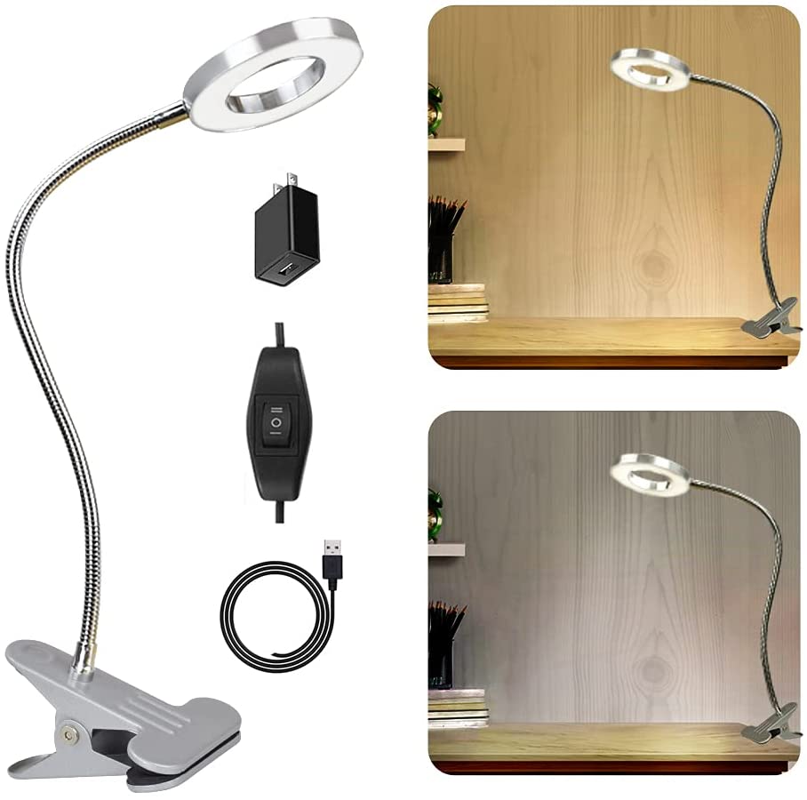Depuley W-LITE 6W LED USB Clip -lukuvalo makuuhuoneeseen, hopea/musta pöytälamppu kiinnikkeellä, kirjavalo lapsille, jotka lukevat sängyssä, lämmin ja viileä valo silmien suojaukseen
