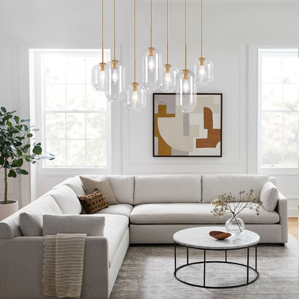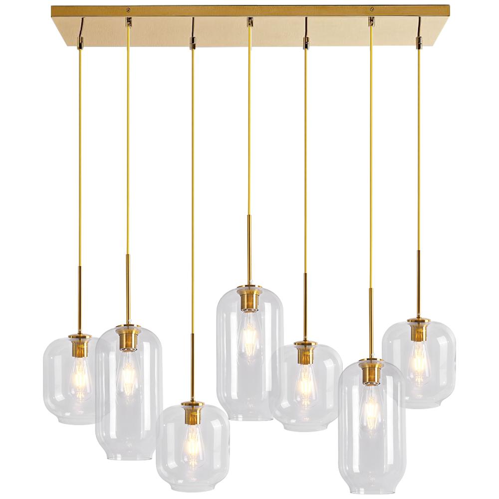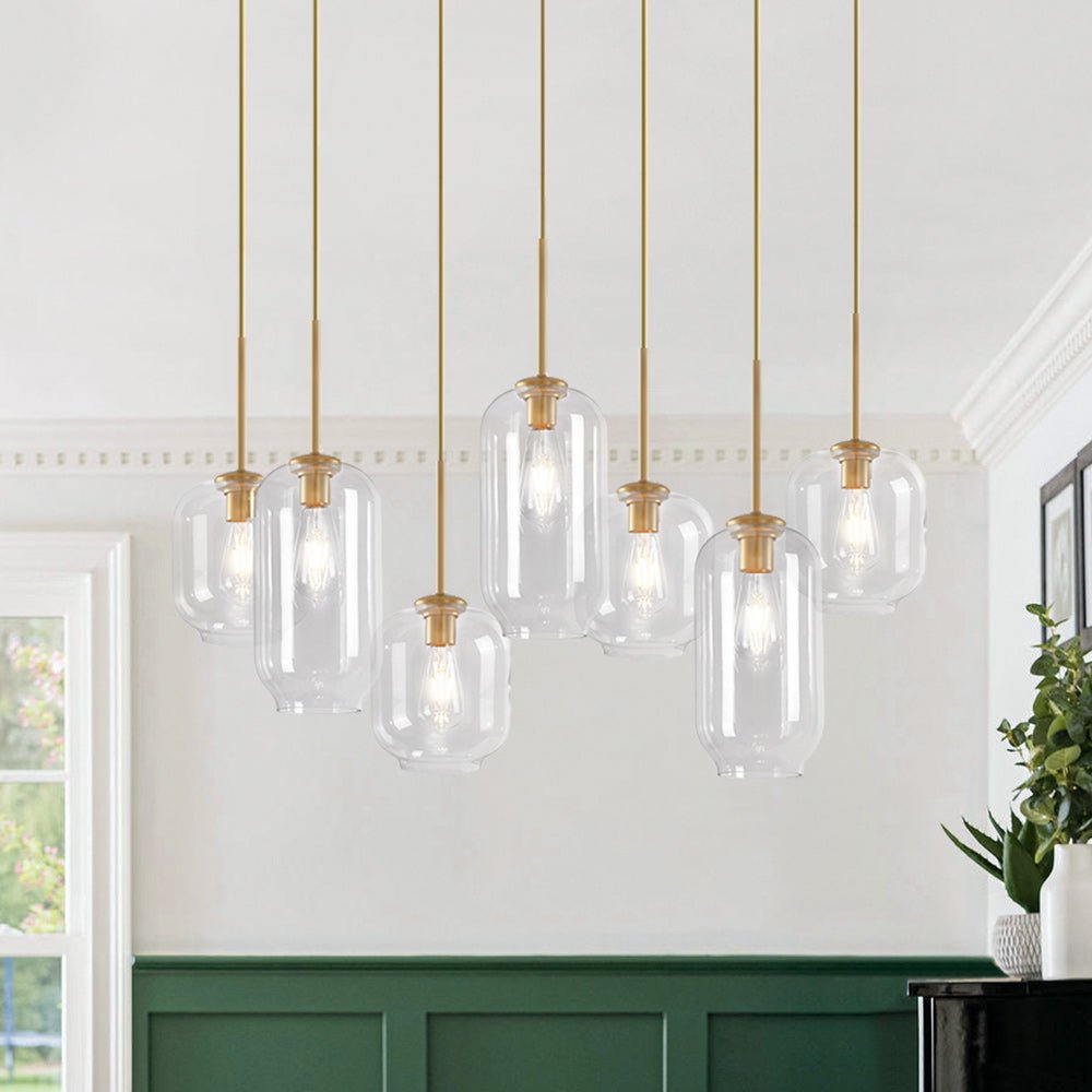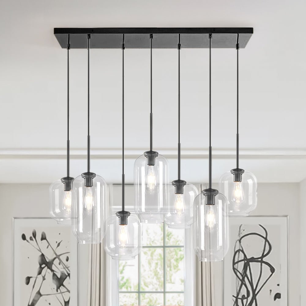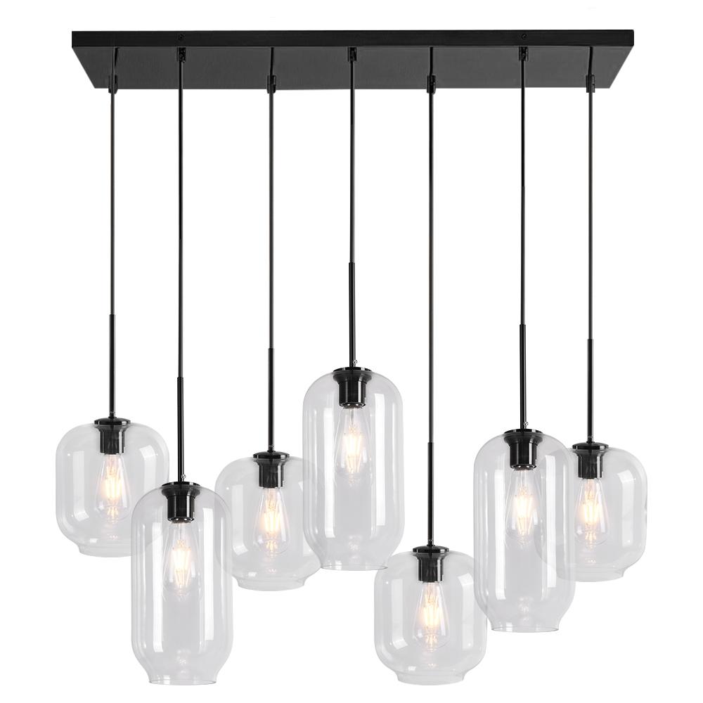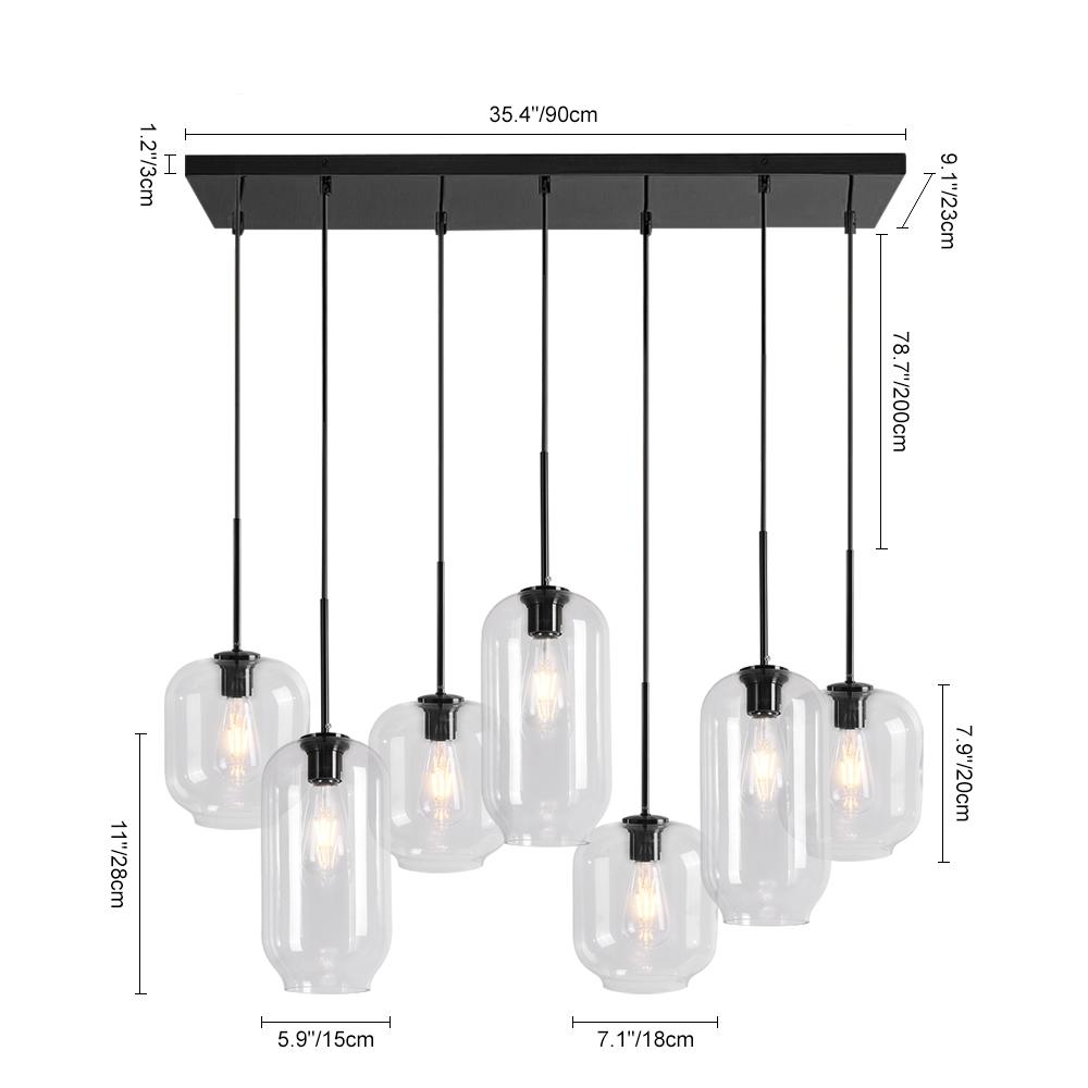 Jos haluat jotain virkistävää ruokailuryhmääsi tai olohuonettasi, harkitse 7-valaisinta keittiösaarekeriipustamme. Suorakaidekatos tukee seitsemää riippuvalaisinta, jotka voidaan säätää eri korkeuksille ja luoda dramaattisia valoja ja varjoja. Seitsemän keskipohjaista E26/E27-polttimoa (ei sisälly toimitukseen), jotka on ympäröity erikokoisissa sylinterimäisissä kirkkaissa lasivarjoissa, 7-valon kattokruunu valaisee paikat, joissa tarvitaan työvalaistusta. Tee ilme tällä toiminnallisella ja herkällä saaririippuvaisella kattokruunulla keittiösaarekkeen, pitkän ruokapöydän tai olohuoneen yläpuolella.Tiedot