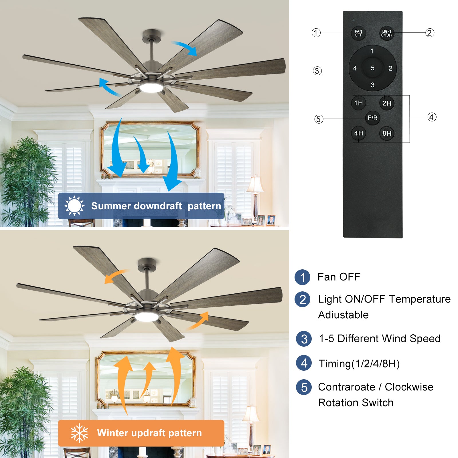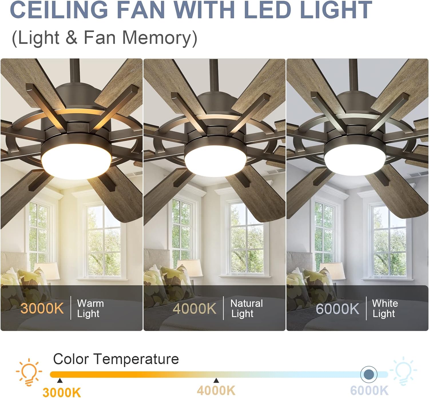 Depuley suuri kattotuuletin valoilla, 72" DC käännettävä kattotuuletin LED-valolla, 8 vaneriterää, 5 nopeutta, modernit teollisuuskattotuulettimet sisäkäyttöön olohuoneeseen, väri vaihdettava 3000K-60