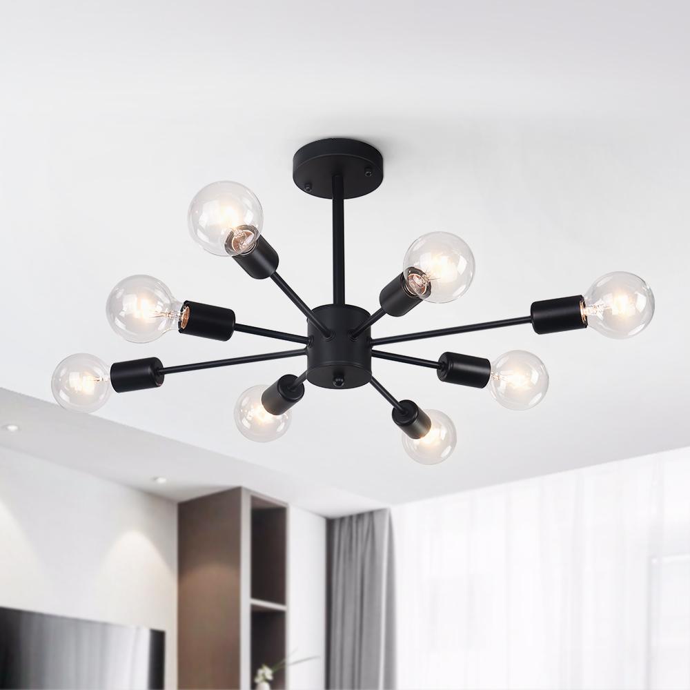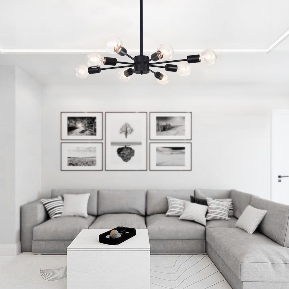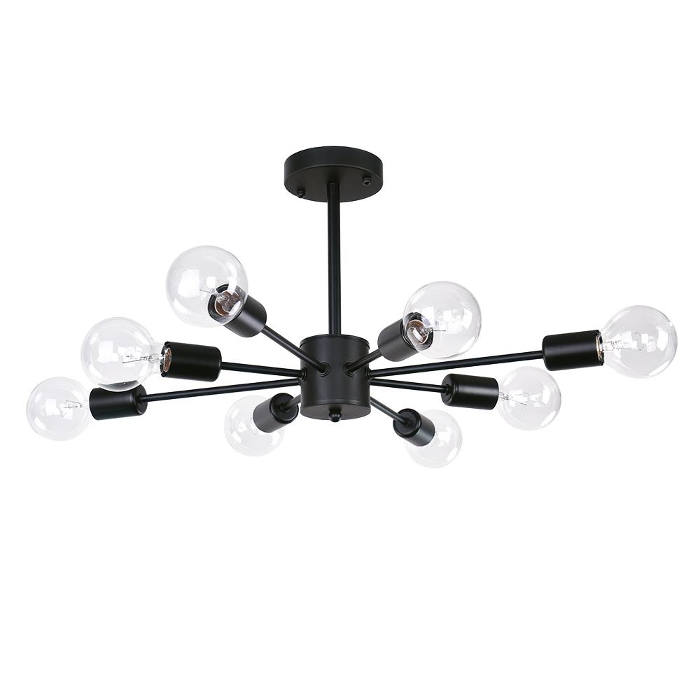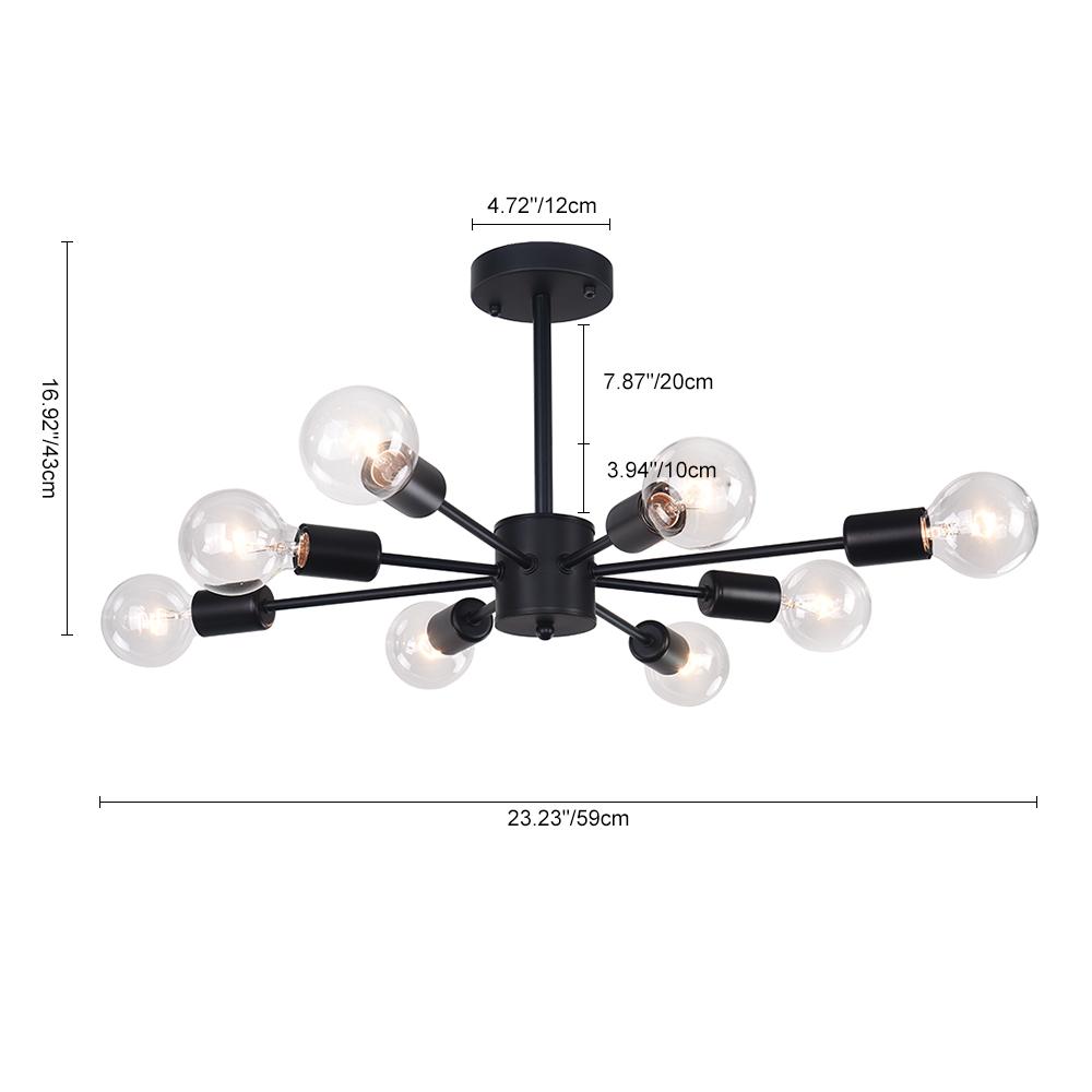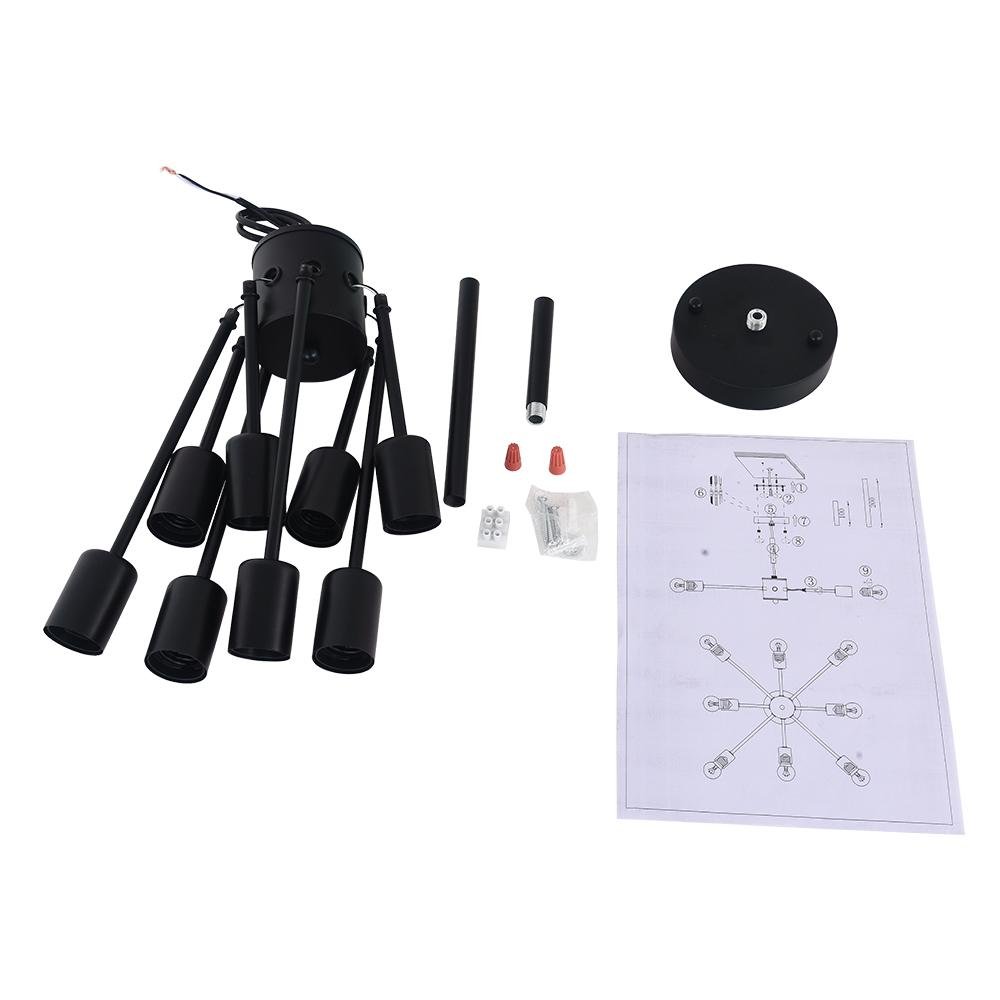 Musta viimeistely • Kahdeksan valoa • E26/E27-keskikantaiset polttimot (ei sisälly) • Säädettävä napa • Kiinteä • UL-listattu/CE-listattu