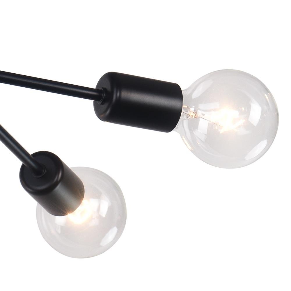 Nykyaikainen lineaarinen muotoilu kohtaa klassisen sputnik-siluetin harmonisessa tasapainossa. Puolihuuhtoinen sputnik-valaisinmme tarjoaa vuosisadan puolivälin tyylin, joka sopii mihin tahansa moderniin olohuoneeseen, ruokasaliin, eteiseen tai eteiseen. Tässä pyöreän kuomun ja alaspäin suuntautuvan pylvään varassa olevassa mustassa sputnik-valaisimessa on sylinterin keskeltä kahdeksan ohutta vartta, jotka ulottuvat vaakasuoraan joka puolelle. Jokaisen varren päässä on tilaa tavalliselle polttimolle 40 W asti. Paljastuneen lampun muotoilussa 8 valon kattokruunu tuo huoneeseesi kirkkautta. Tarvittaessa tämä musta puolihuuhtoinen sputnik-valo säätyy myös himmeään valaistukseen himmenninkytkimellä ja himmennettävillä polttimoilla (molemmat eivät sisälly toimitukseen). Säädettävän ripustustangon ansiosta voit mukauttaa tämän mustan sputnik-valaisimen huoneen suunnittelun mukaan. Täydennä kotisi tällä upealla puolihuuhteella sputnik-valolla!Detail
