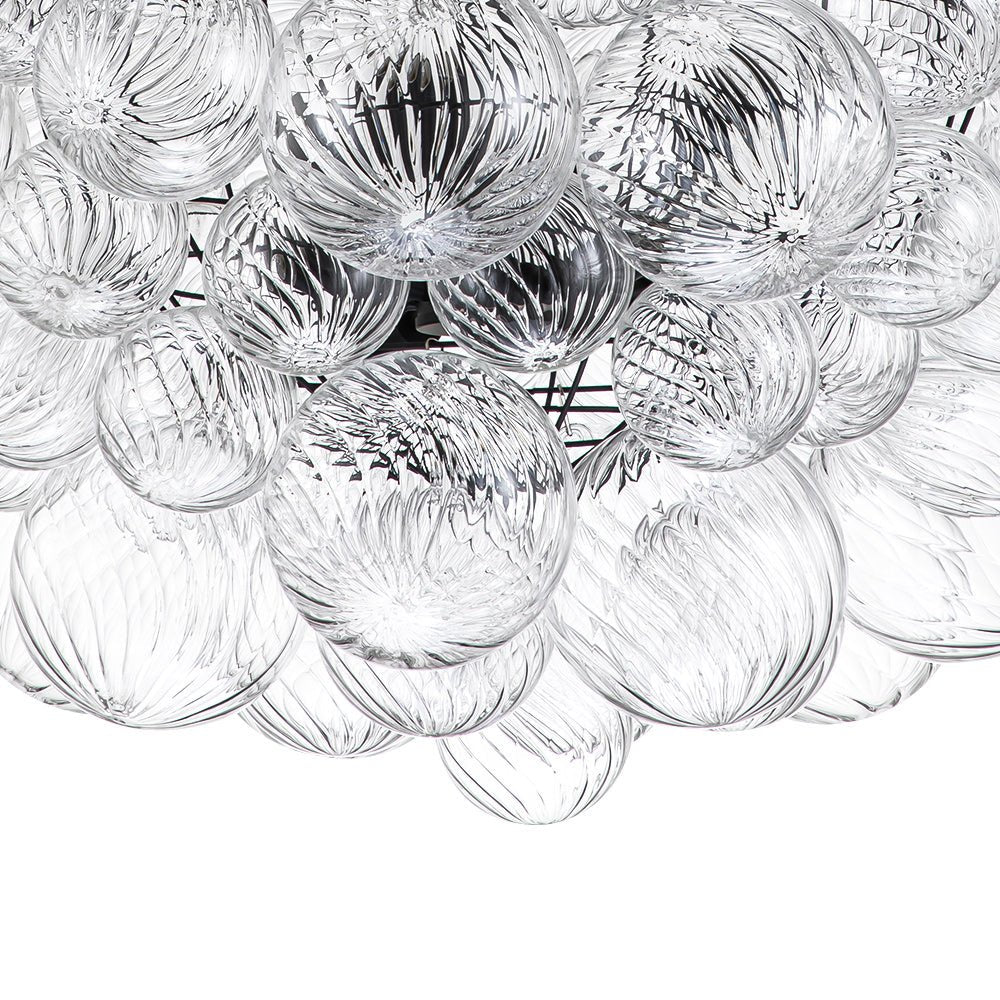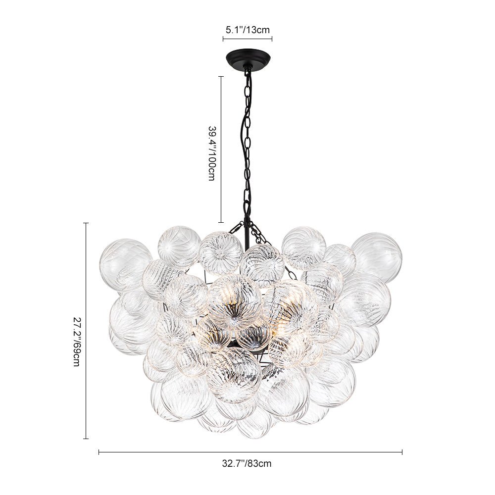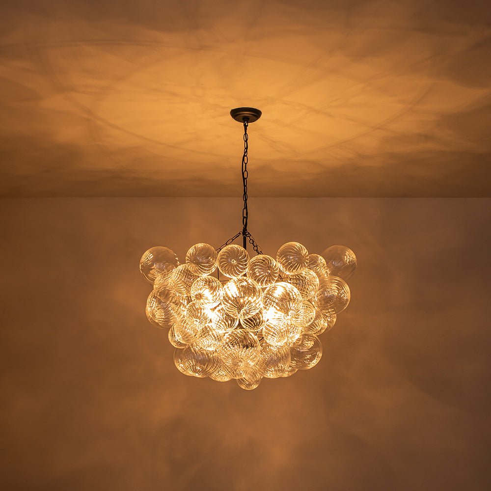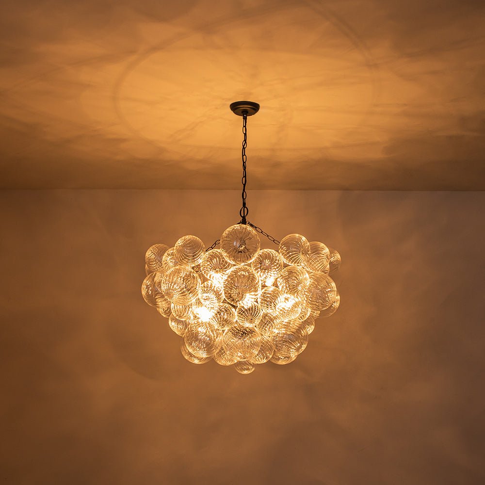 Tämä moderni kuplakruunu, joka on ryhmitelty upeisiin ryhmiin, tarjoaa hämmästyttävän romanttisen ja fantasiavisuaalin. Tässä klusteripallokruunussa on hieno taidokkaat uurretut lasipallot, jotka kerääntyvät kulhoon, joka on viimeistelty mattamustalla viimeistelyllä. Kun kytket tämän klusteripallon kuplakruunun päälle, valaistus virtaa uurretussa lasissa kuin samppanja ja levittää upean tunnelman tilaan. Tämä upea rypälelasimainen maapallokruunu on rohkea ja upea aksentti, joka korostaa minkä tahansa olohuoneen, ruokailutilan, eteisen, makuuhuoneen, kylpyhuoneen tai eteisen sisustusta.