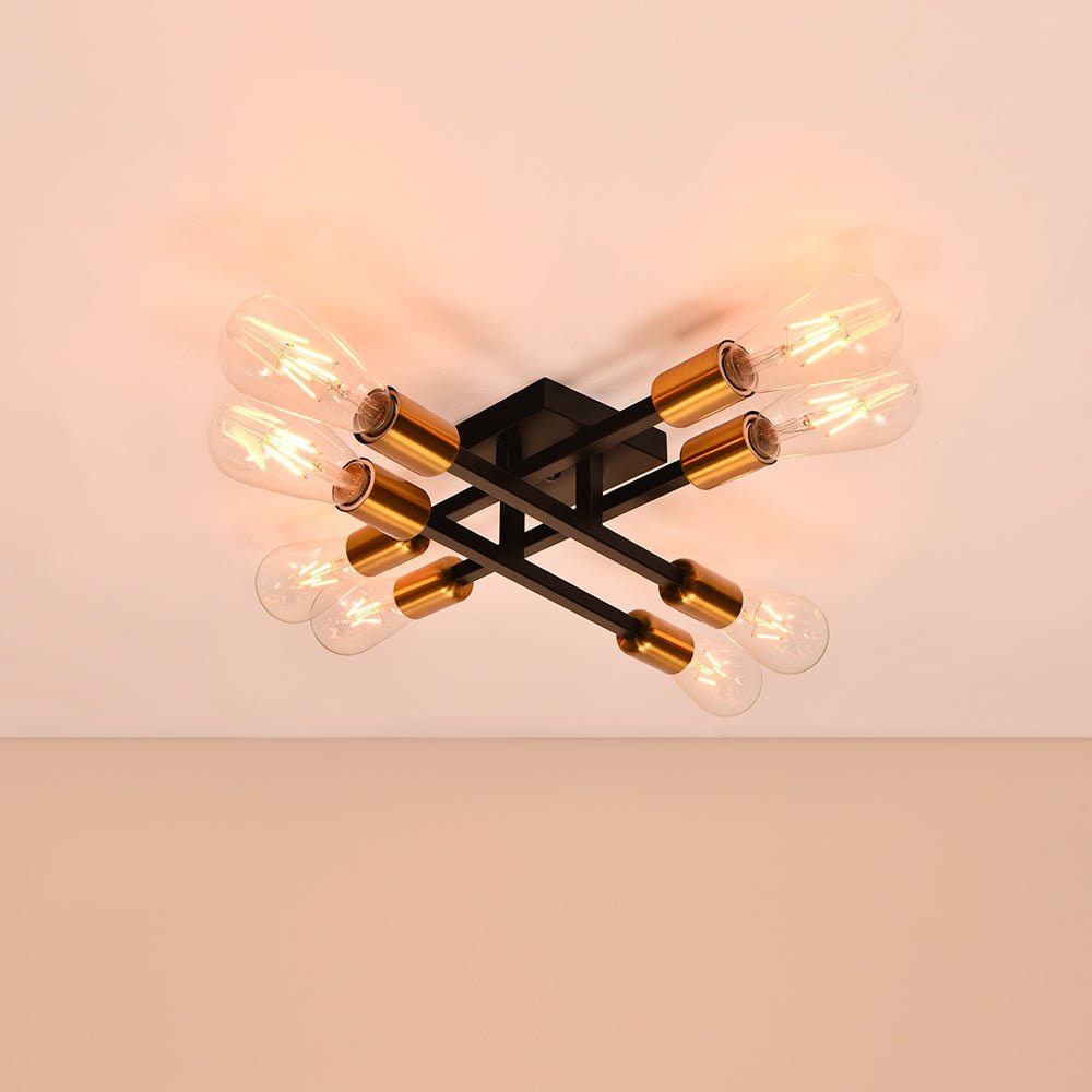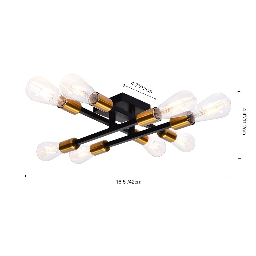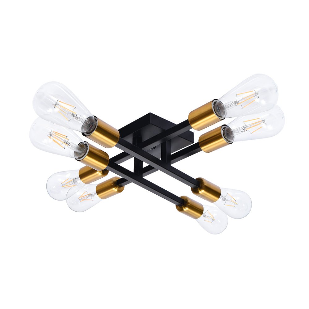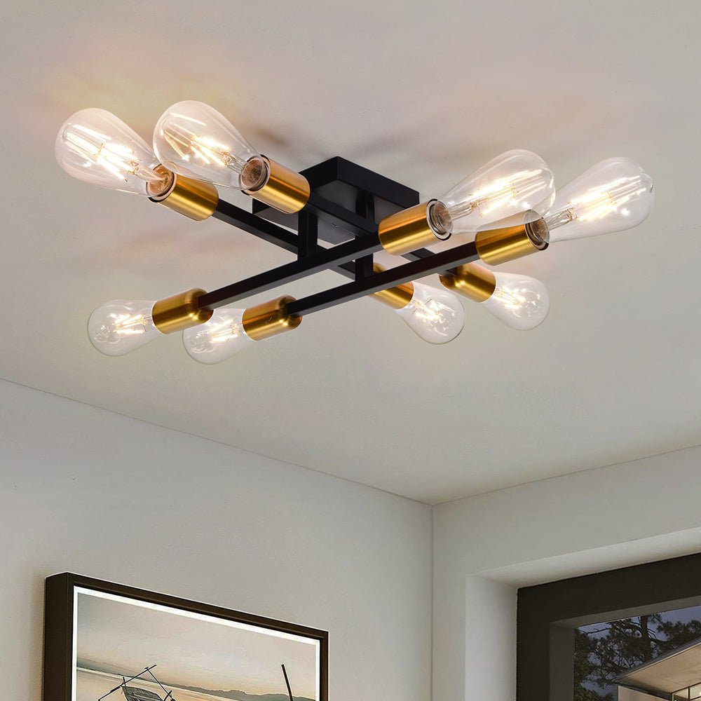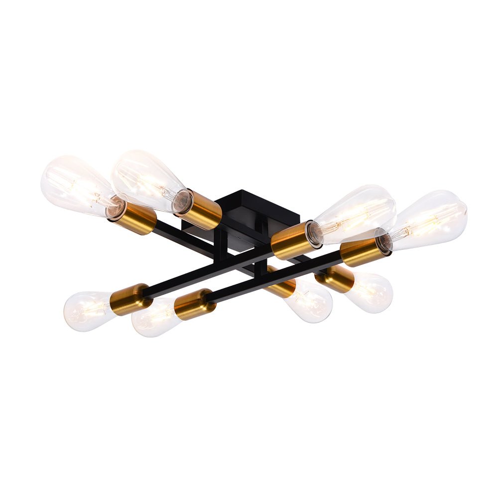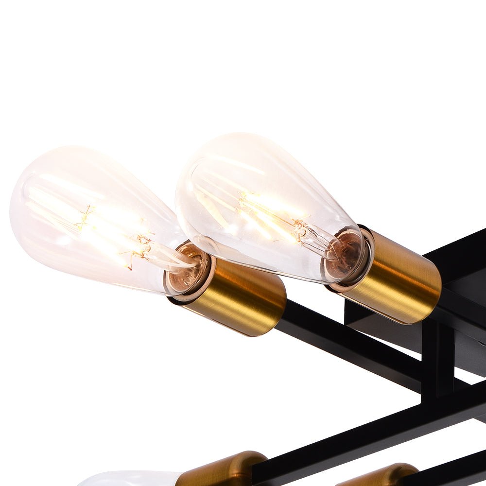 Kahdeksan valoa • Lineaarinen muotoilu • Kulta-musta viimeistely • E26-keskikantiset polttimot (ei sisälly) • Kiinteä • UL-listattu/CE-listattu