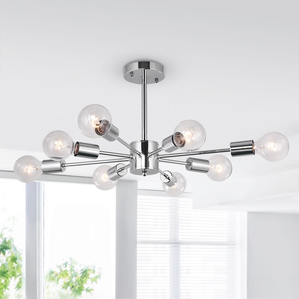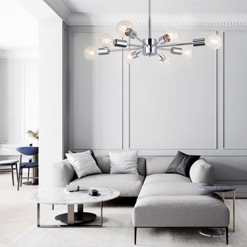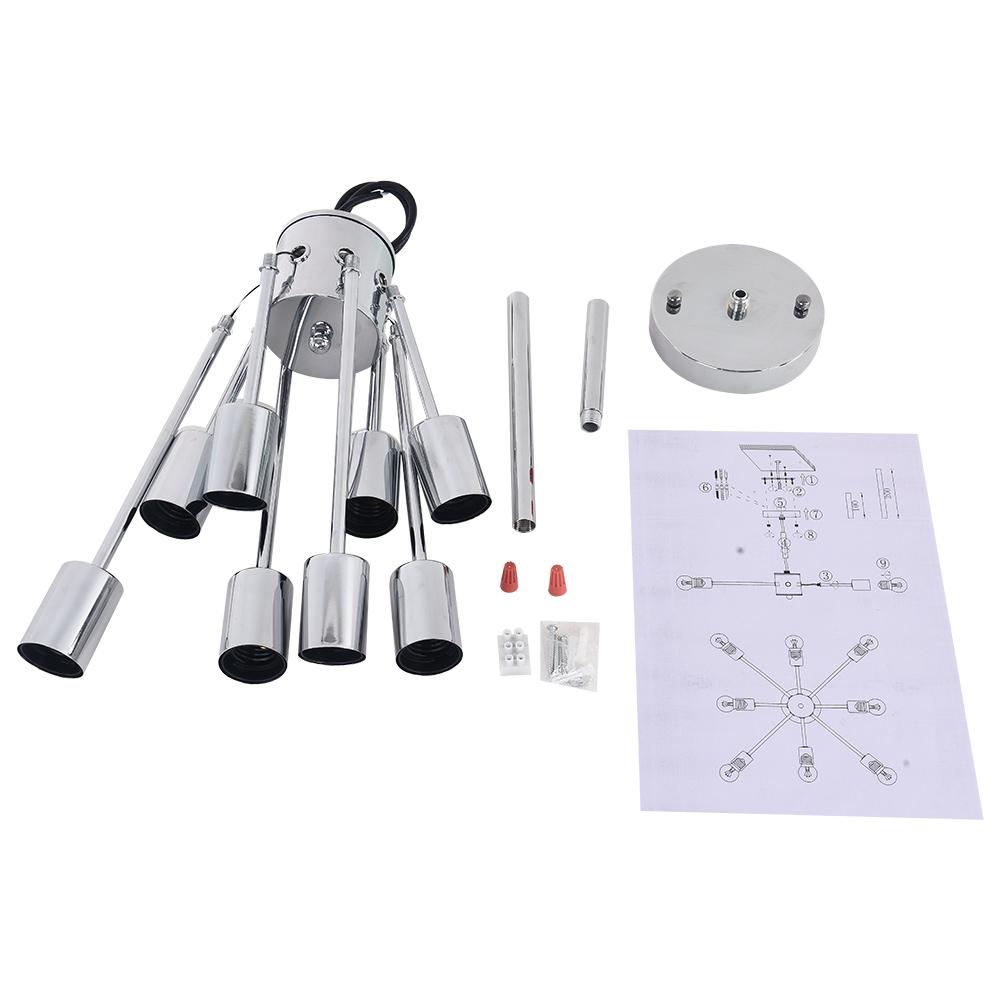 Kahdeksan valoa • Sputnik-muotoilu • Kromiviimeistely • E26/E27 Keskikantaiset polttimot (ei sisälly) • Kiinteä • UL-listattu/CE-listattu