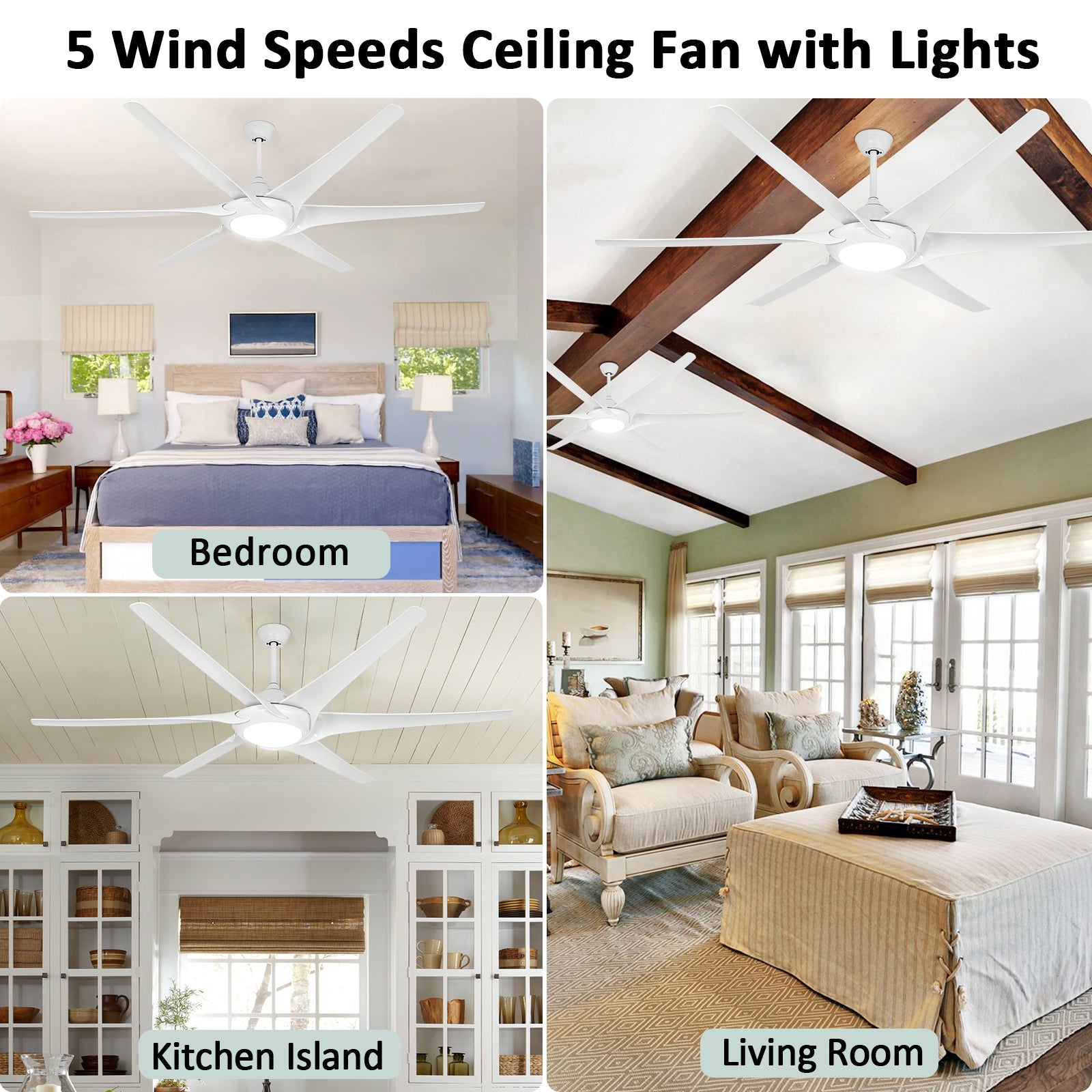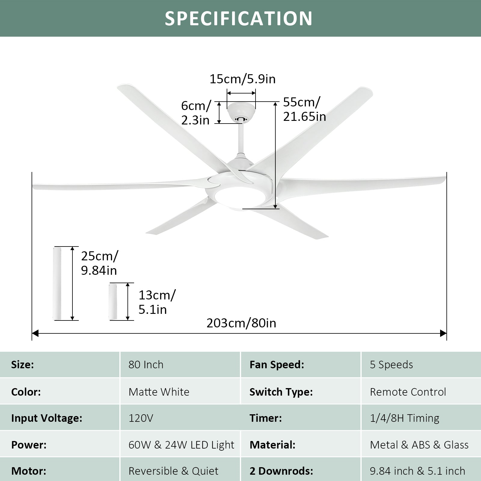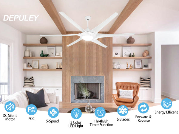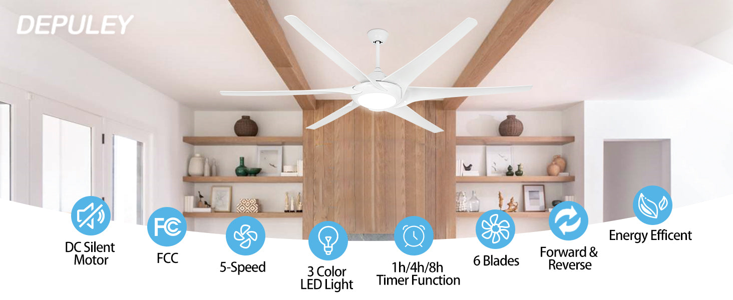 Depuley 80" kattotuuletin valoilla, suuri käännettävä kattotuuletin 6 lavalla, 24 W modernit kattotuulettimet 5 nopeudella olohuoneeseen ja katettuun ulkokäyttöön, 3 väriä vaihdettava, ajastin