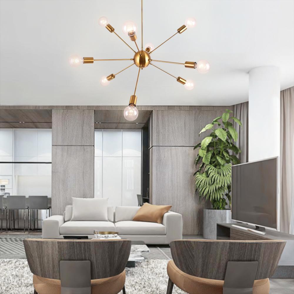 Yhdeksän valoa • Kulta/kromi/musta viimeistely • Sputnik-design • E26/E27 Keskikantaiset polttimot (ei sisälly) • Säädettävä napa • Kiinteä • UL-listattu/CE-listattu