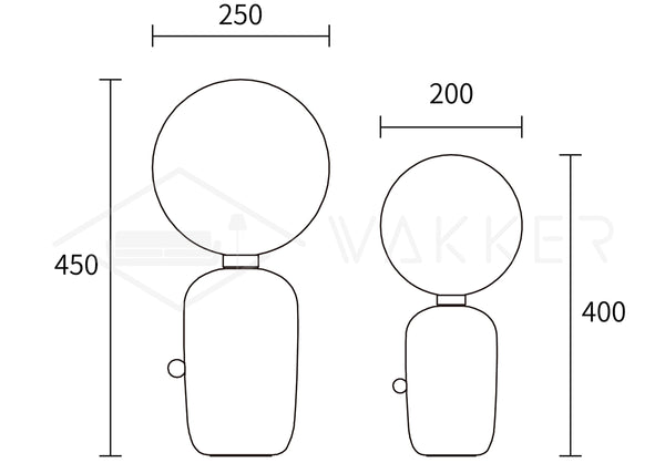 Koko: Halkaisija 20cm x K 40cm / ∅ 7,9″ x H 15,7″ Koko: Halkaisija 25 cm x K 45 cm / ∅ 9,8″ x H 19,7″ Tiedot Materiaali: alumiiniseos, metalli, lasi Valonlähde: LED- tai Edison-lamppu. Jännite: AC 110-240V Asennus: pöytä Ympäristö: Sisätilat Kosteuskestävyys: IP 20 Kosteusluokitus, ei vedenpitävä, vain sisäkäyttöön Viimeistelyt: kupari, musta, valkoinen Lasivaihtoehdot: Valkoinen Ohjaus: Inline On/Off -kytkin. 59" johdot pistokekytkimillä. Certification: UL ja CE, ETL, SAA luettelossa.