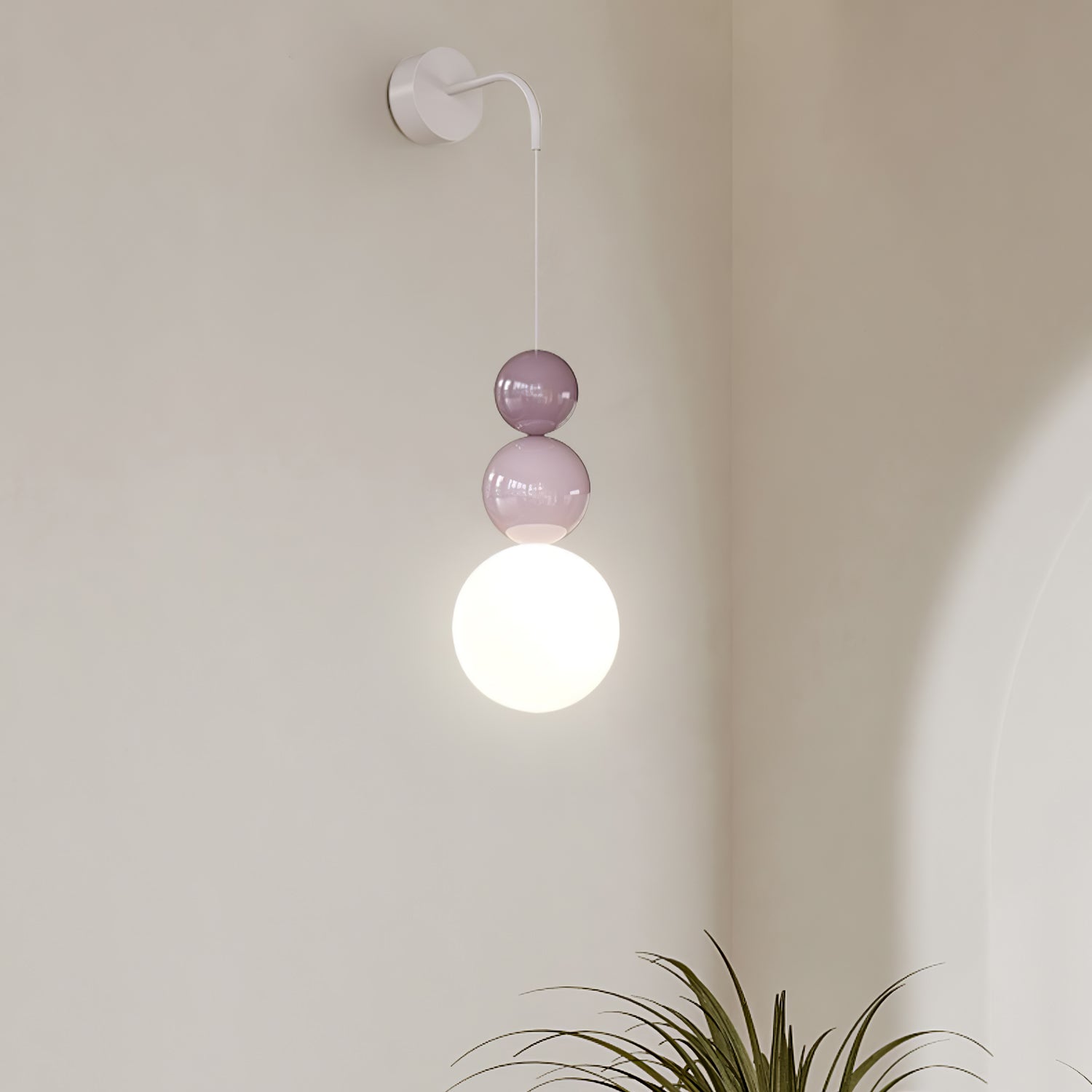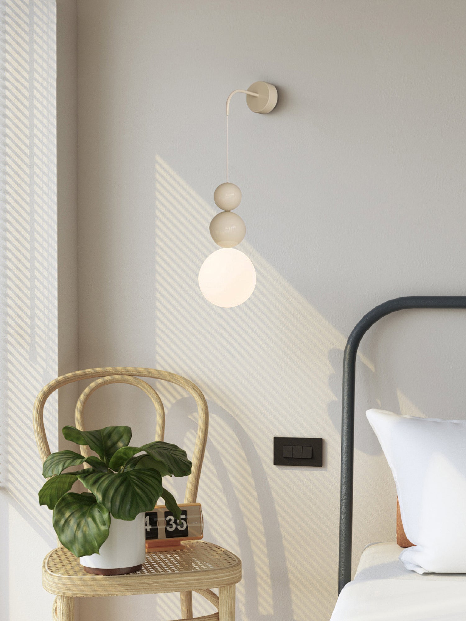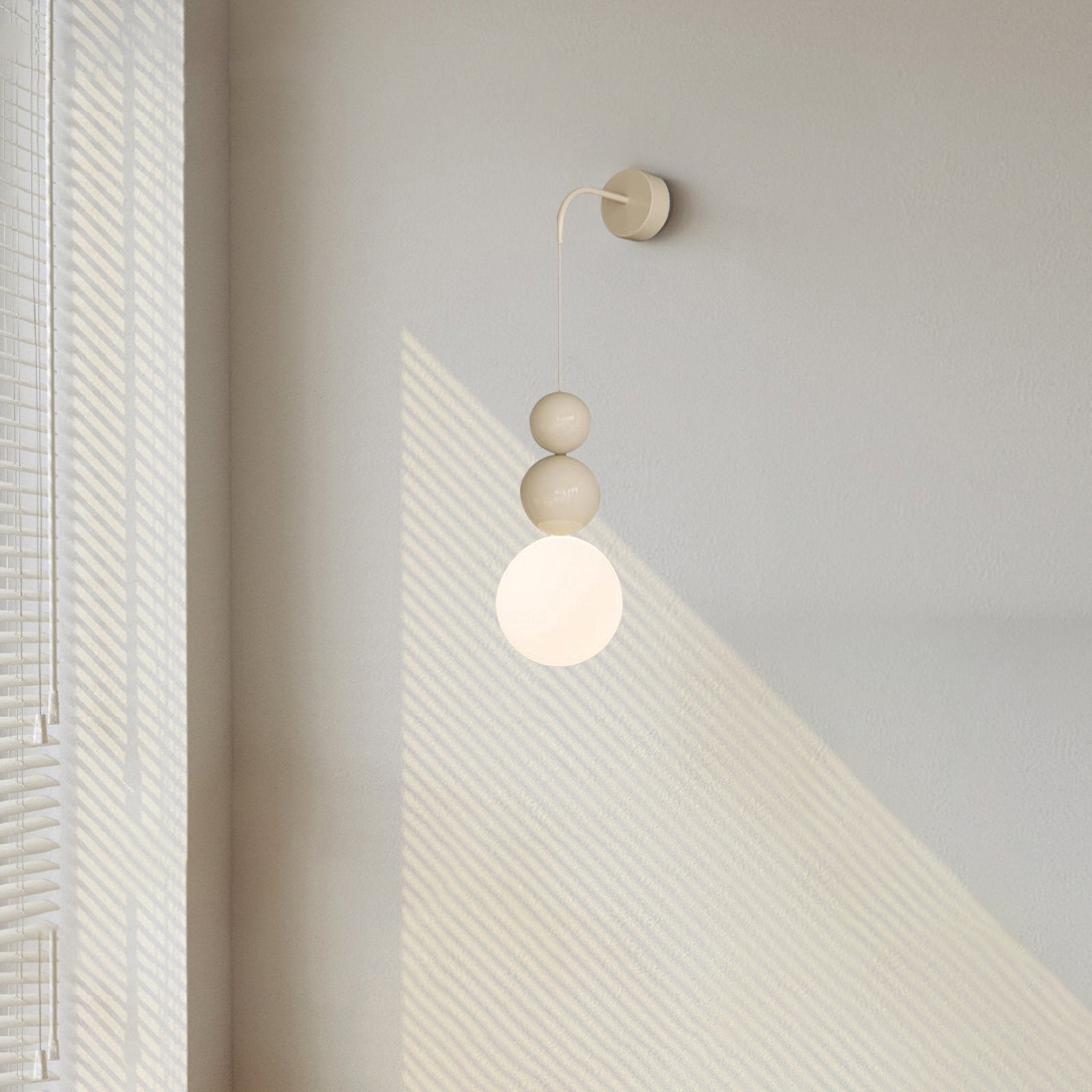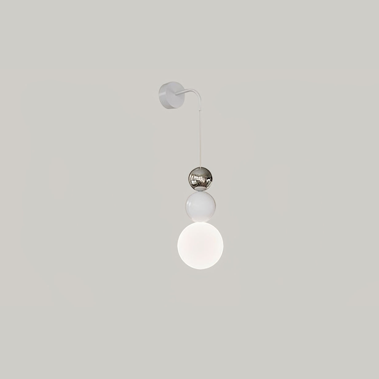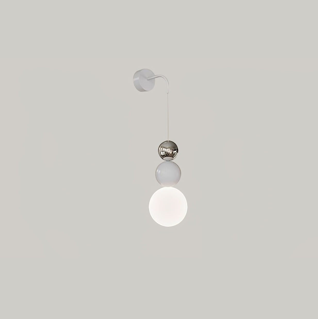 Jokainen seinävalaisin koostuu metallirungosta ja akryylivarjostimesta. Metallirunko on kestävä ja siinä on tyylikäs pintaviimeistely, joka lisää ripauksen nykyaikaisuutta ja tekstuuria. Valkoiset akryylipallot päästävät valon läpi, säteilevät pehmeää ja lämmintä hehkua luoden kiehtovia valo- ja varjoefektejä.