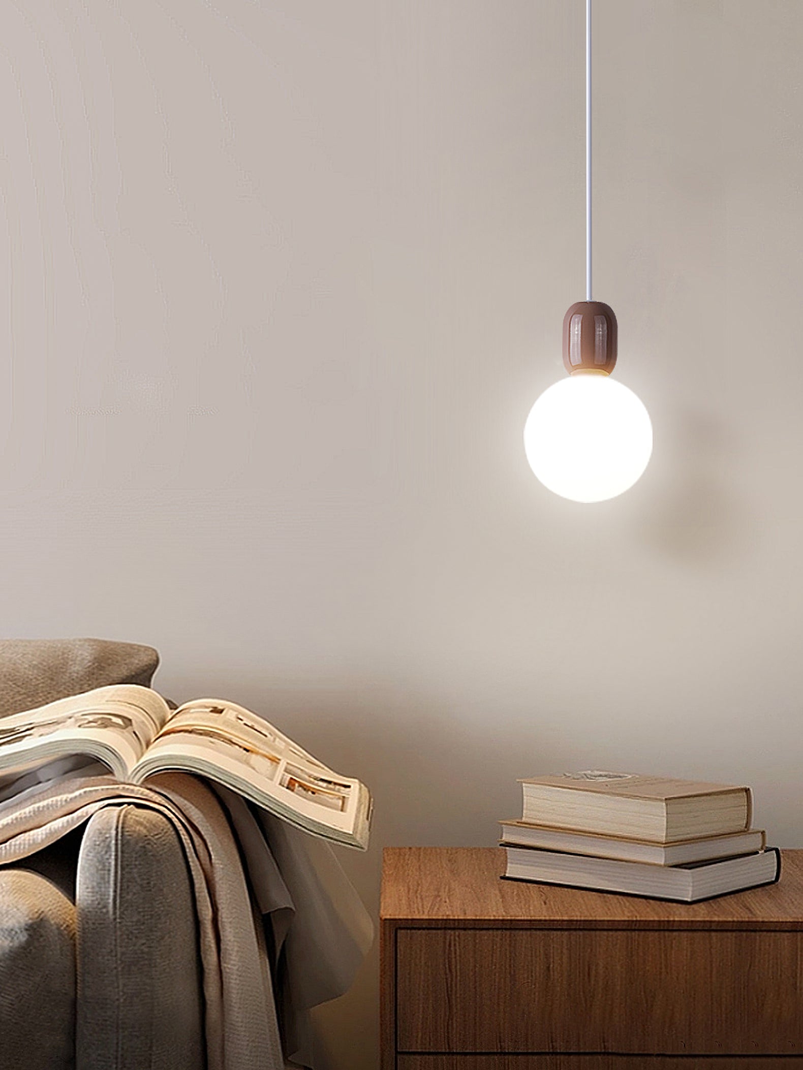 Jokainen riippuvalaisin koostuu metallirungosta ja akryylivarjostimesta. Metallirunko on kestävä ja siinä on tyylikäs pintaviimeistely, joka lisää ripauksen nykyaikaisuutta ja tekstuuria. Läpinäkyvät ja kristallinkirkkaat akryylipallot päästävät valon läpi, säteilevät pehmeää ja lämmintä hehkua ja luovat kiehtovia valo- ja varjoefektejä.