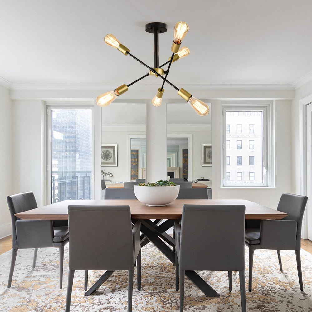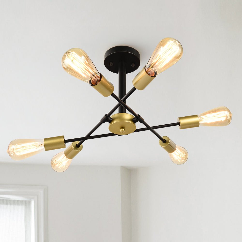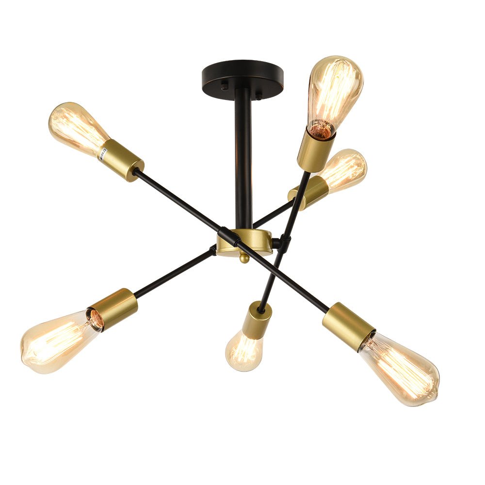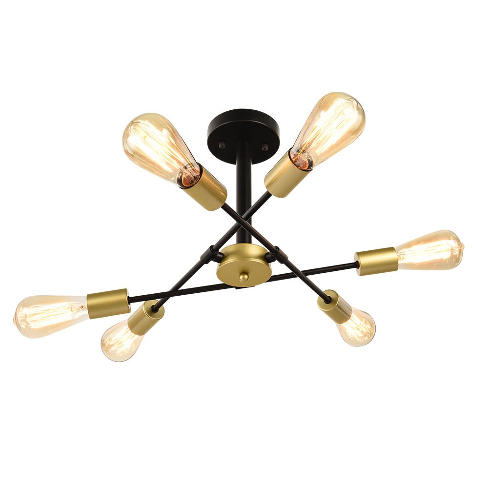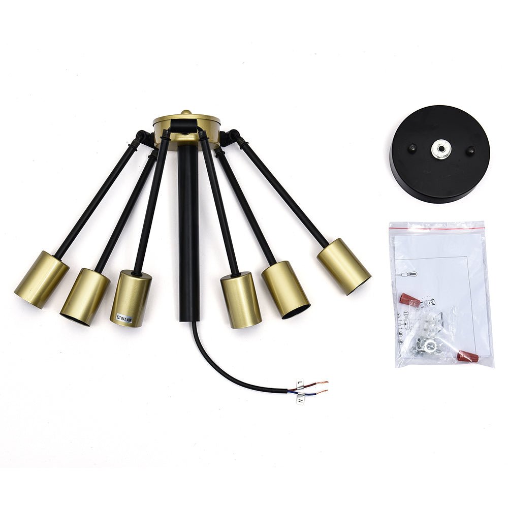 Moderni lineaarinen versio vuosisadan puolivälin sputnik-designista. Tämä puolitasainen kattokruunu sisältää ilmettä, mutta ei ylivoimaisia, kestävästä metallista valmistettuja liitoksia. Keskimmäisen pyöreän rungon tukemana kolmen säädettävän varren avulla voit helposti kiertää ja luoda monimuotoisen lineaarisen puolitaskuasennuksen. Käsivarsien päissä istuu keskikokoinen E26/E27-polttimo, joka tuottaa työvalaistuksen. Tämä sputnik-kattovalaisin voi lisätä keittiöön, eteiseen, eteiseen ja makuuhuoneeseen näyttävän lisäyksen.Detail