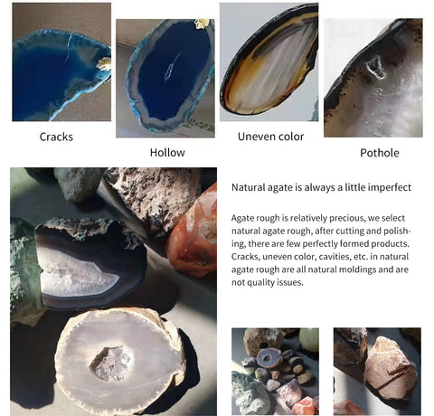 Huomautus: Valitsemme luonnonakaattikivet, joten emme voi taata, että jokainen kivi on täydellinen. Esimerkiksi akaatin väri on epätasainen. Siellä on halkeamia, onteloita jne, jotka ovat luonnonakaatin luonnollisia ilmiöitä.
