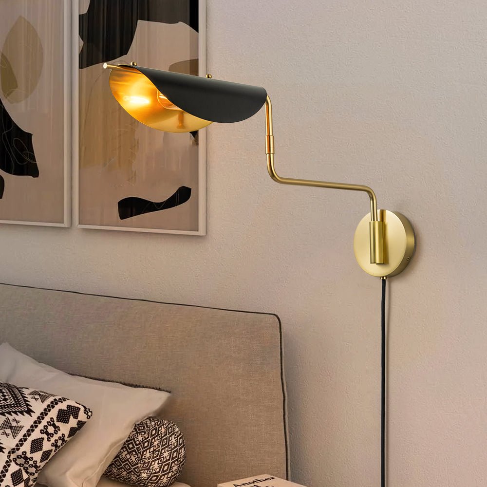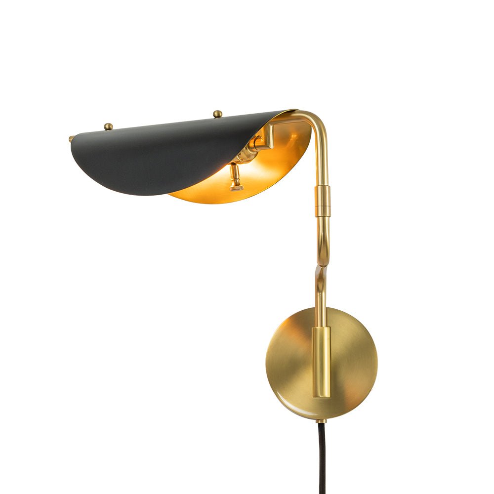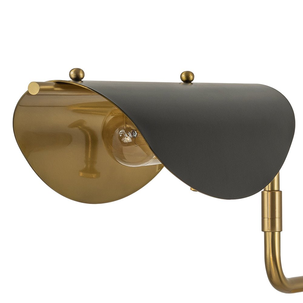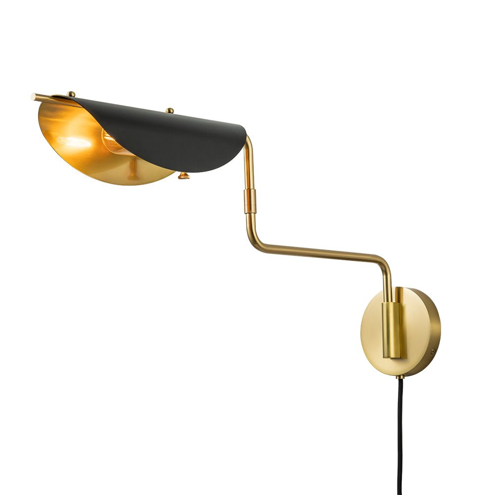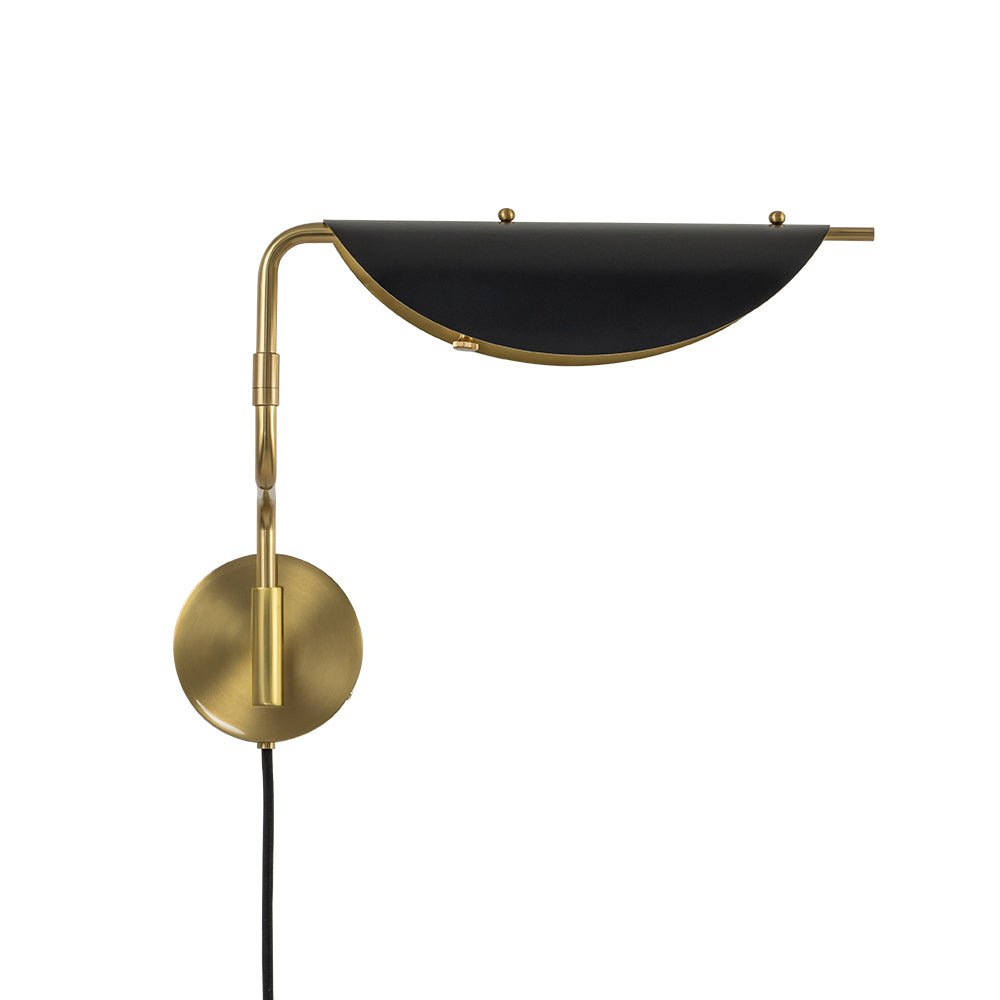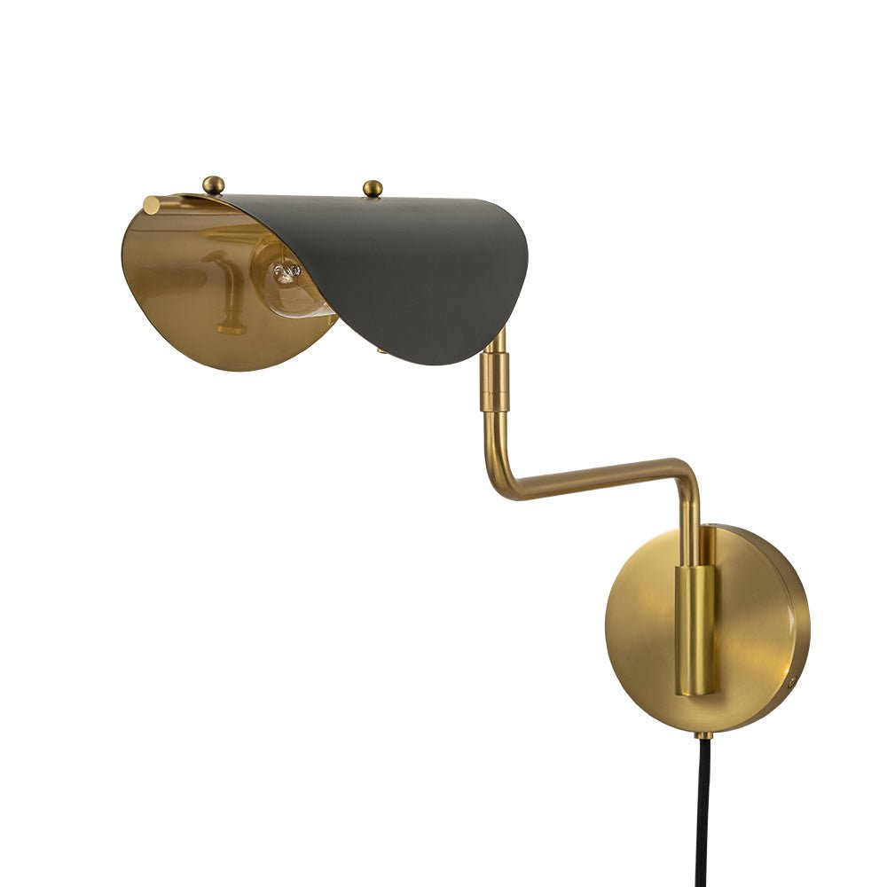 One Light • Plug-In Design • Pyörivä kytkin • Kääntövarsi • Satiinimusta + vanhentunut messinkiviimeistely • E26/E27 keskikokoinen polttimo (ei sisälly) • Kiinteä • UL-listattu_10