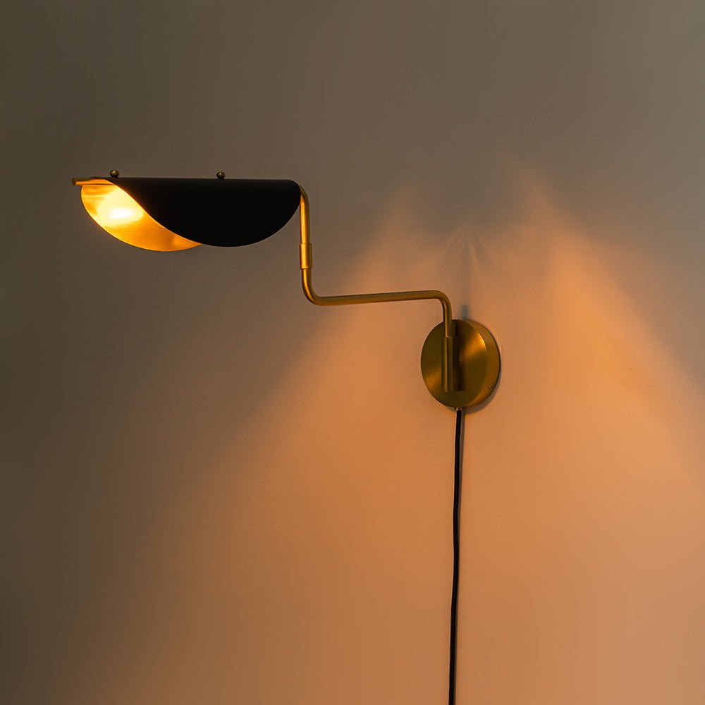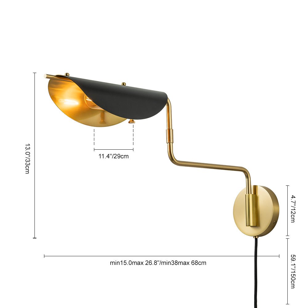 Tässä seinälle pyöreällä taustalevyllä kiinnitetyssä 1-valaisimessa on puoliksi taittuva pyöreä varjostin, joka on levitetty kaarevan vaakasuoran varren päälle, joka muistuttaa laiska lootuksenlehteä. Sen säädettävä muotoilu mahdollistaa varren heilumisen ja kääntymisen vaivattomasti, mikä tarjoaa mukautettavan valaistuksen suunnan. Himmennettävä toiminto yhdistettynä mukana tulevaan kiertokytkimeen tarjoaa mukautuvan säädön kirkkaustasojen säätämiseen. Satiinimusta sävy, jota täydentävät vanhentuneet messinkiyksityiskohdat, luo tyylikkään eklektisen kontrastin, joka sopii saumattomasti mihin tahansa sisustustyyliin. Korostatpa olohuonettasi, makuuhuonettasi, kylpyhuonettasi tai aulaasi, tämä vuosisadan puolivälin keinuvarsi seinävalaisin toimii erinomaisena lisäyksenä, ja se saa kiitosta ilmeikkäästä muotoilustaan.