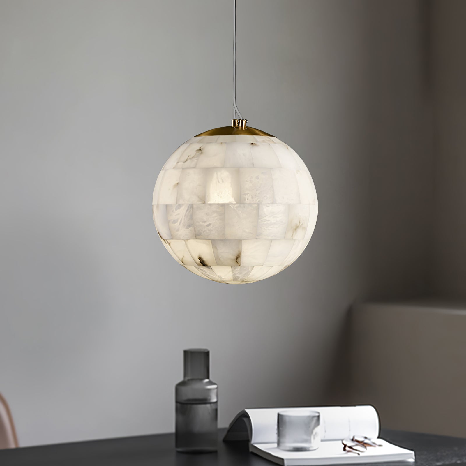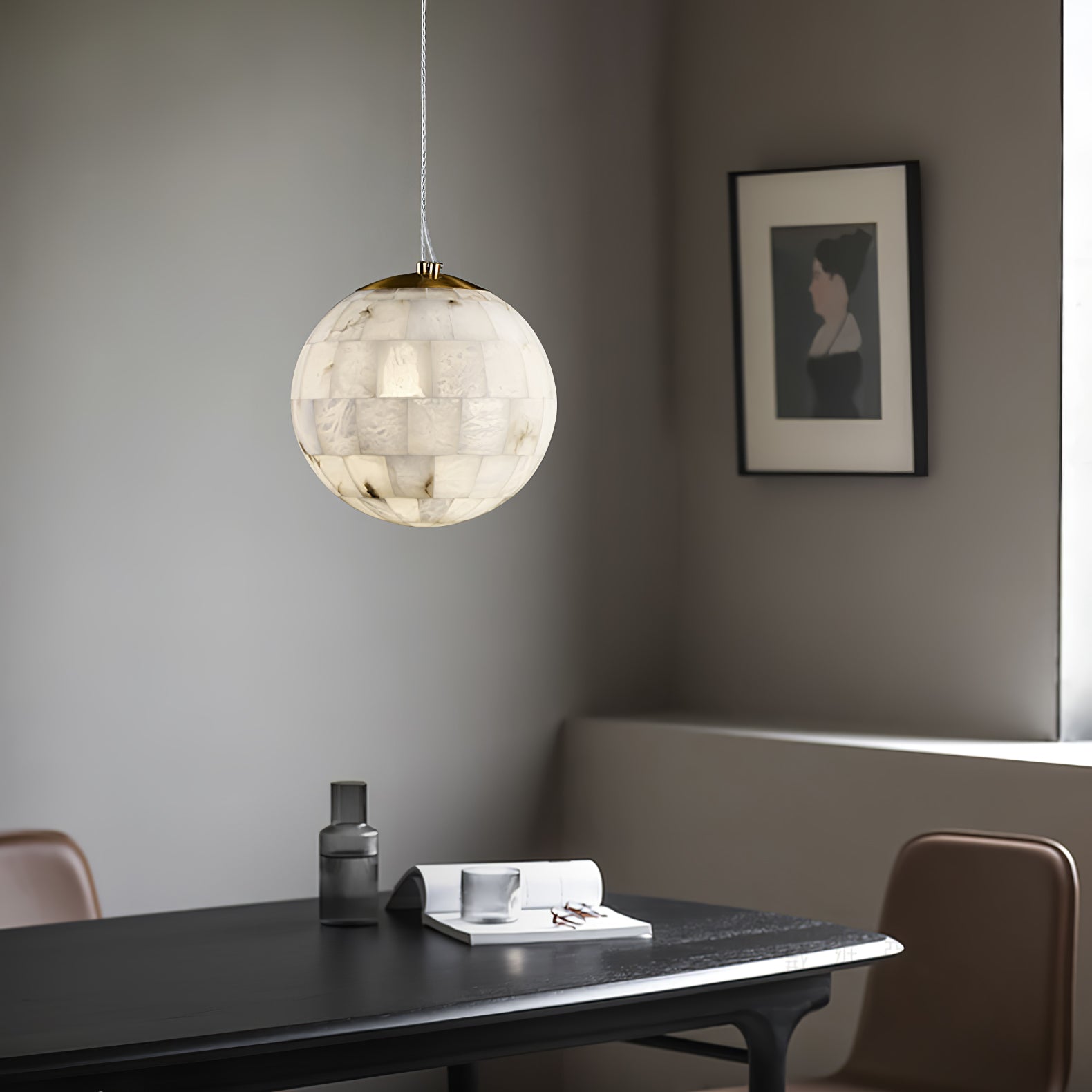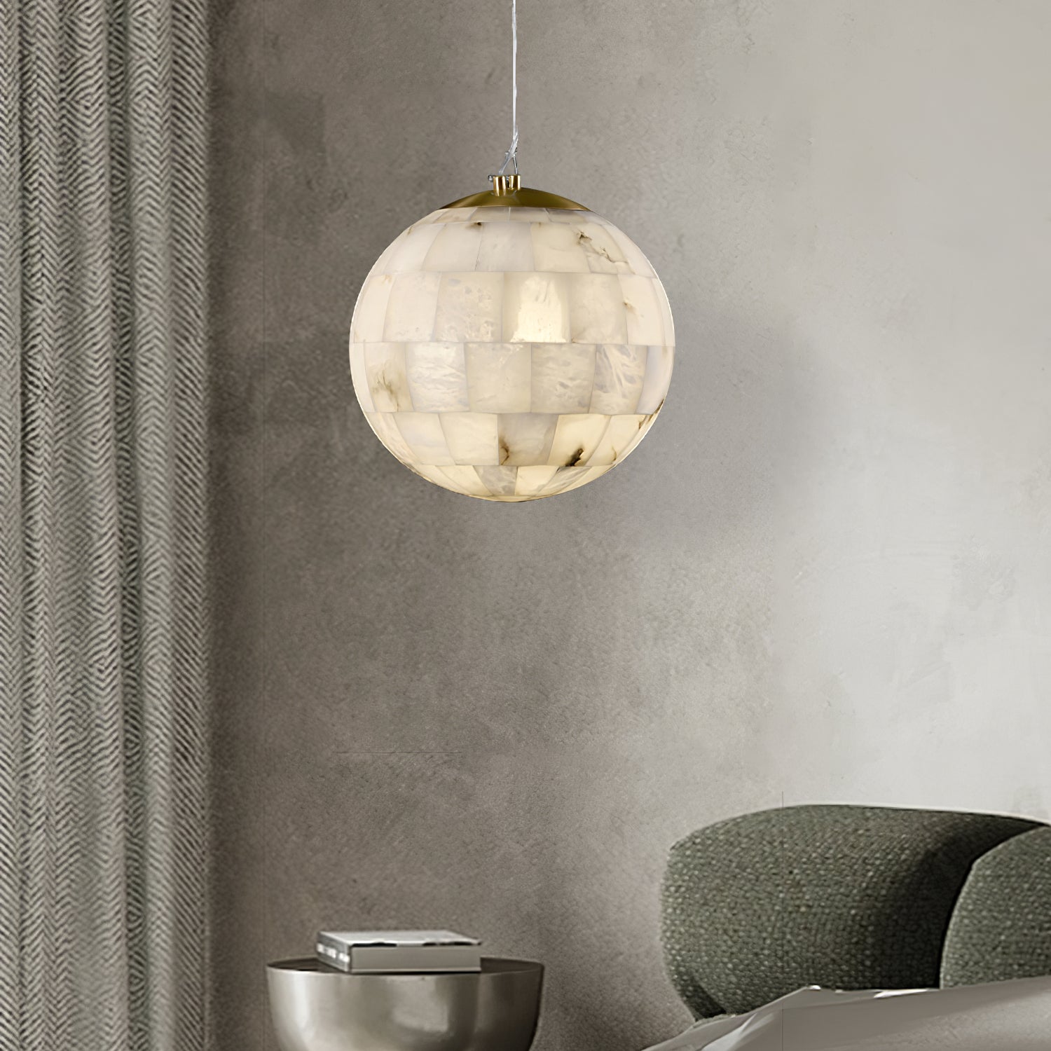 Alabasteripalloriippuvalaisin on elegantti ilme jokaiseen huoneeseen. Messingistä ja alabasterista valmistettu valaisin on katseenvangitsija lisävaruste. Sen hienostunut ja nykyaikainen muotoilu tekee siitä täydellisen lisäyksen mihin tahansa moderniin kotiin.
