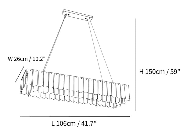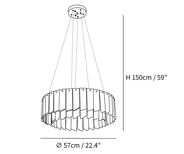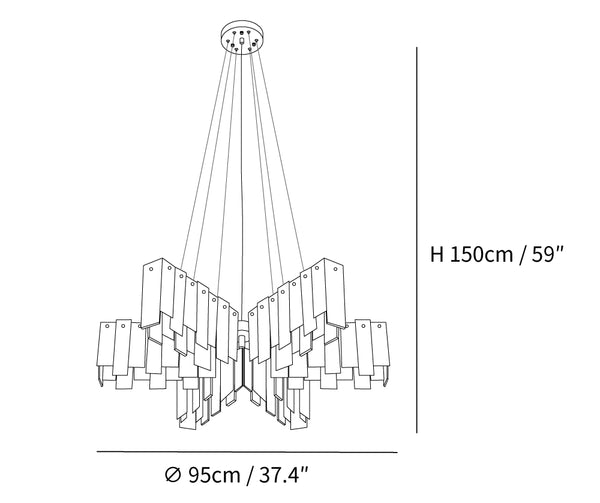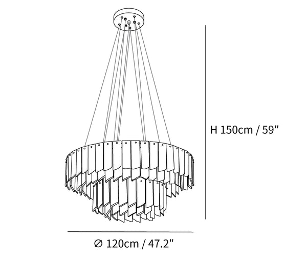 Koko: Halkaisija 65 cm x K 150 cm / ∅ 25,6″ x K 59″ Koko: Halkaisija 95 cm x K 150 cm / ∅ 37,4″ x K 59″ Koko: P 106 cm x L 26 cm x K 150 cm / P 41,7" x L 10,2" x K 59" Tiedot Materiaali: alabasteri, messinki. Valonlähde: LED- tai Edison-lamppu. Valonlähteen perustyyppi: G9. Jännite: AC 110-240 V. Rungon viimeistelyt: messinki. Shade Finish: White. Asennus: kattoon. Kosteudenkestävyys: IP 20 Kosteusluokitus käytettäväksi kylpyhuoneissa, keittiöissä ja katetuissa ulkotiloissa. Ympäristö: Sisätiloissa Johdot: kiinteä. Ohjaus: Yhteensopiva tavallisen seinäkytkimen kanssa (ei mukana). Kytkin: Tämä kytkin pitää kytkeä ulkoiseen seinävalokytkimeen, mahdollistaa hallitun sähkönsyötön. 59″ Säädettävä riippukorkeuskaapeli, jota voidaan pidentää tarpeen mukaan. Certification: UL, ETL ja CE, SAA listattu.