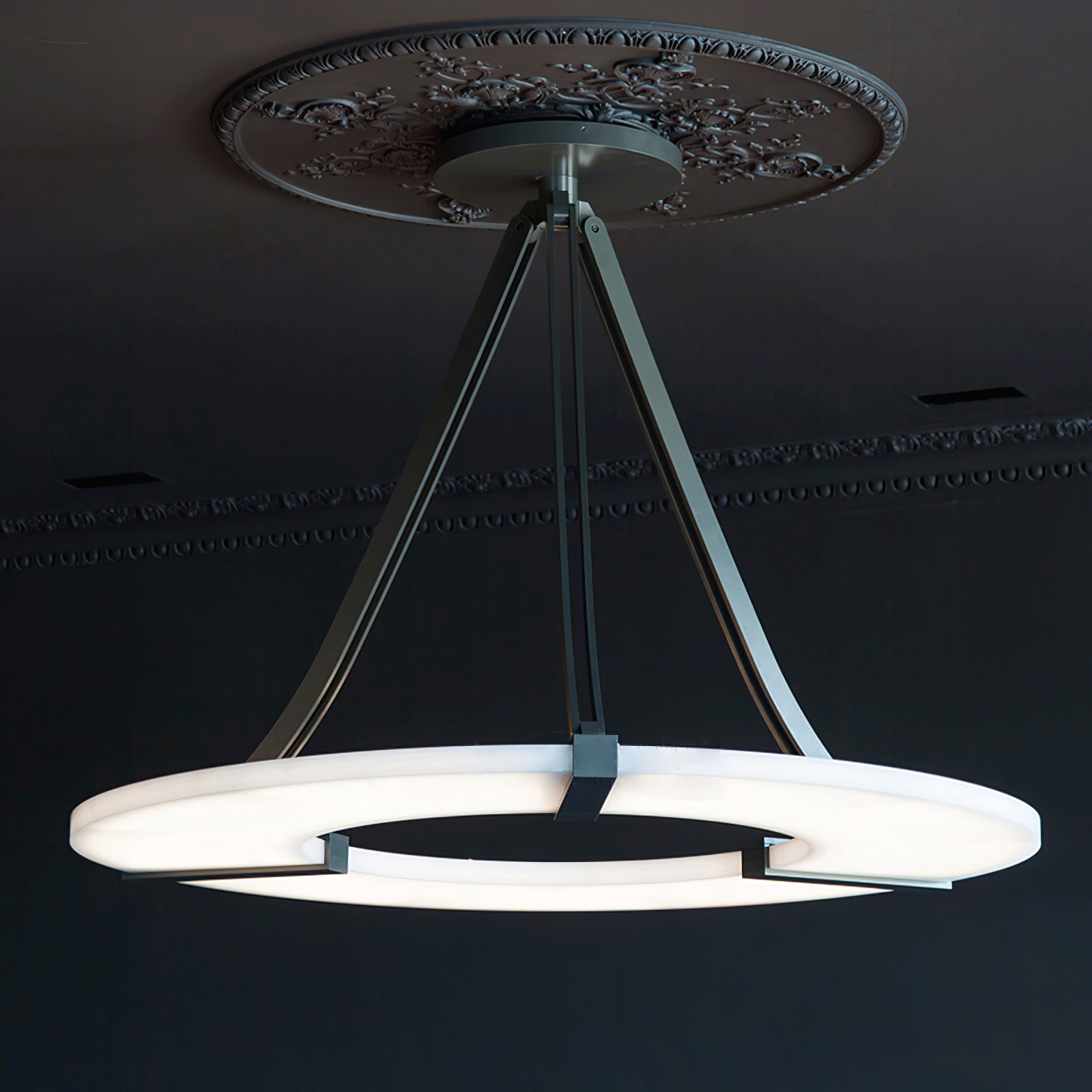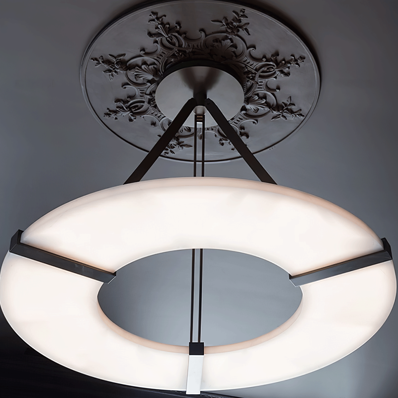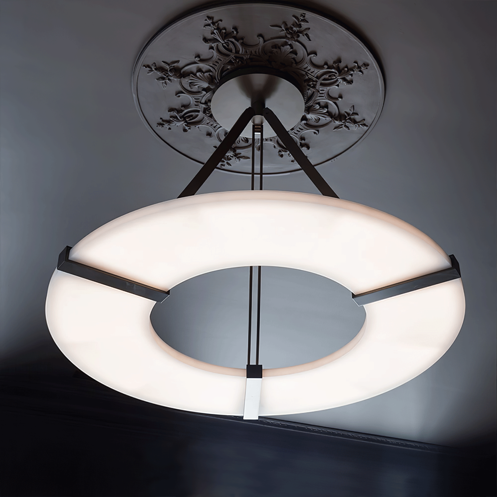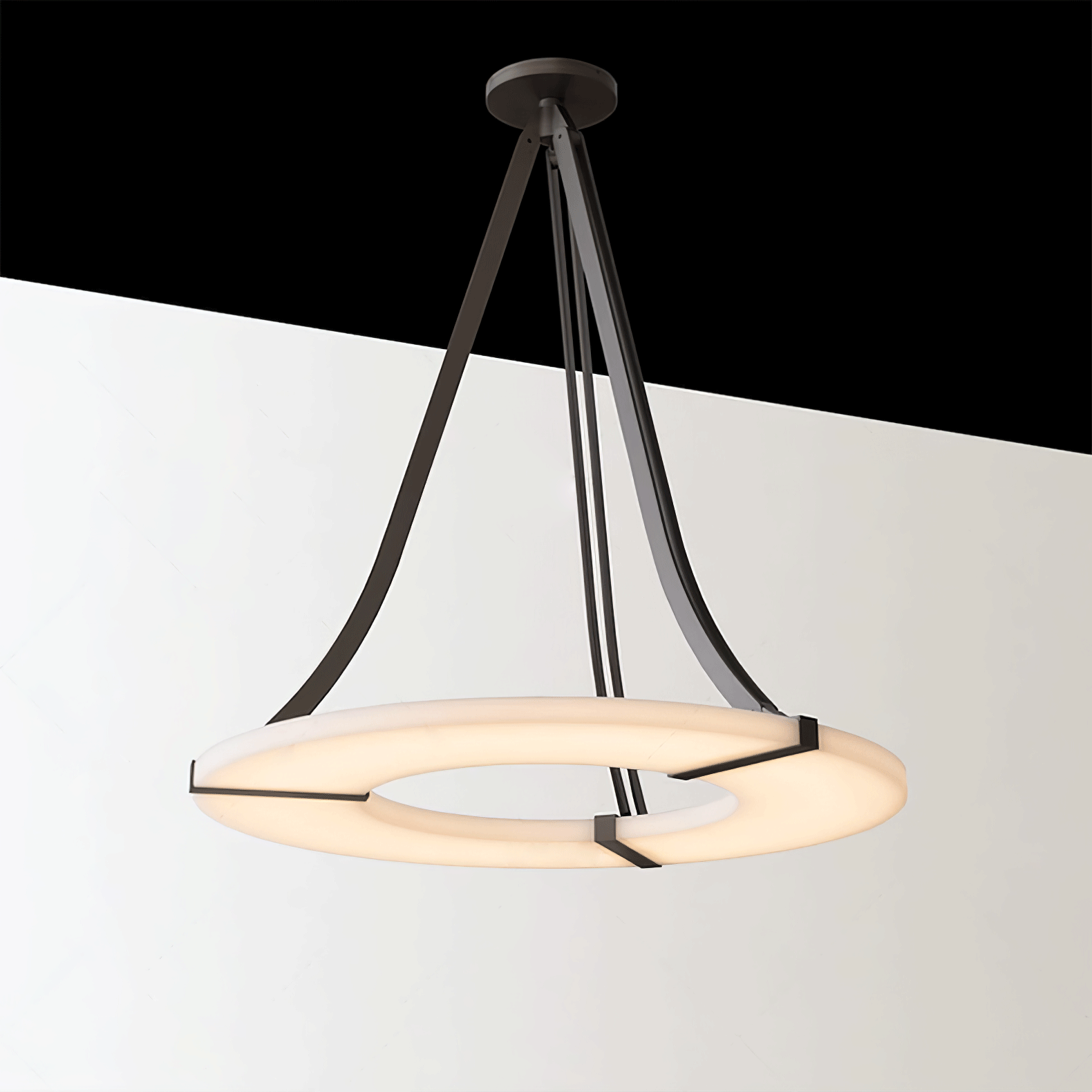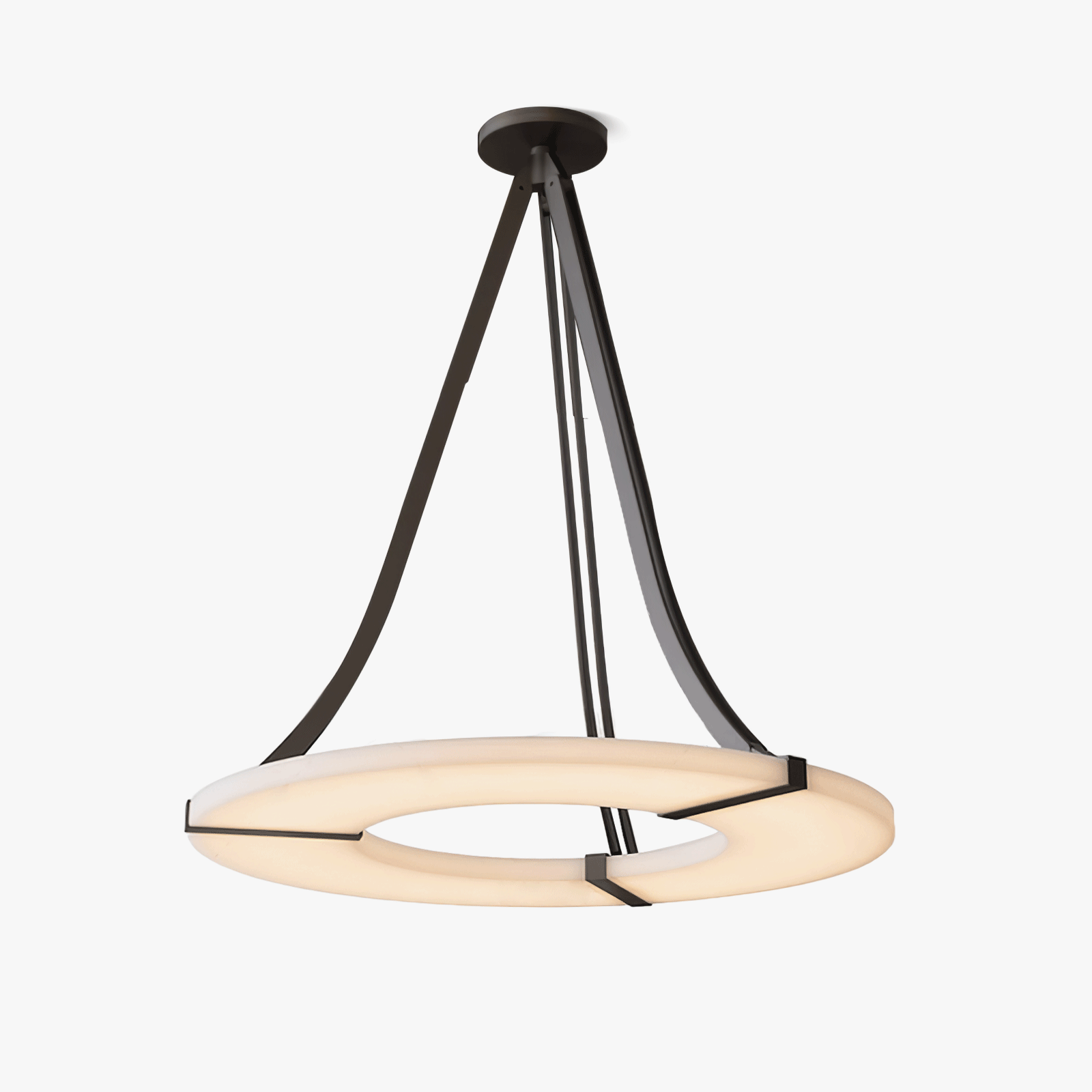 The Alabaster Halo Pendant Light on täydellinen sekoitus modernia eleganssia ja ajatonta hienostuneisuutta. Valmistettu korkealaatuisesta alabasterista, sen puoliksi läpikuultava kauneus ja luonnollinen rakenne ovat ainutlaatuisia. Se antaa lämmintä, hajavaloa luoden rauhallisen ja ylellisen tunnelman. Valaisin on ripustettu kolmeen ohueen mustaan mattarautatankoon, jotka näyttävät kelluvan ilmassa ja lisäävät nykyaikaisen ja minimalistisen ilmeen mihin tahansa tilaan. Ihanteellinen ruokailutiloihin, olohuoneisiin tai eteisiin, Alabaster Halo -riippuvalaisin ei ole vain valaistuksen lähde, vaan upea keskipiste, joka kiinnittää katseen ja herättää mielikuvituksen.