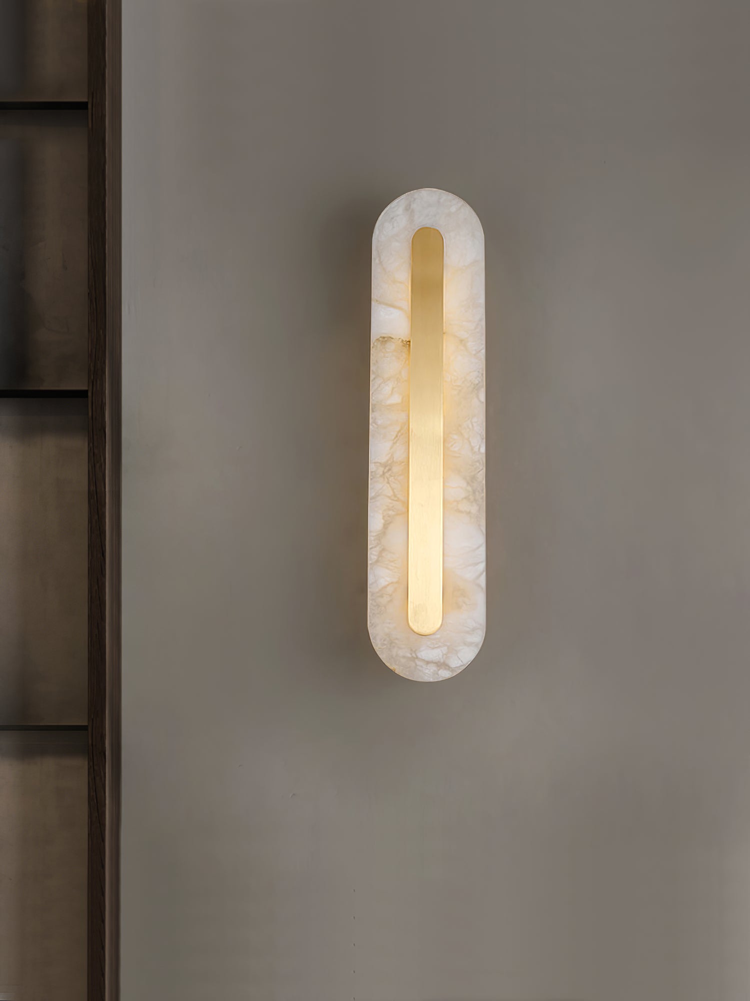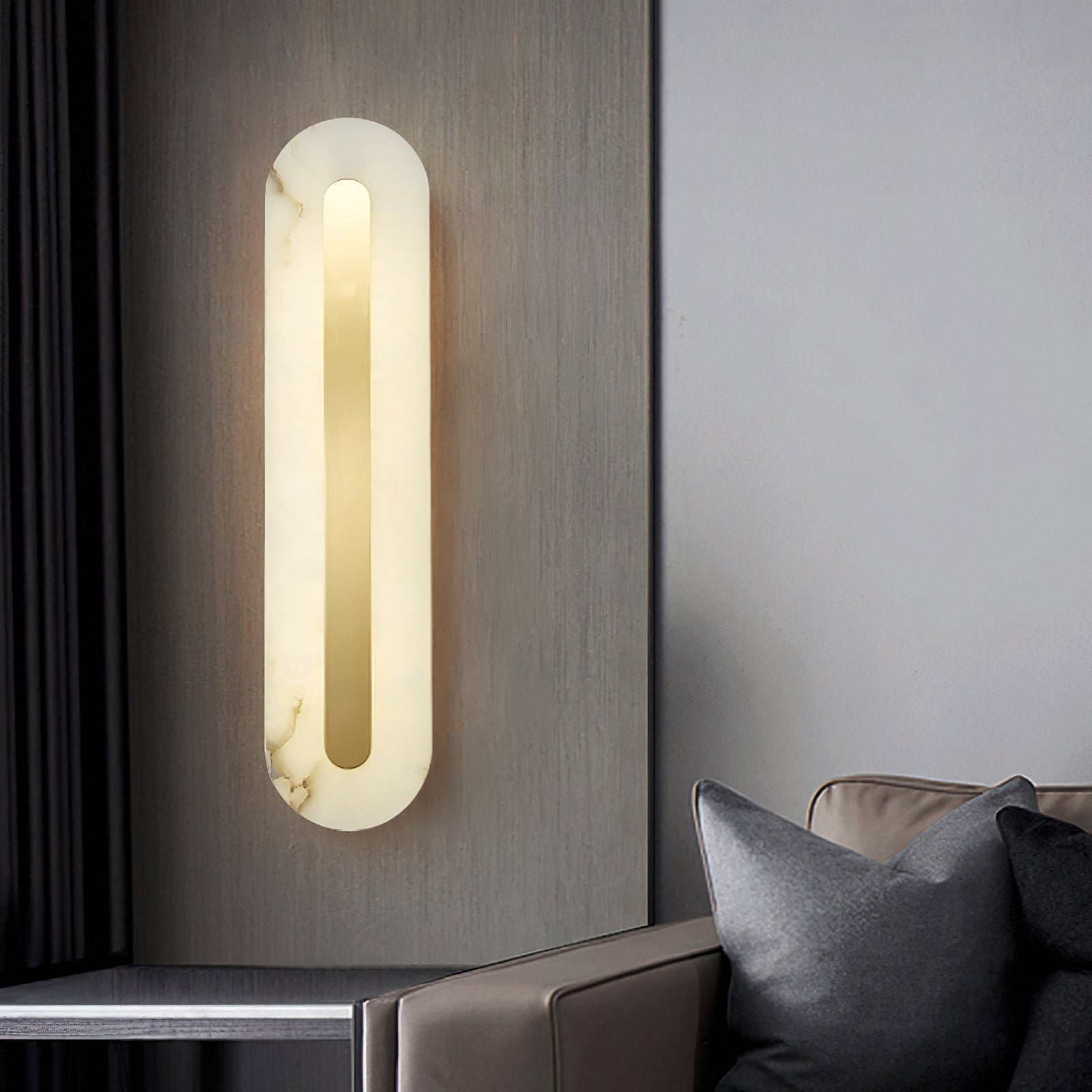 Alabaster Pyöreä seinävalo pitää matalan profiilin, koska sen yksittäisen lampun valo täyttää tilan hellästi. Tämä tyylikäs lamppu voidaan ripustaa pysty- tai vaakasuoraan.