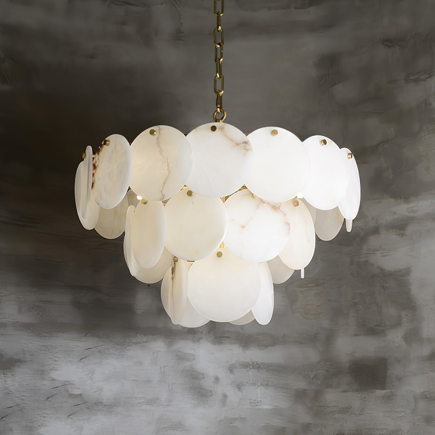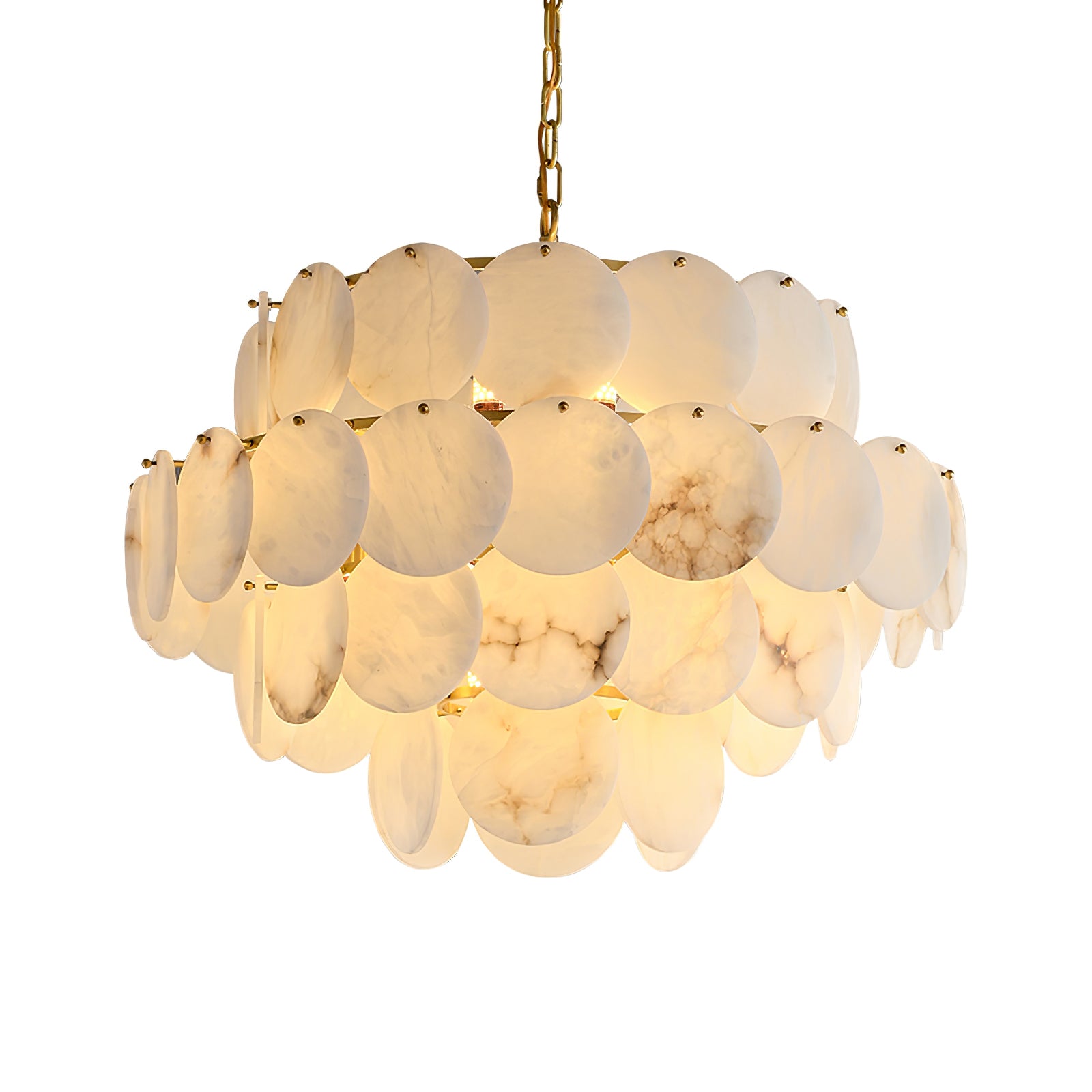 Suunniteltu olemaan minkä tahansa huoneen keskipiste. Alabaster Shell Chandelier antaa hellävaraista, hajavaloa, joka on ihanteellinen luomaan rauhallisen tunnelman ruokailuhuoneeseen, olohuoneeseen tai eteiseen. Alabasterin ainutlaatuiset ominaisuudet tarkoittavat, että jokaisella kuorella on omat selkeät kuviot ja läpikuultavuus, mikä tekee jokaisesta kattokruunusta ainutlaatuisen mestariteoksen.