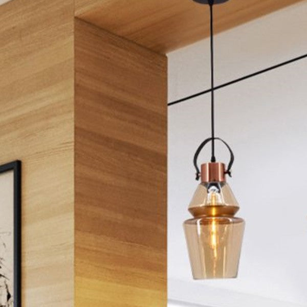 - Luova riippuva kattokruunu modernilla ja yksinkertaisella riippuvalaisimilla, geometrinen meripihkan lasivarjostin. Yksinkertainen pohjoismainen valaistus sopii kaikenlaiseen kodin sisustukseen.