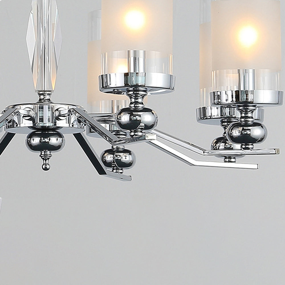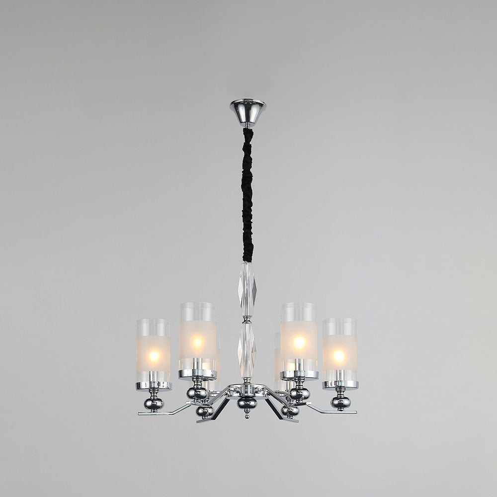 - Hopean metallin ja kirkkaan lasin yhdistelmä kattokruunussa korostaa valaisimen tyylikästä ja ensiluokkaista rakennetta, joka sopii hyvin myös kyberpunk-tyyliin.