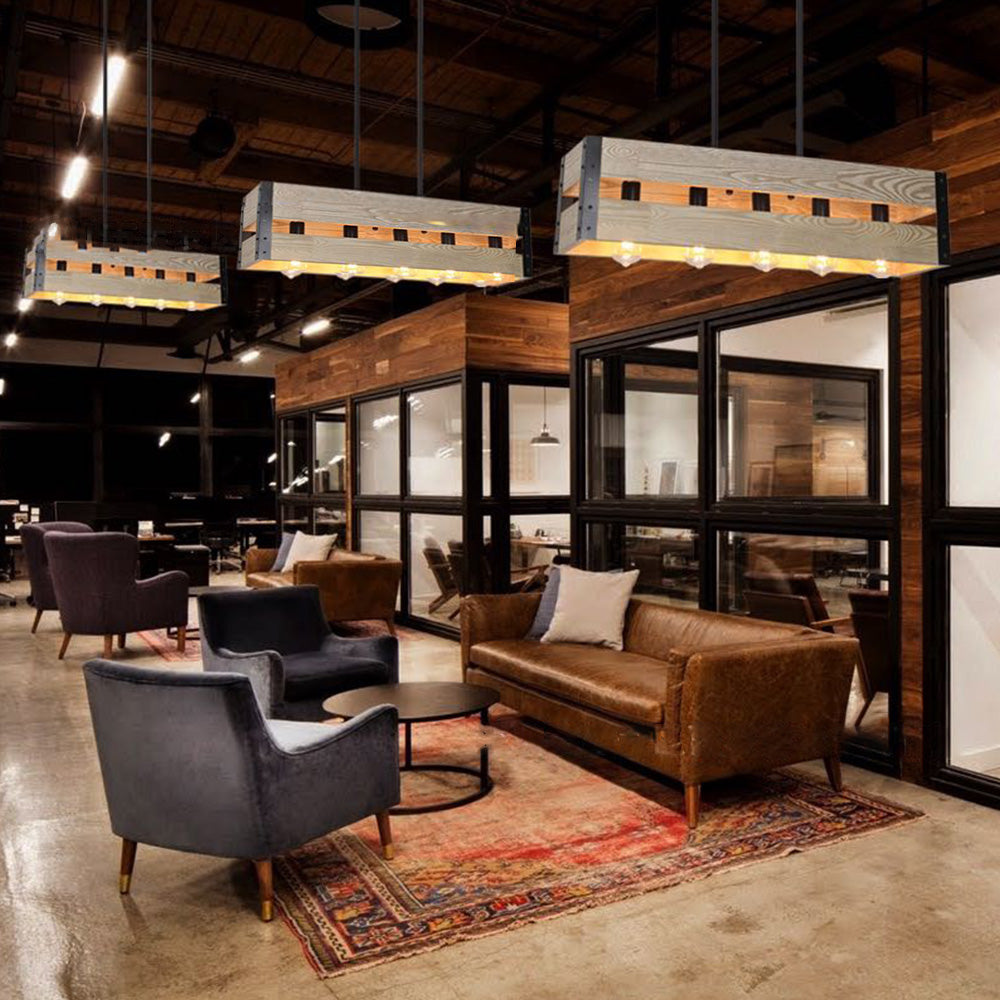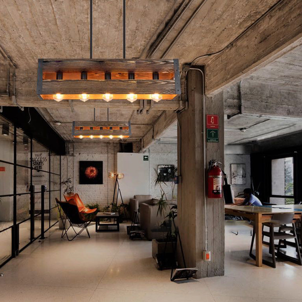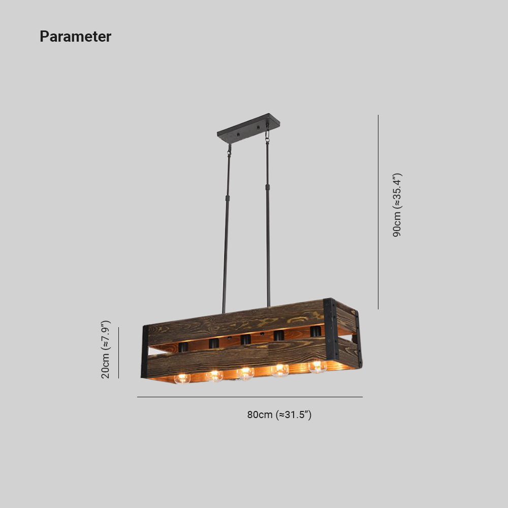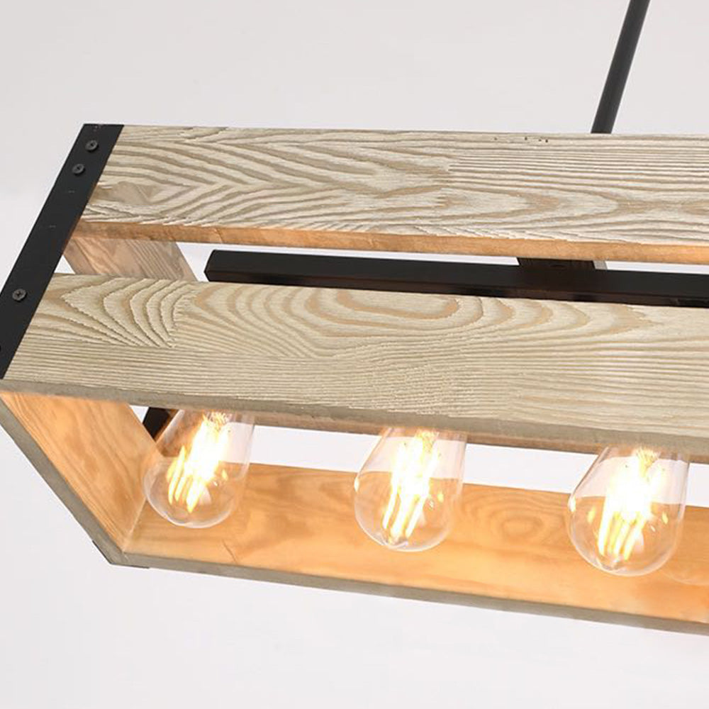 Alessio Retro suorakaiteen muotoinen metalli- ja puuriippuvalaisin, 5 päätä, 2 tyyliä