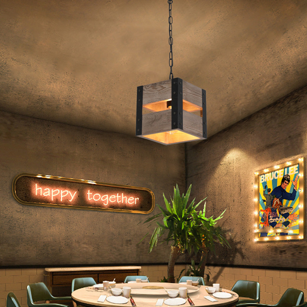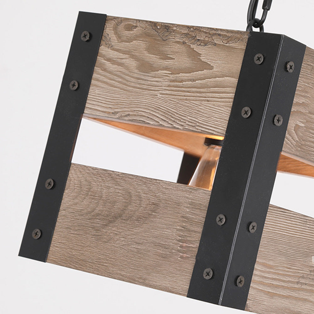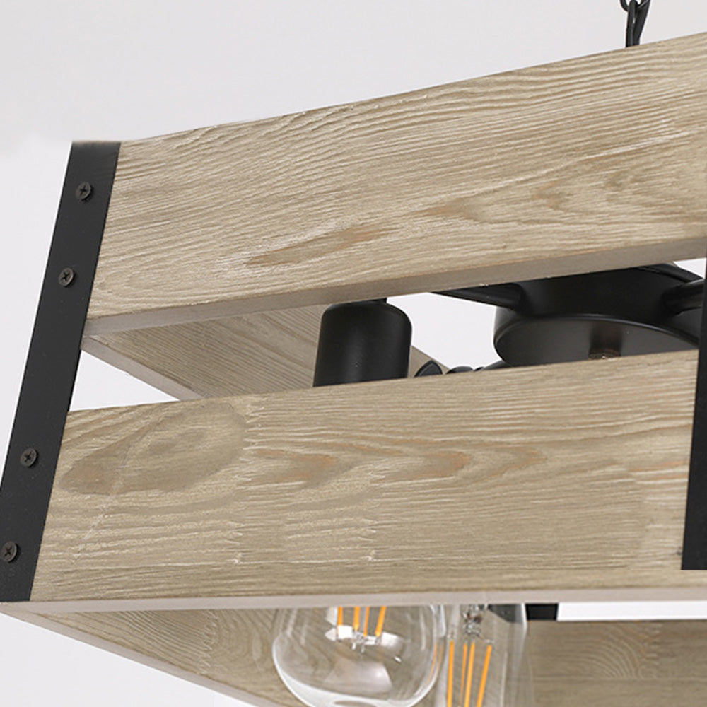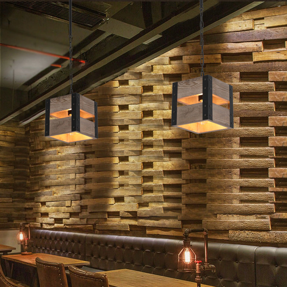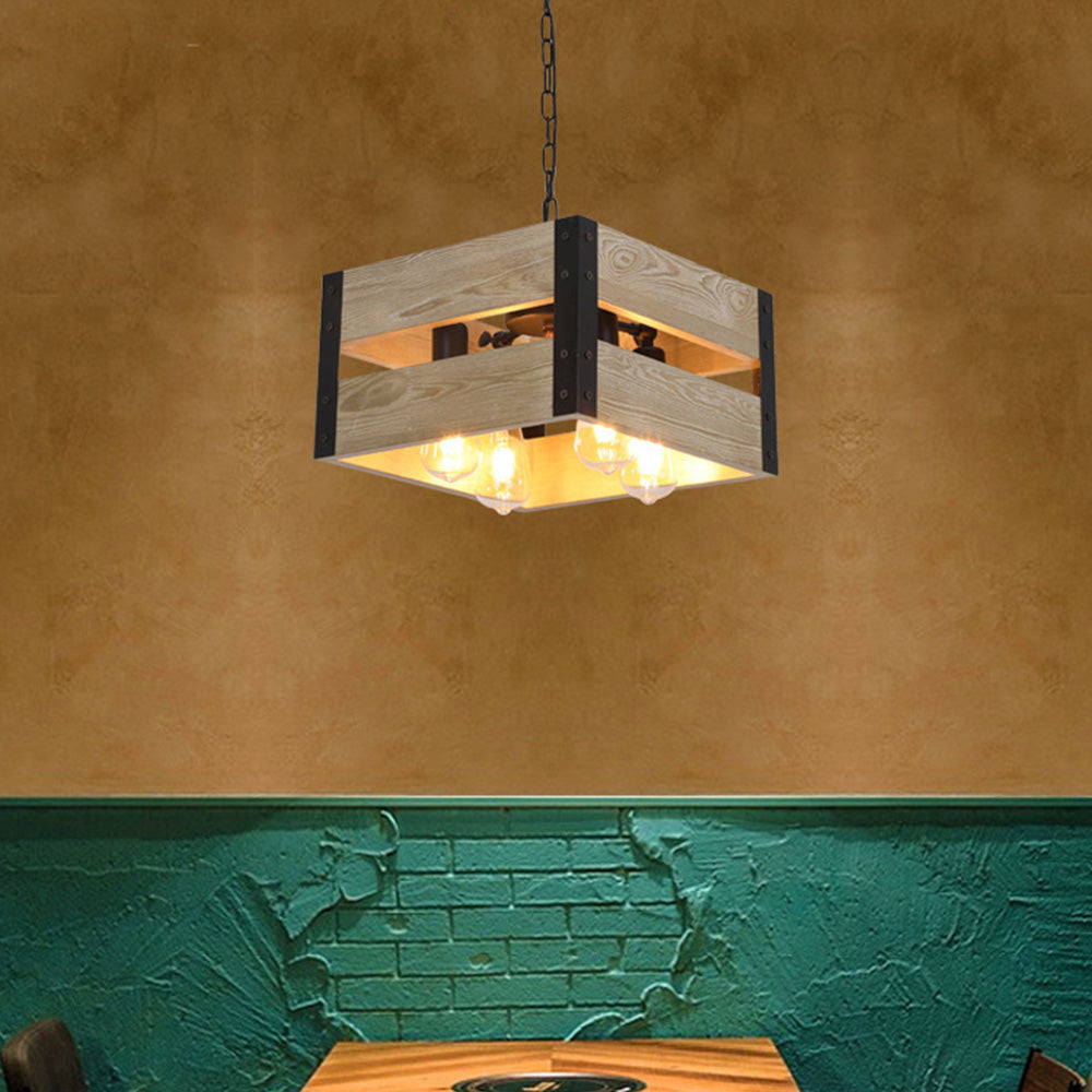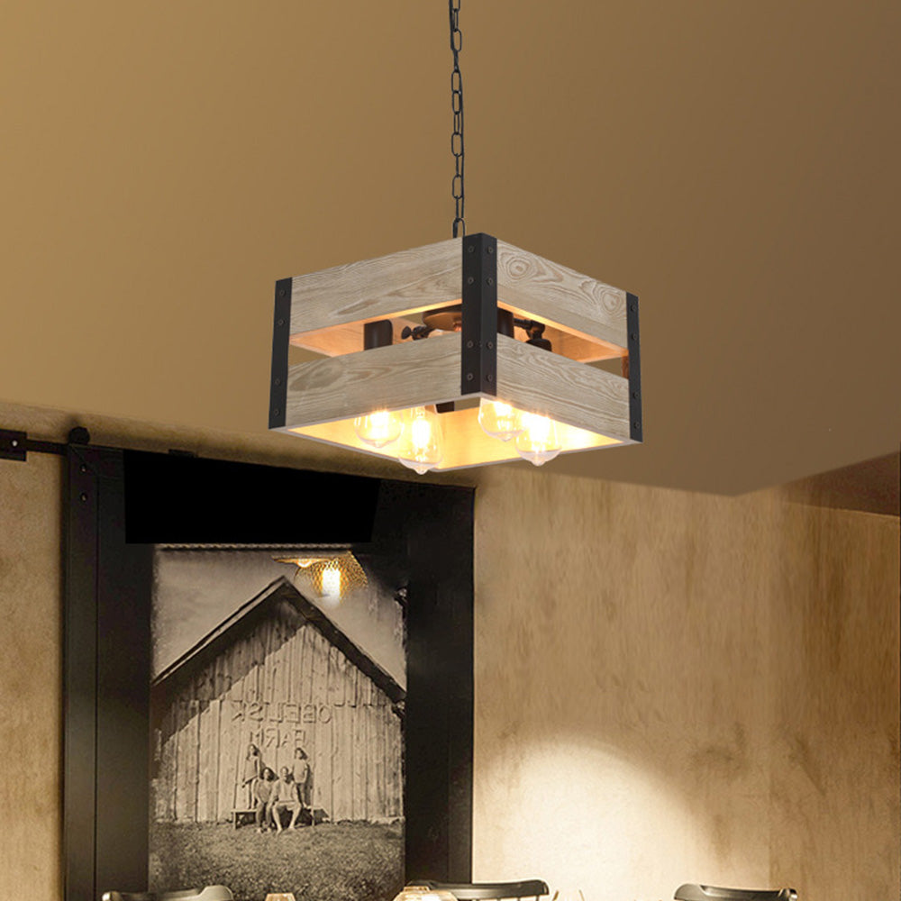 Alessio Retro neliön metalli- ja puuriippuvalaisin, 4 päätä, 2 tyyliä