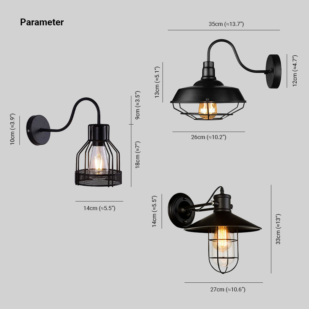 - Saatavilla kolmessa valloittavassa tyylissä, Alessio-seinävalaisin tarjoaa monipuolisen valikoiman muotoja, jotka sopivat suunnittelumieltymyksiisi. Style A:ssa on lineaarinen pullomainen muoto, jonka sisällä on vintage-lamppu, joka luo lämpimän ja kutsuvan hehkun. Style B esittelee siroa kupolikulhoa, jonka alla on suojaava häkki, joka lisää ripauksen teollista viehätysvoimaa ja suojaa polttimoa. Style C:ssä on ainutlaatuinen kartiomuoto, jonka keskellä on monimutkainen häkki, joka suojaa vintage-sipulia. Kaareva nauha pitää valaisimen kiinni tyylikkäästi seinään kiinnitettynä, mikä luo visuaalisesti houkuttelevan ja toimivan sisustuselementin.