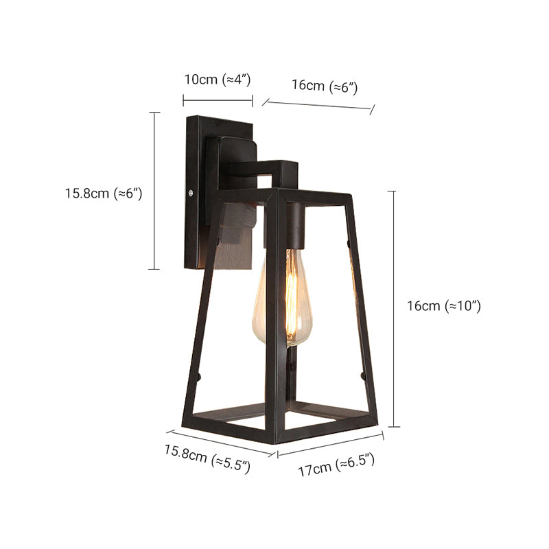 Alessio Retro musta teollisuuslyhty seinävalaisin, metallia & lasia