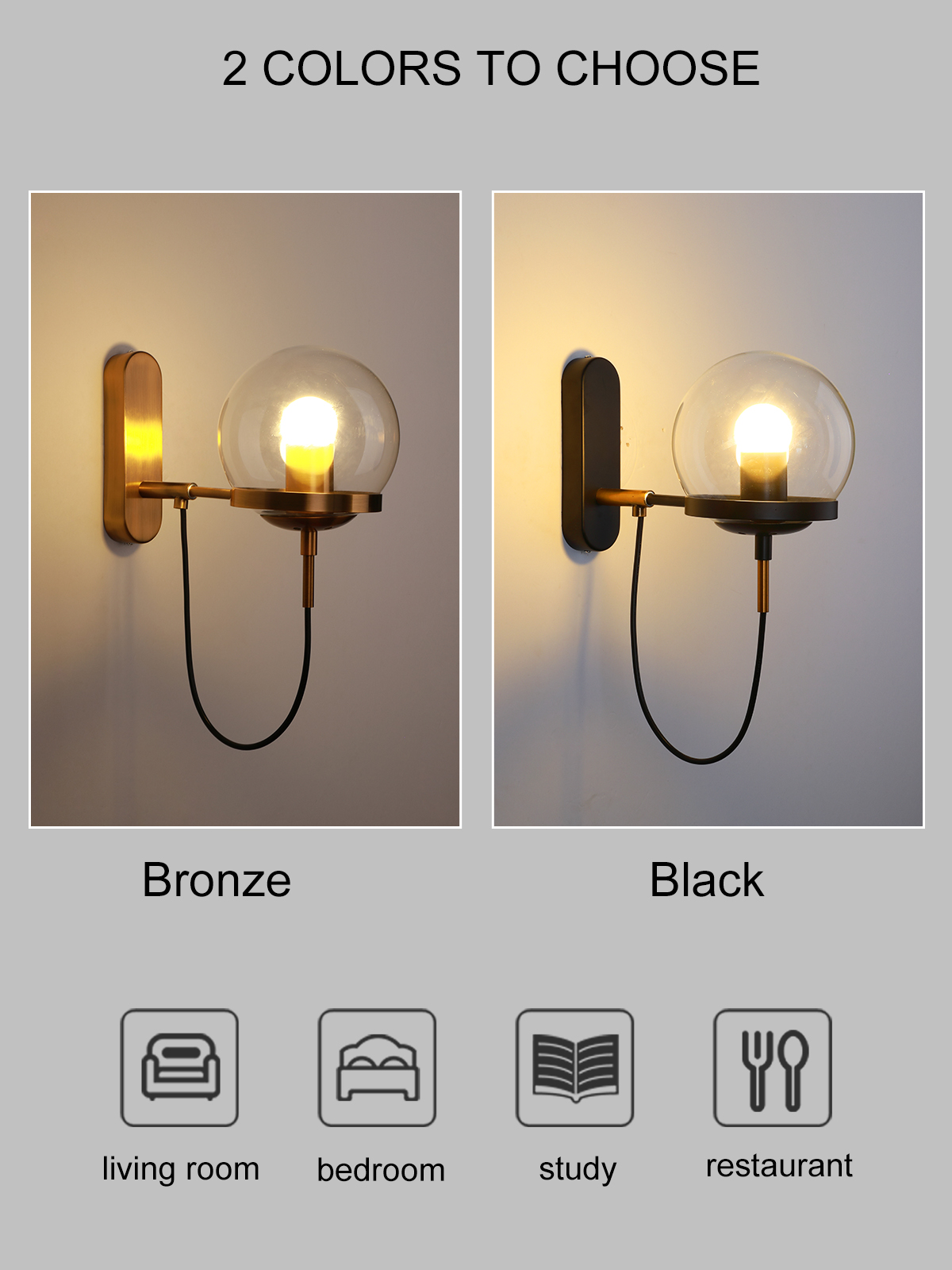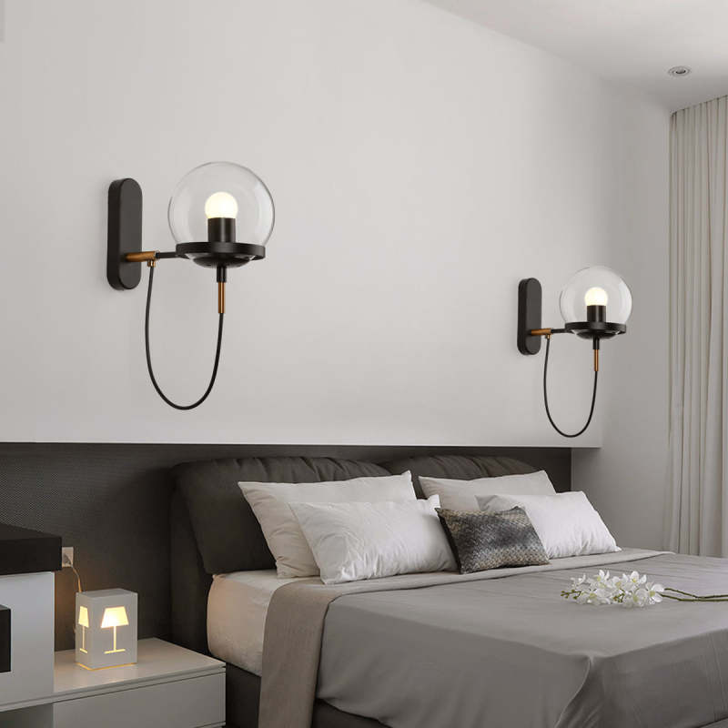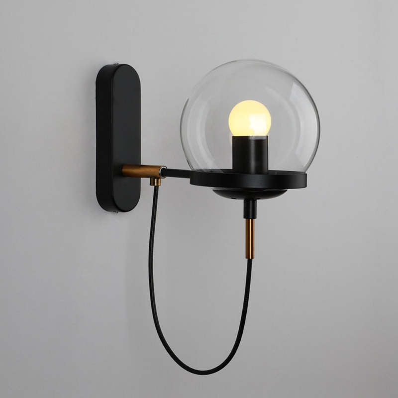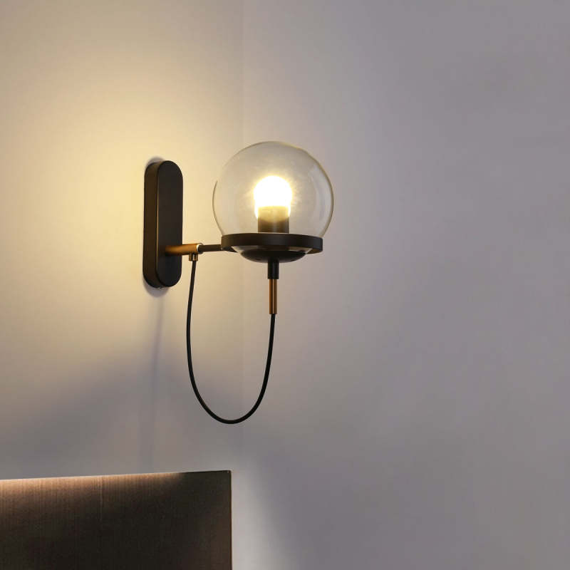 Alessio Rustic Retro Glass Globe seinävalaisin, musta/pronssi
