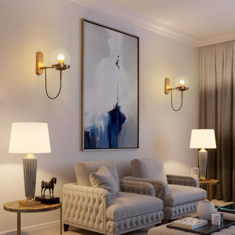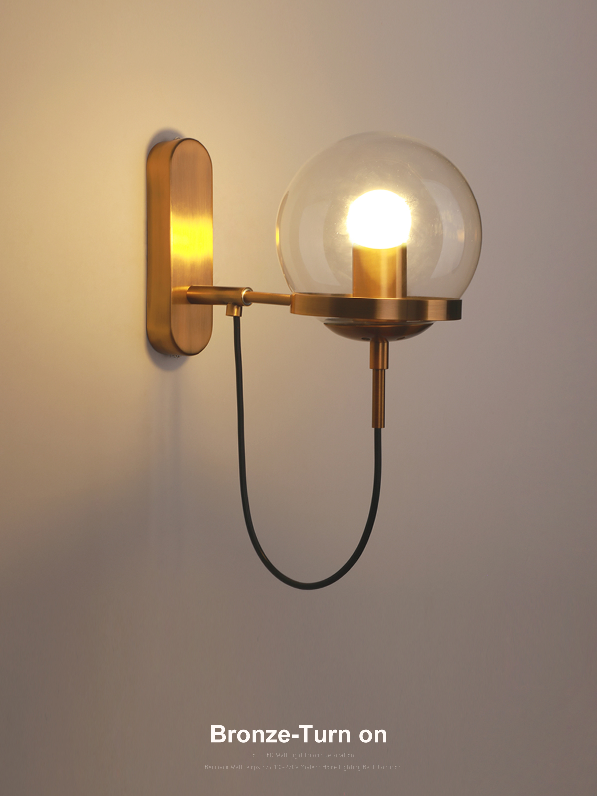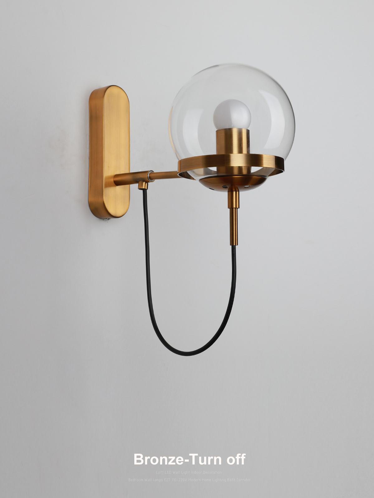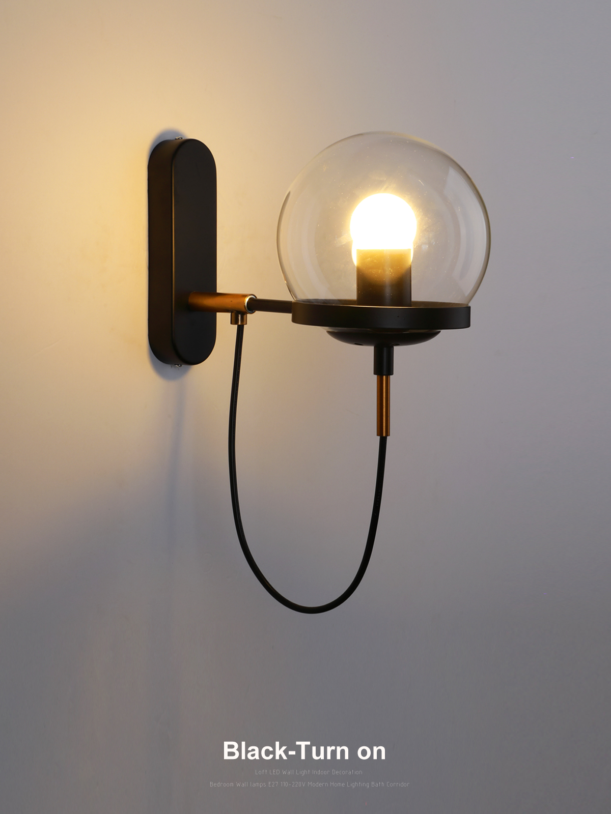 Alessio Rustic Retro Glass Globe seinävalaisin, musta/pronssi