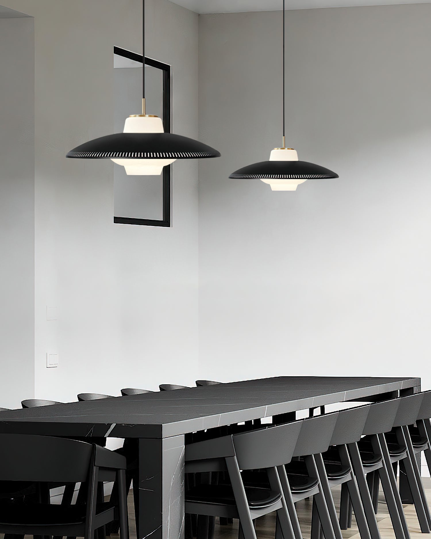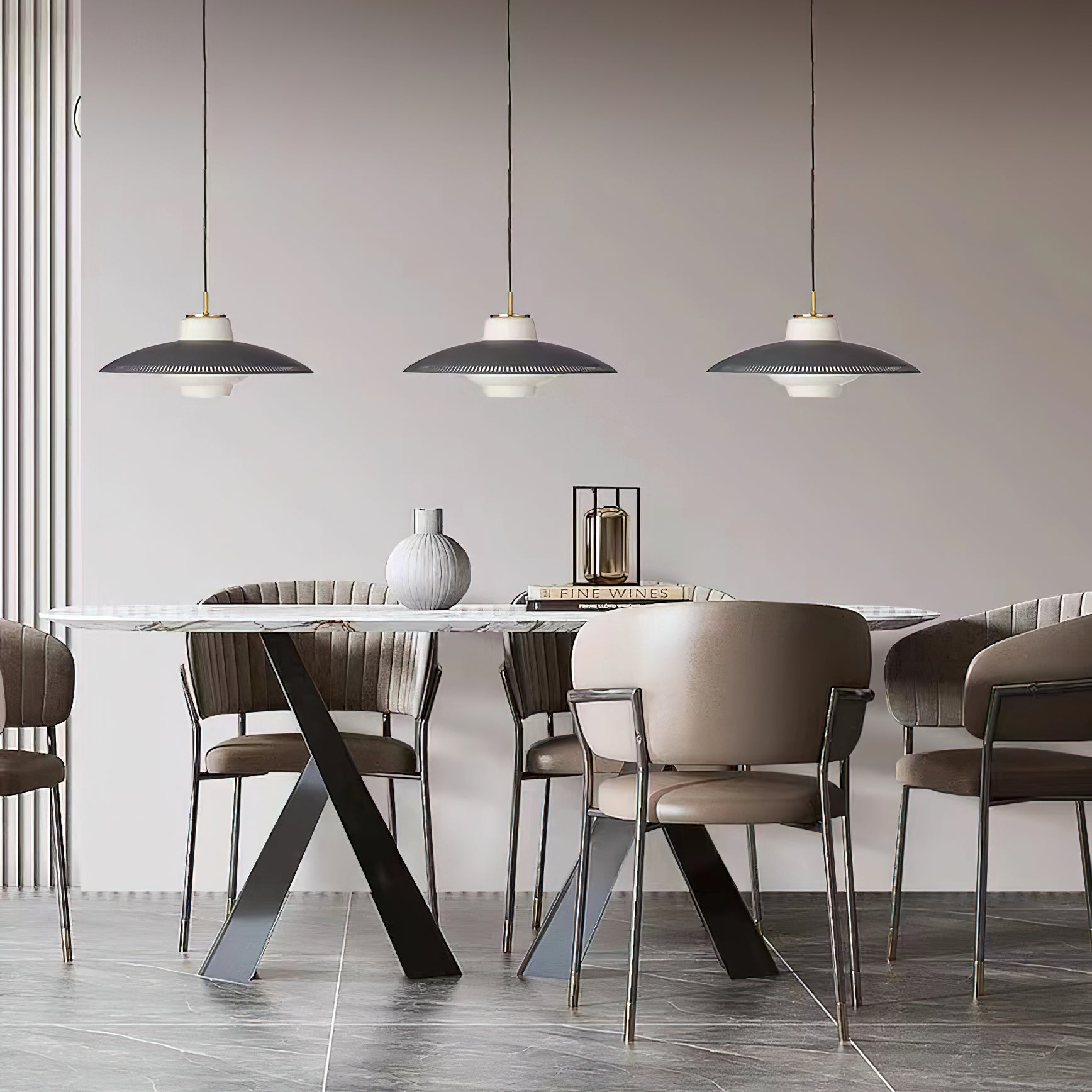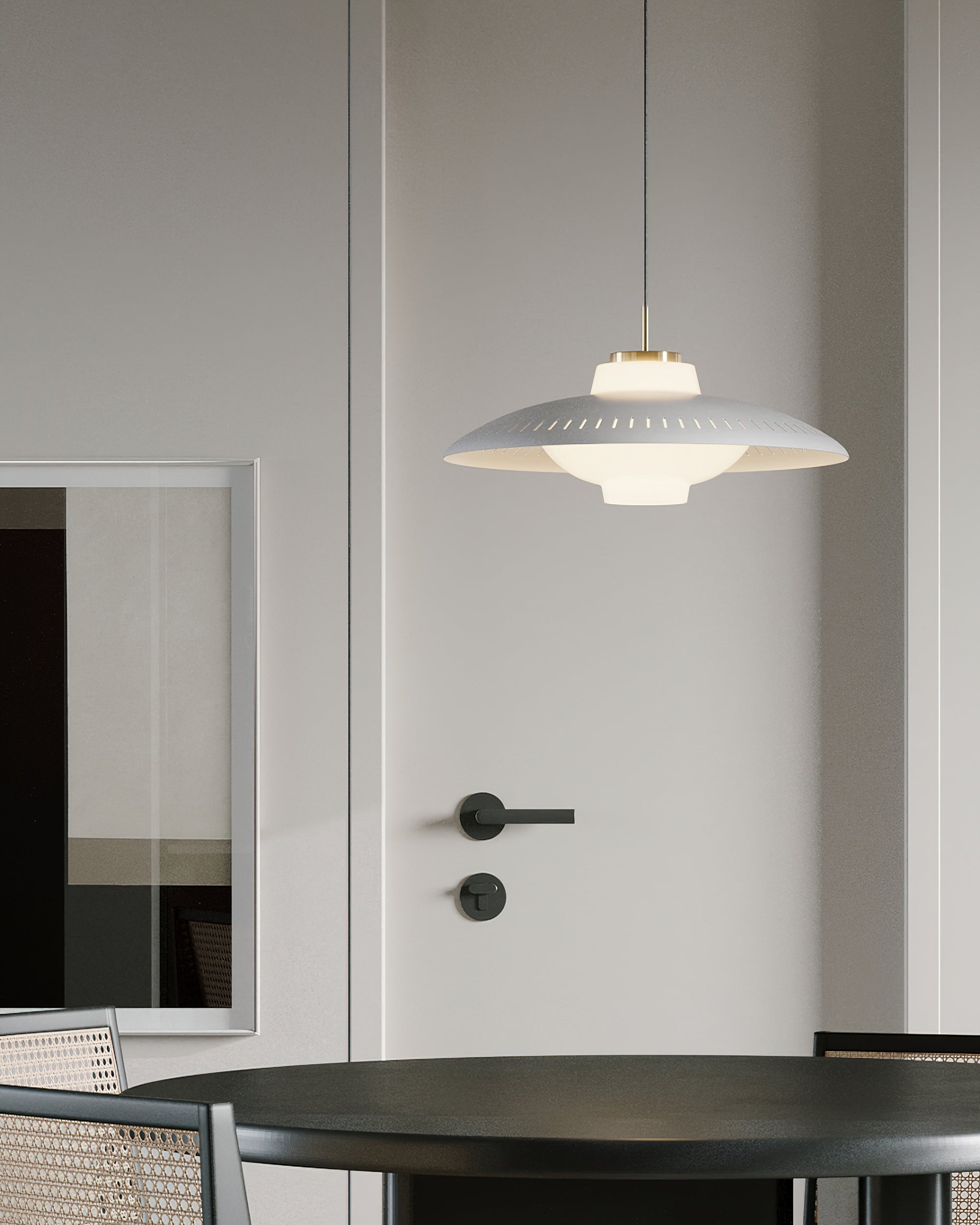 Tarjoaen jotain erityistä valon suhteen kansainvälisesti tunnetut valaistussuunnittelijat valitsivat lasin riipukseksi luodakseen erityisen lämpimän hehkun. Yhdessä leveän rautavarjostimen urien kanssa se luo jännittäviä ja elegantteja valotehosteita. Klassisen muodon, hienojen yksityiskohtien ja laadukkaan käsityön ansiosta tästä riipuksesta tulee kaunis sisustus ruokapöydän ylä- tai yläpuolelle, käytävälle tai nurkkaan luoden elämää ja tunnelmaa.