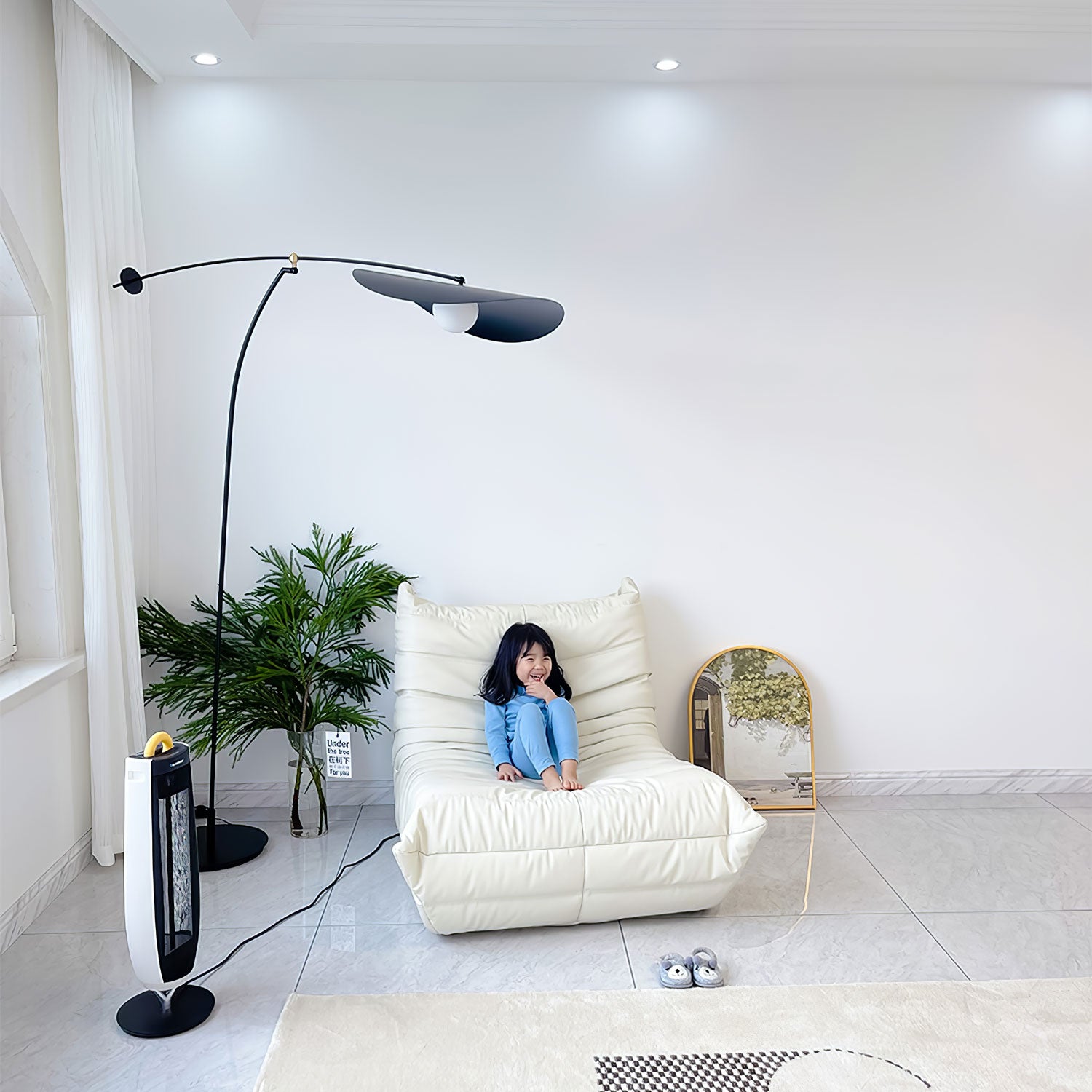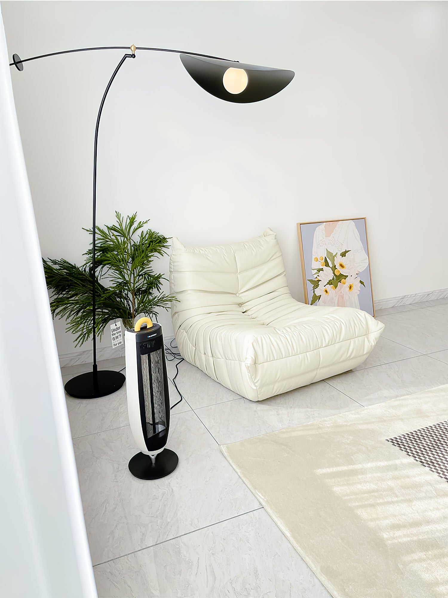 Pidä asiat yksinkertaisina tällä modernilla lattiavalaisimella, joka on loistava suosikkilukupaikkasi tai tummien kulmien kirkastamiseen. Tämä istuu kauniisti mihin tahansa minimalistiseen asuintilaan.