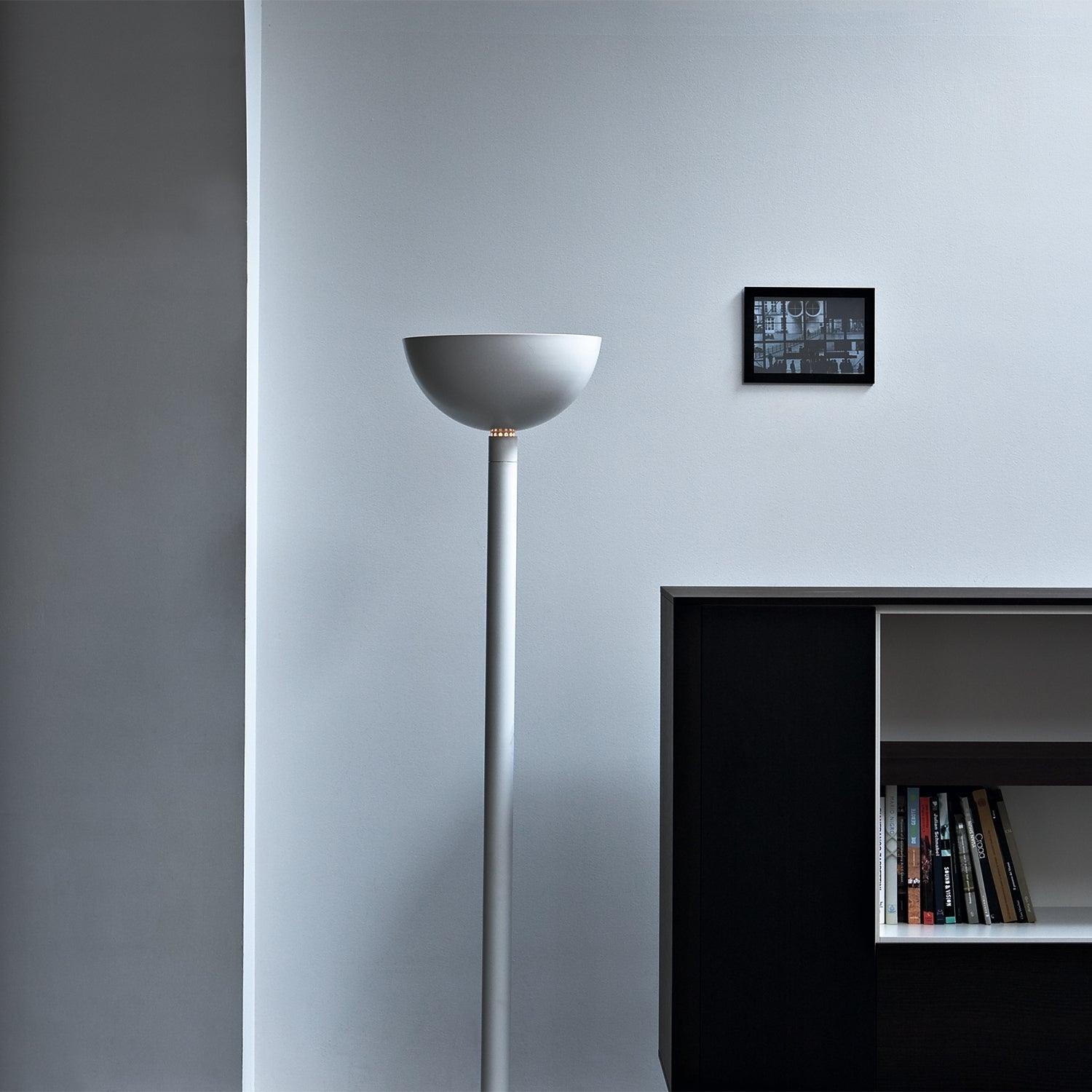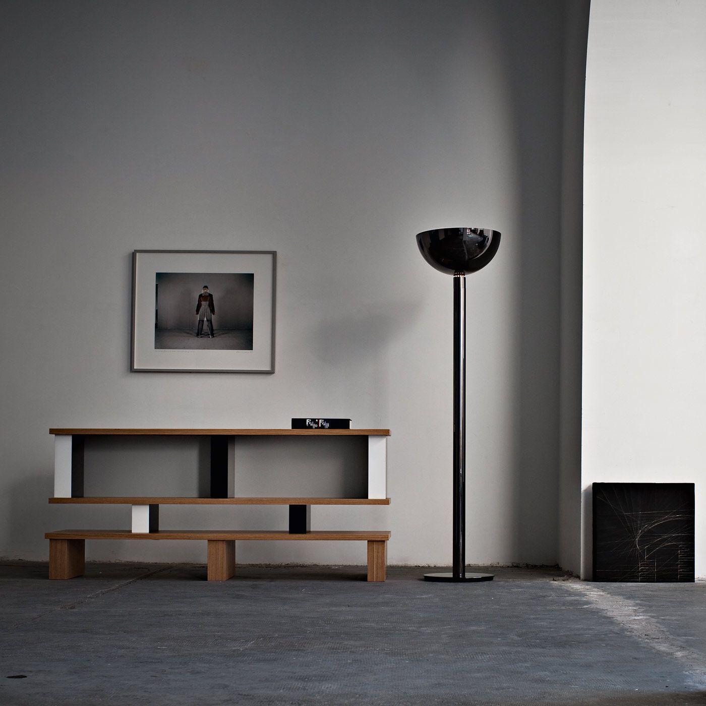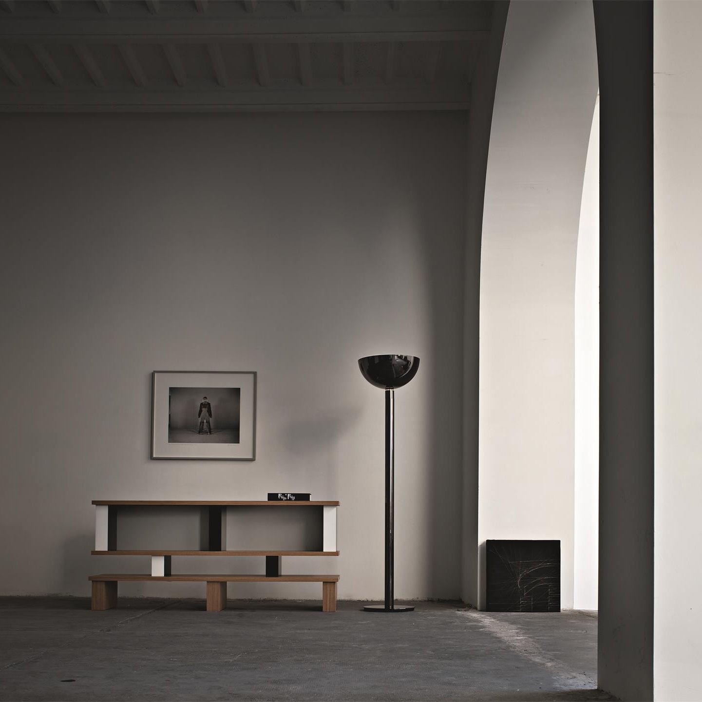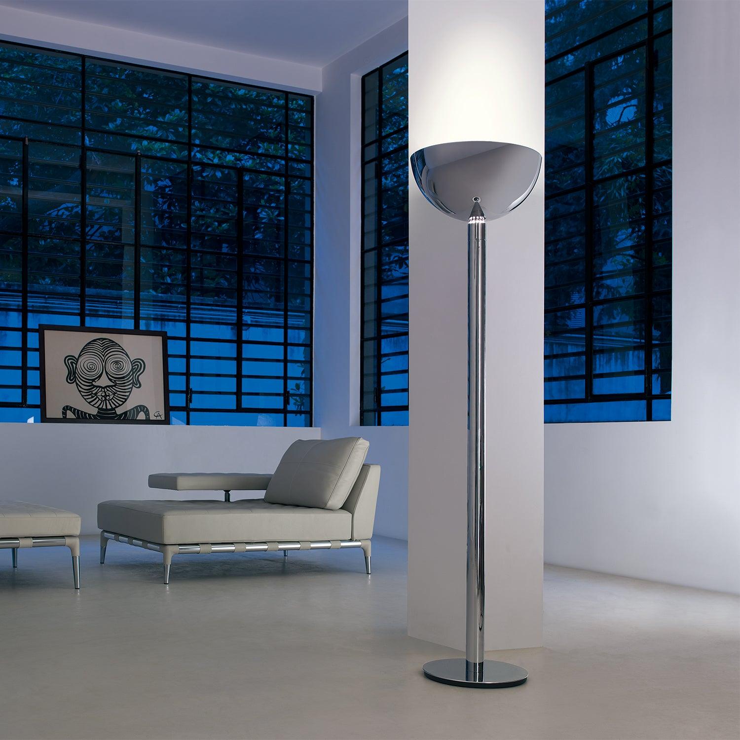 Lattiavalaisin kromatulla rakenteella. Hajotin kromattua, mustaa tai valkoista metallia. Lineaariset tai kaarevat valotangot kromatusta tai mustakromatusta teräksestä ja puoliympyrän muotoiset varjostimet opaalinvalkoisesta lasista. Ylävalon tulvakeilojen jakautuminen.