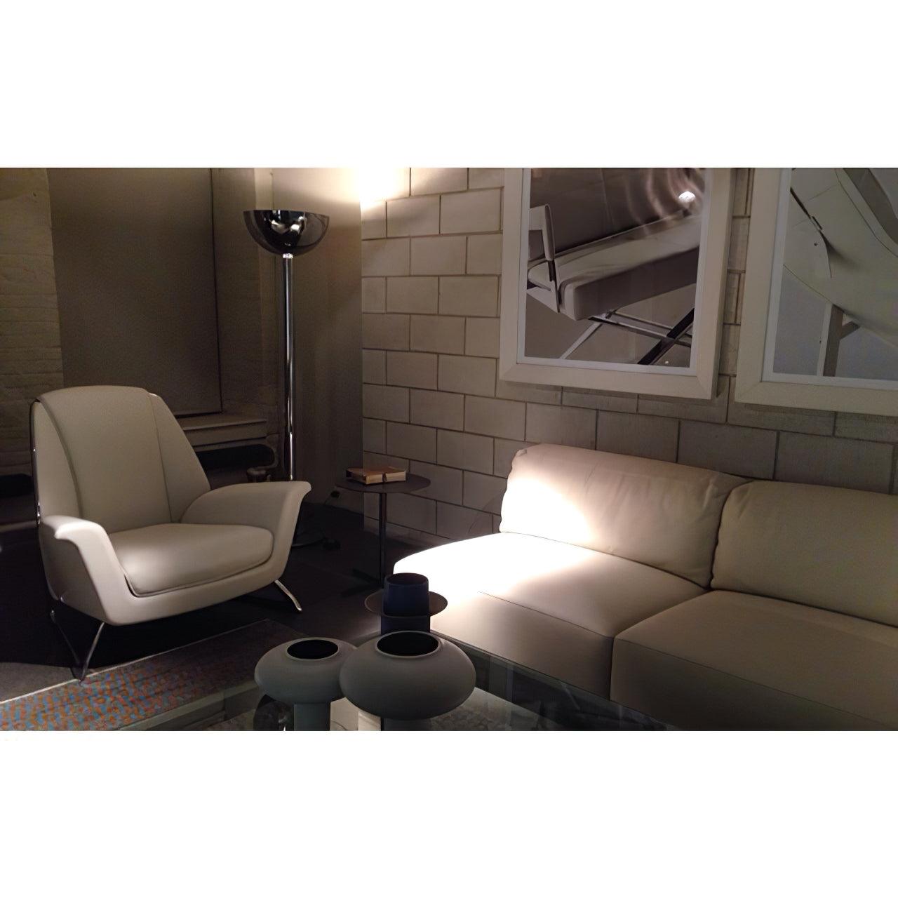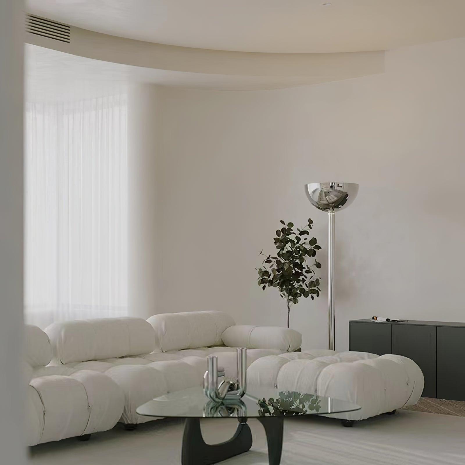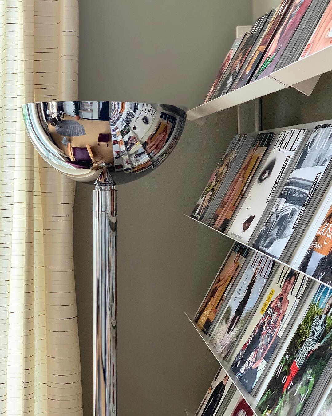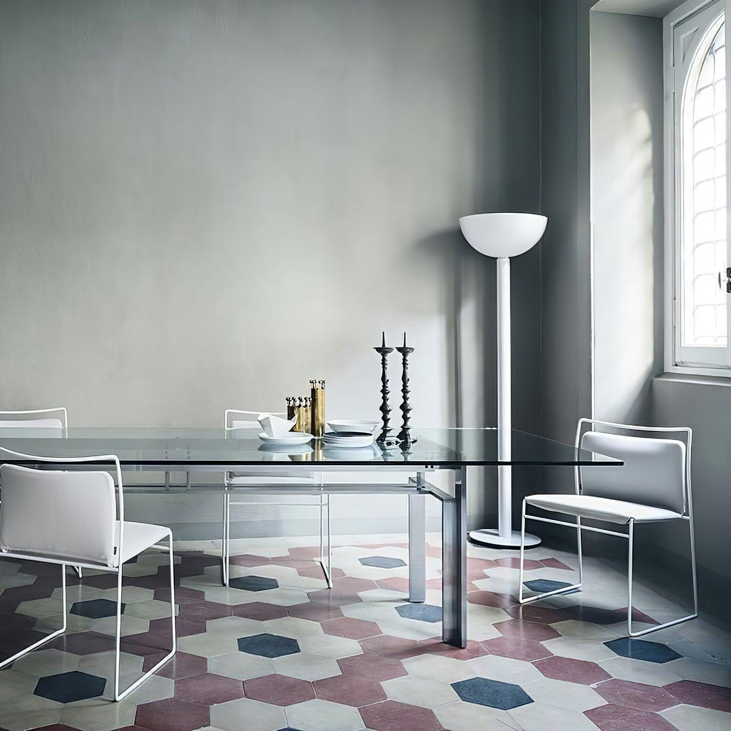 Lattiavalaisin kromatulla rakenteella. Hajotin kromattua, mustaa tai valkoista metallia. Lineaariset tai kaarevat valotangot kromatusta tai mustakromatusta teräksestä ja puoliympyrän muotoiset varjostimet opaalinvalkoisesta lasista. Ylävalon tulvakeilojen jakautuminen.