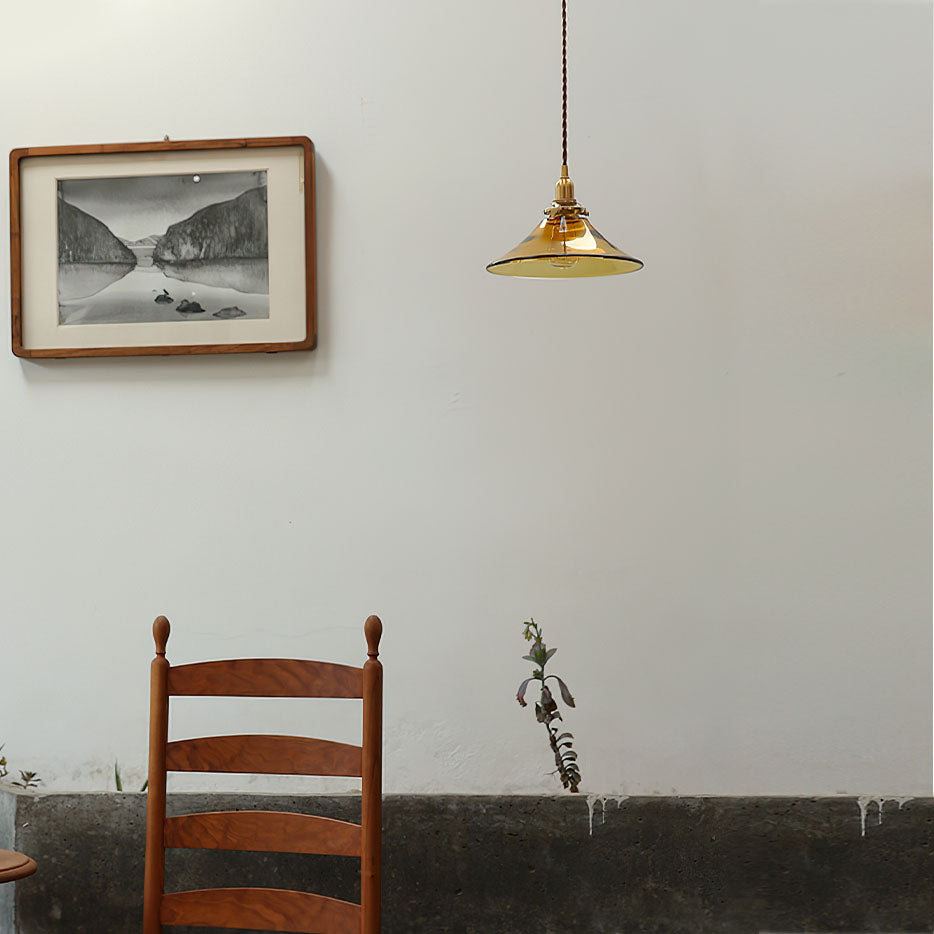 Tämä Amber Glass -riippuvalaisin on tyylikäs ja moderni. Siinä on yksinkertainen lasinen lampunvarjostin, joka on täydellinen lisäämään valoa olohuoneeseen, ruokailuhuoneeseen tai makuuhuoneeseen. Tämä riippuvalaisin on valmistettu messingistä ja lasi on lämpimän ruskea.