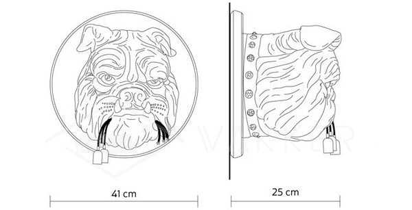 Amsterdamin seinävalaisin on osa teossarjaa, joka tutkii luonnon suhdetta ihmiseen. tämä valaisin esittelee ilmeikäs bulldogin rintakuvaa, joka nousee seinästä pitääkseen repeytyneen hehkulampun suussaan. Sen hartsikoostumus lisää sen rakenteellisia yksityiskohtia, kun taas sileä mattapinta antaa klassisen elementin. Hehkulamput säteilevät lämmintä hehkua, joka korostaa bulldogin vihaisen ilmeen hienoja yksityiskohtia.
