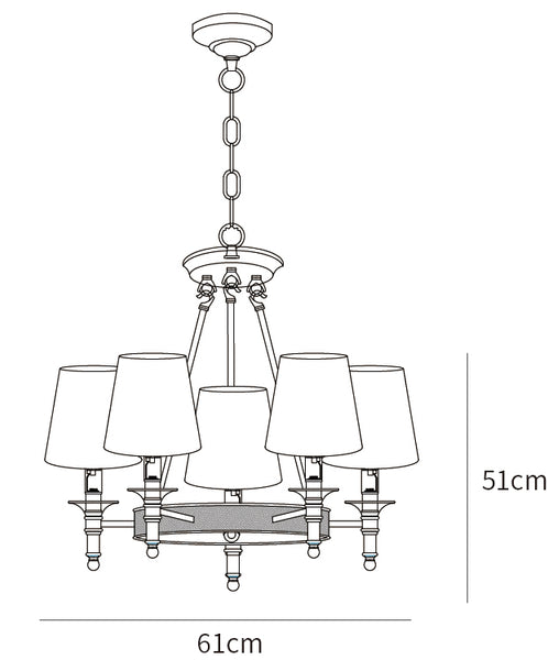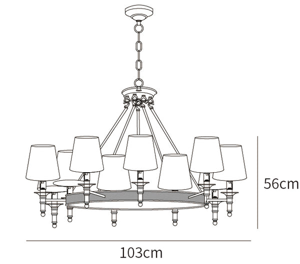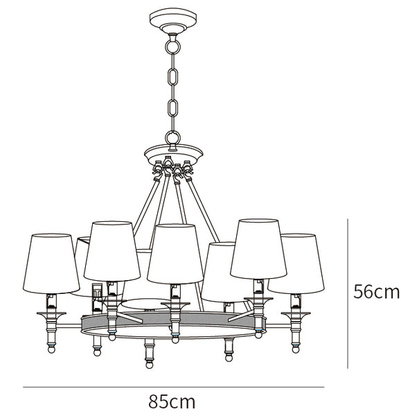 Kattokruunu on valmistettu messingistä, jotta se tuo modernimman tunnelman teollisen inspiraation saaneeseen muotoiluun. Sen messinkiriipus on varustettu 3/5/6/8/10 lampunpitimellä, joista jokainen on suunniteltu luonnollisella pellavavarjostimella. Se tarjoaa lämpimän, hajavaloa, ja sen ketjumainen jousto voi sopia täydellisesti tilaan.