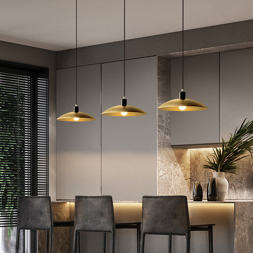 Tämä yksi vaalea metallivarjoinen miniriipus valaisee kotisi uudella retro-industrial tyylillä, miniriipus sisältää antiikkisen messingin sävyisen viimeistelyn leveän kellon muotoisen metallivarjostimen päällä. tyylikäs ulkonäkö.