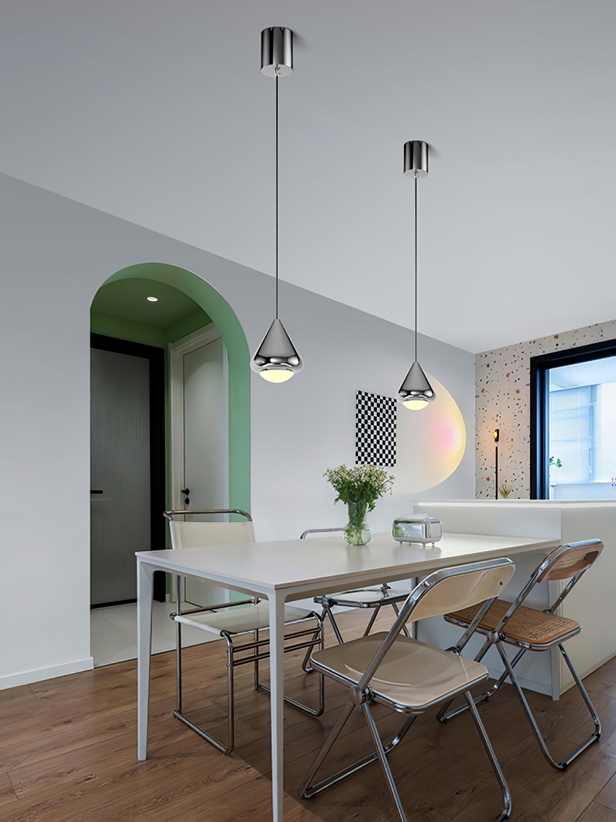 Lampunvarjostimien pehmeä, dynaaminen muoto antaa LED-valaisimelle elegantin luonteen. Jokainen on varustettu erityisellä optisella linssillä, joka heijastaa valoa loistavasti ja luonnollisesti värjäytyen. Koska sen pinta heijastaa ympäristöä ja näyttää sulautuvan yhteen valohajottimen kanssa.