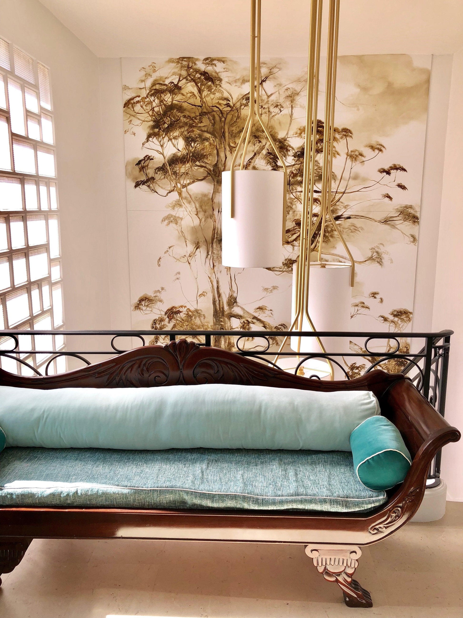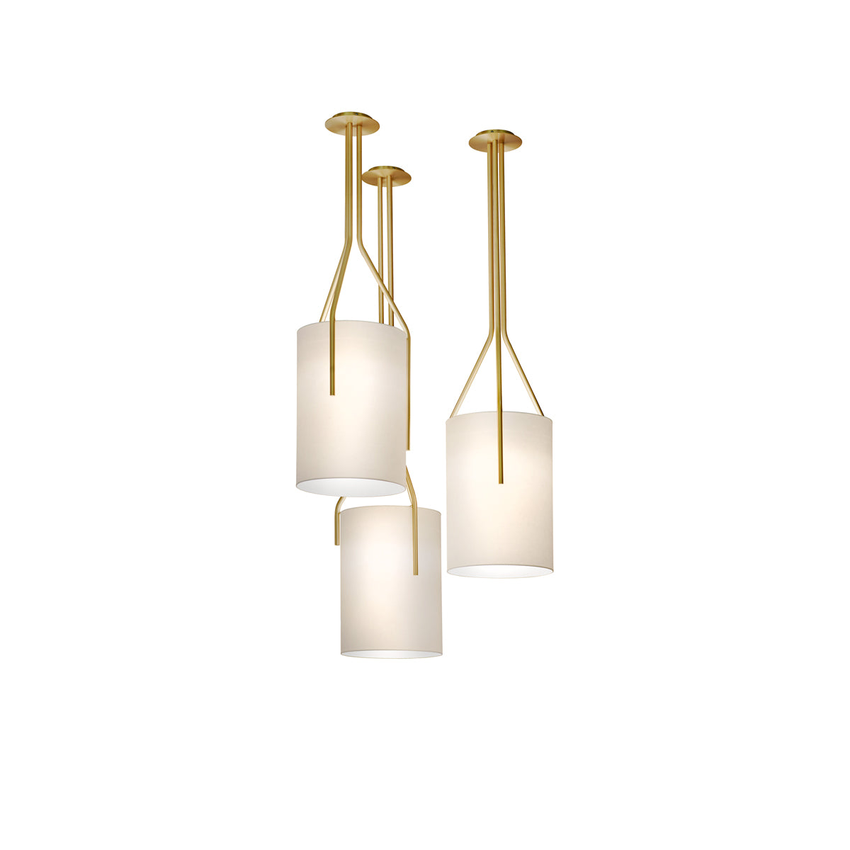 Tyylikkäät ja minimalistiset Arborescence-kruunut. Tyylikkäässä ja minimalistisessa Arborescencessa on valkoinen kangashuppu, satiini tai kiillotettu messinkiviimeistely. Valittavana on kolme pituutta.