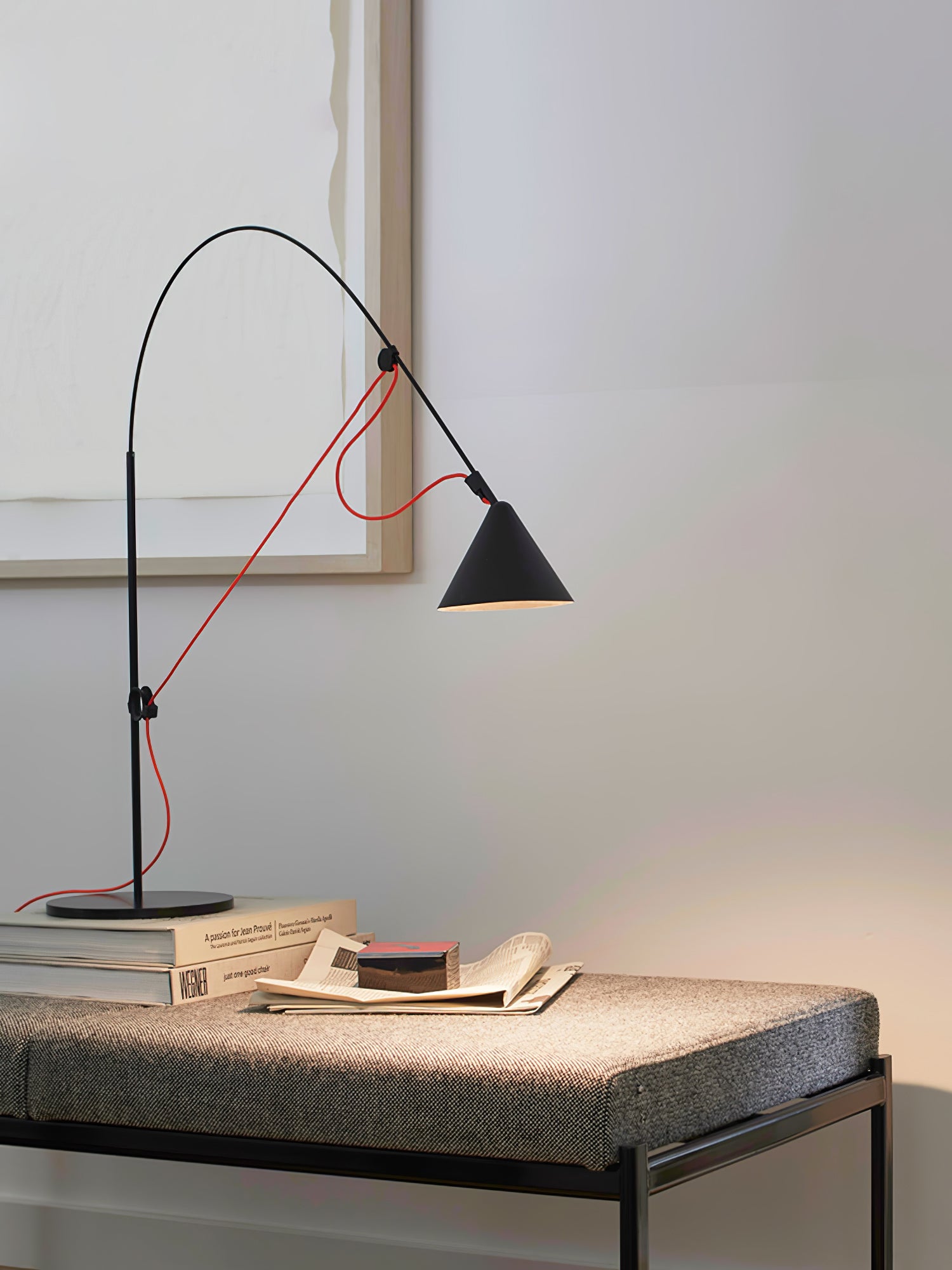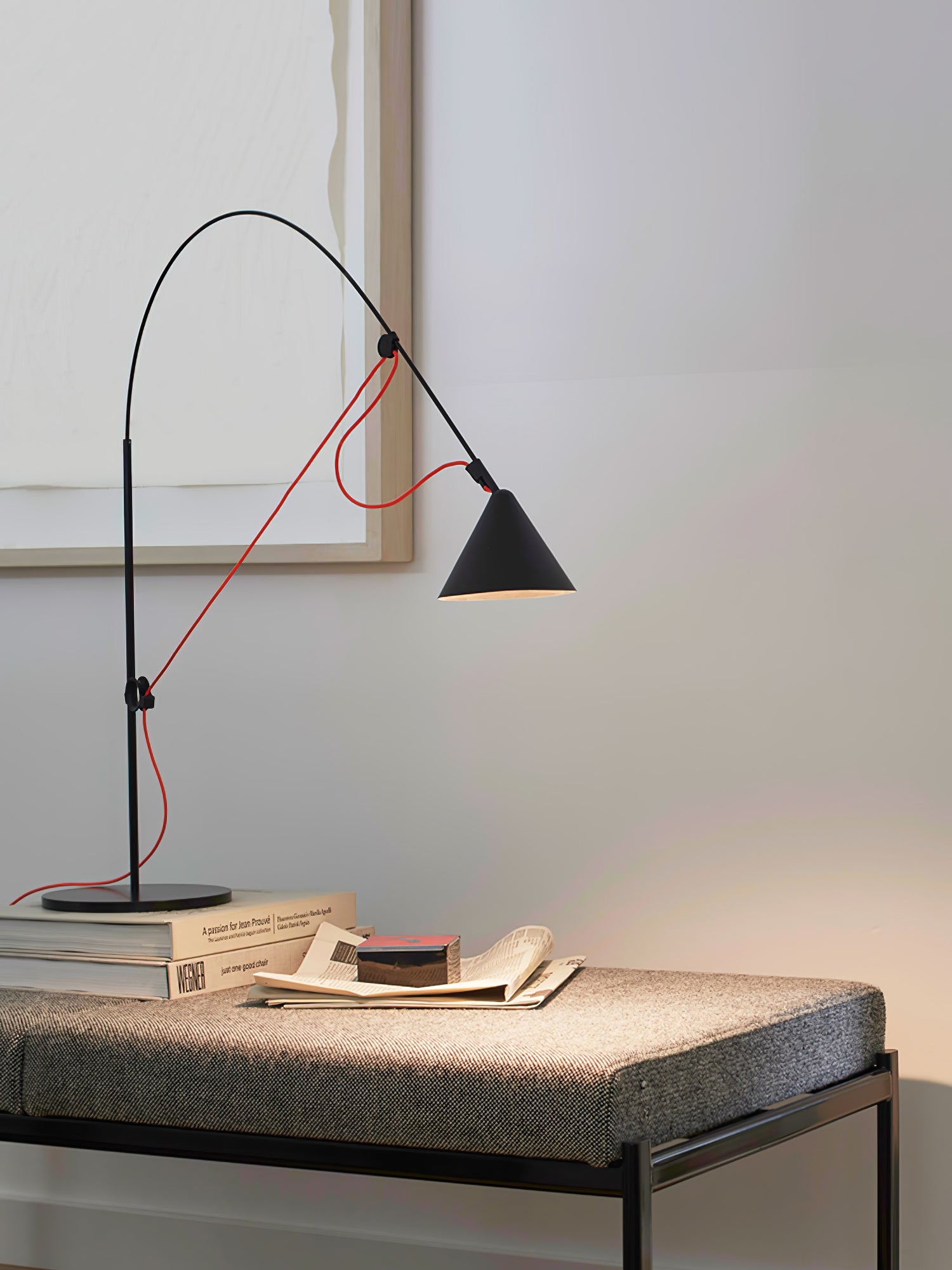 Jos Arc Ayno -pöytävalaisin on hienostunut ja tyylikäs lisä kotiisi, se lisää syvyyttä suunnitteluusi. Lamppu on säädettävissä kapealla sähköjohdolla, jossa on kangaspinnoite ja joka on sidottu kahteen portaattomasti säädettävään renkaaseen. Varmistaa, että korkeutta voidaan muuttaa yksinkertaisesti vetämällä tai löysäämällä kaapelia ja palaamalla alkuperäiseen pystyasentoonsa, kun kaapelin jännitys on täysin vapautettu. Kartion muotoisella varjostimella, joka voi kallistua kaikkiin suuntiin ohjaamaan valoa sinne, missä sitä tarvitaan, tämä eksklusiivinen ja ylellinen kappale tekee asuintilostasi tyylikkäämmän.